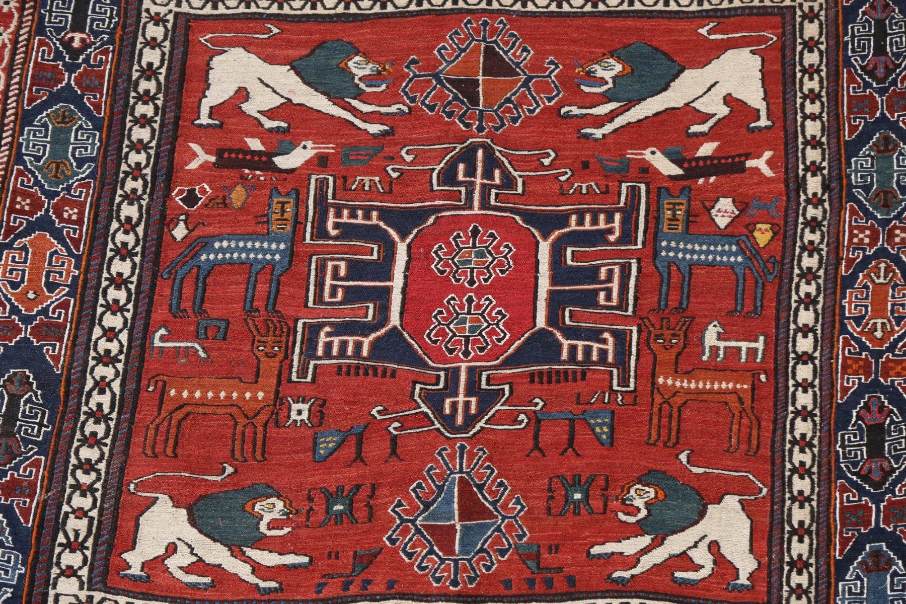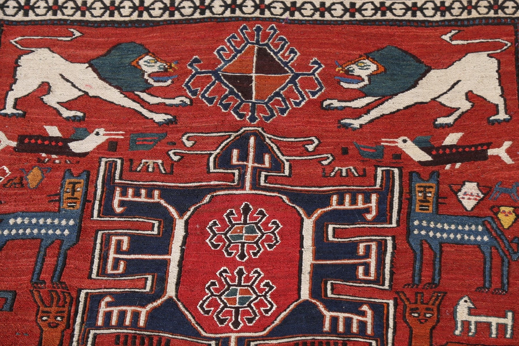 A Beautiful Genuine Persia ( Persia ) Kilim (Qashqai) rug is Hand Woven by skillful weavers in Persia ( Persia ) with 100% Wool Material. This rug is in New, First Quality condition. dimensions are 4' 3'' X 3' 4'' in foot and 130 X 102 in centimeter. the primary color is Red.