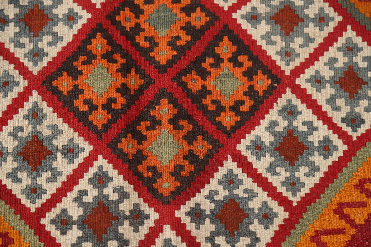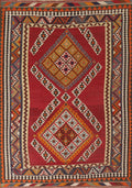 A Beautiful Genuine Persia ( Persia ) Kilim (Qashqai) rug is Hand Woven by skillful weavers in Persia ( Persia ) with 100% Wool Material. This rug is in Very Good (Abrash) condition. dimensions are 7' 7'' X 5' 3'' in foot and 231 X 160 in centimeter. the primary color is Red.
