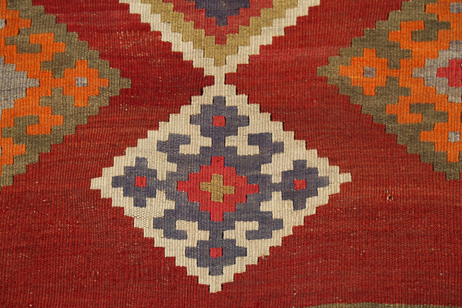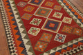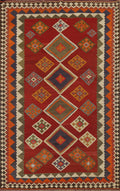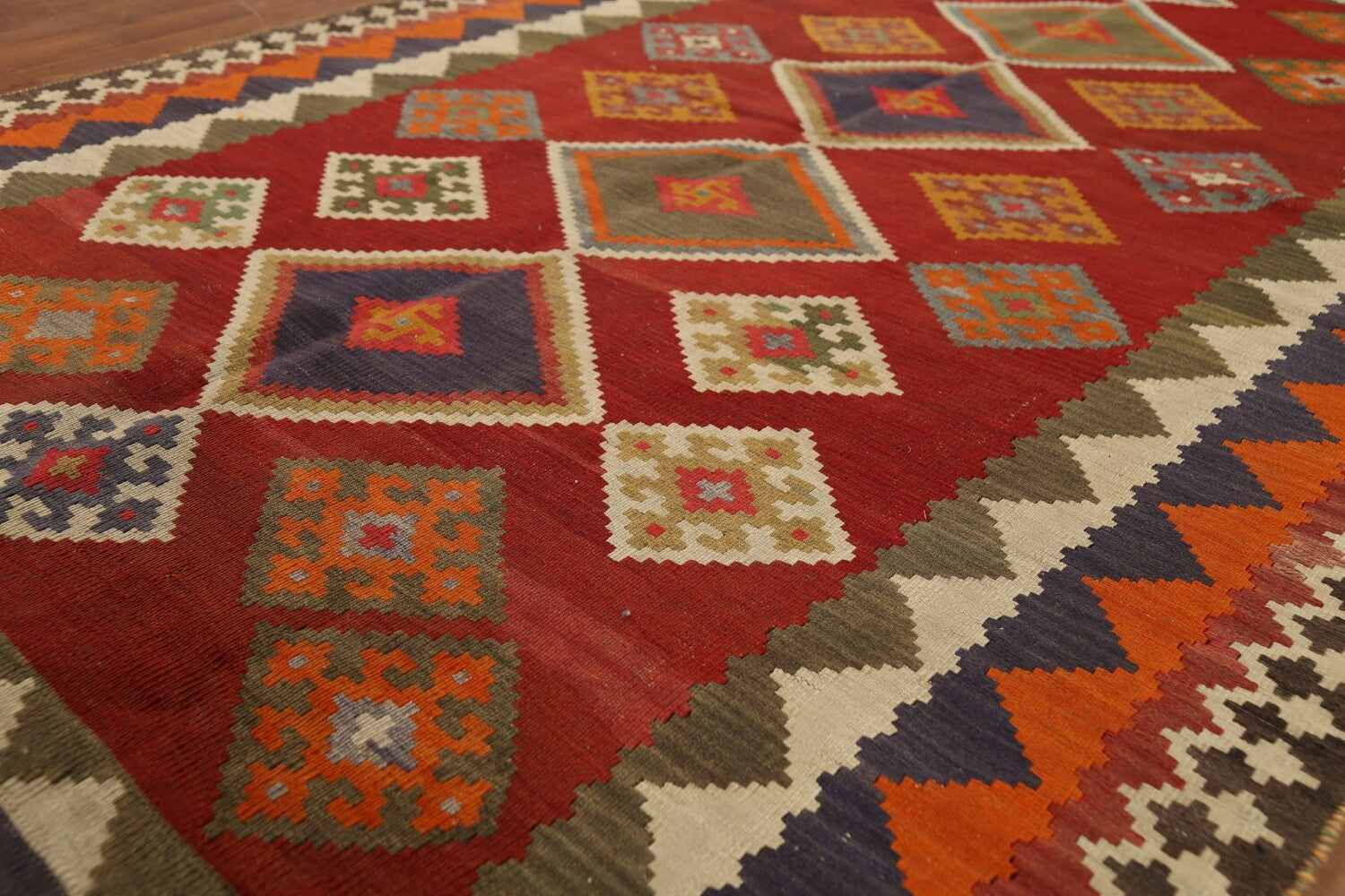 A Beautiful Genuine Persia ( Persia ) Kilim (Qashqai) rug is Hand Woven by skillful weavers in Persia ( Persia ) with 100% Wool Material. This rug is in Very Good (Abrash) condition. dimensions are 7' 10'' X 5' 2'' in foot and 239 X 157 in centimeter. the primary color is Red.