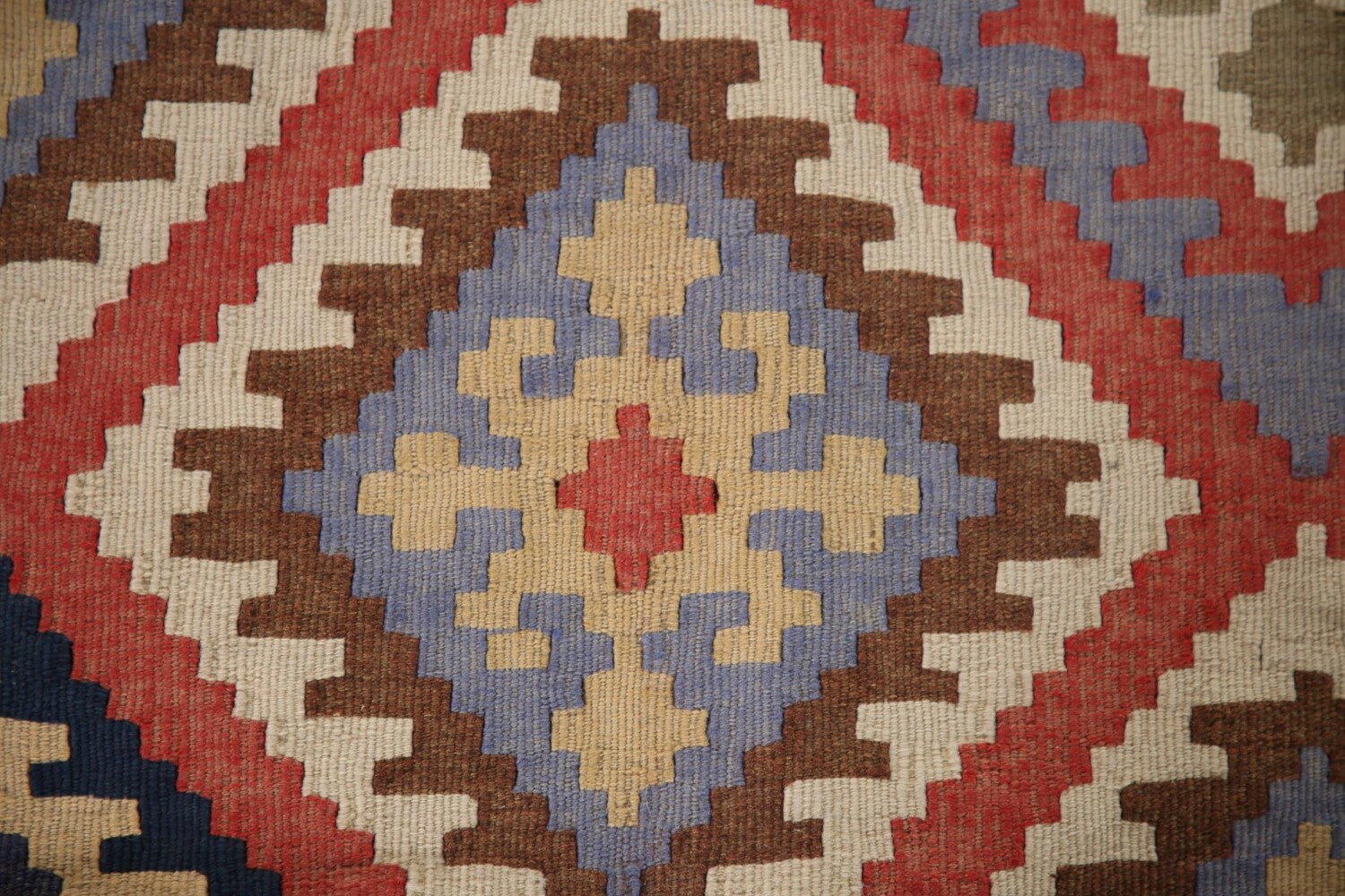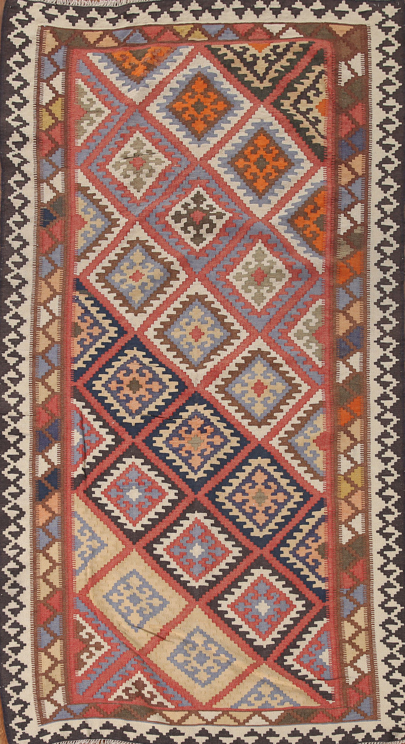 A Beautiful Genuine Persia ( Persia ) Kilim (Qashqai) rug is Hand Woven by skillful weavers in Persia ( Persia ) with 100% Wool Material. This rug is in Very Good condition. dimensions are 9' 4'' X 4' 6'' in foot and 284 X 137 in centimeter. the primary color is Multi-Colored.