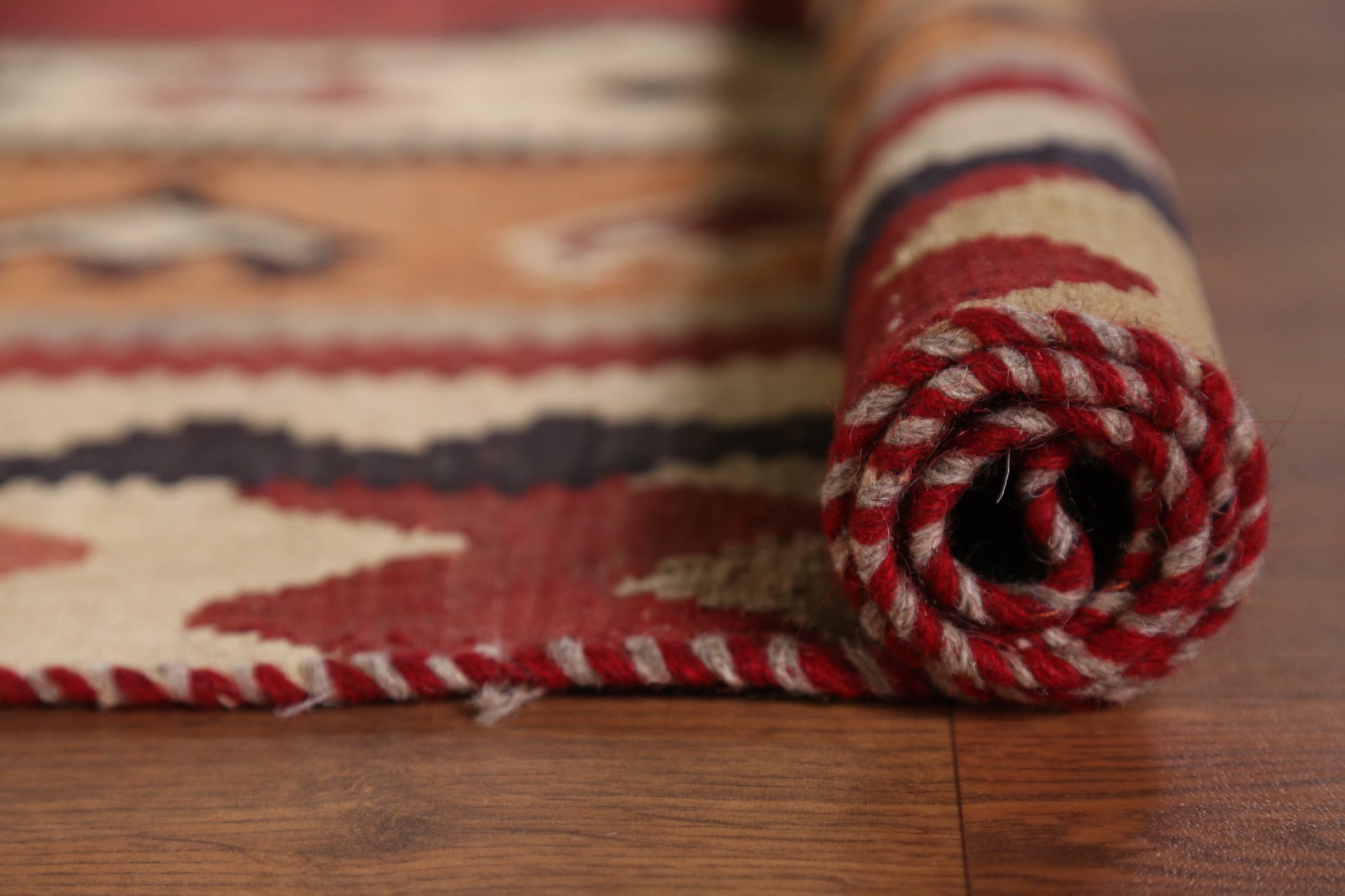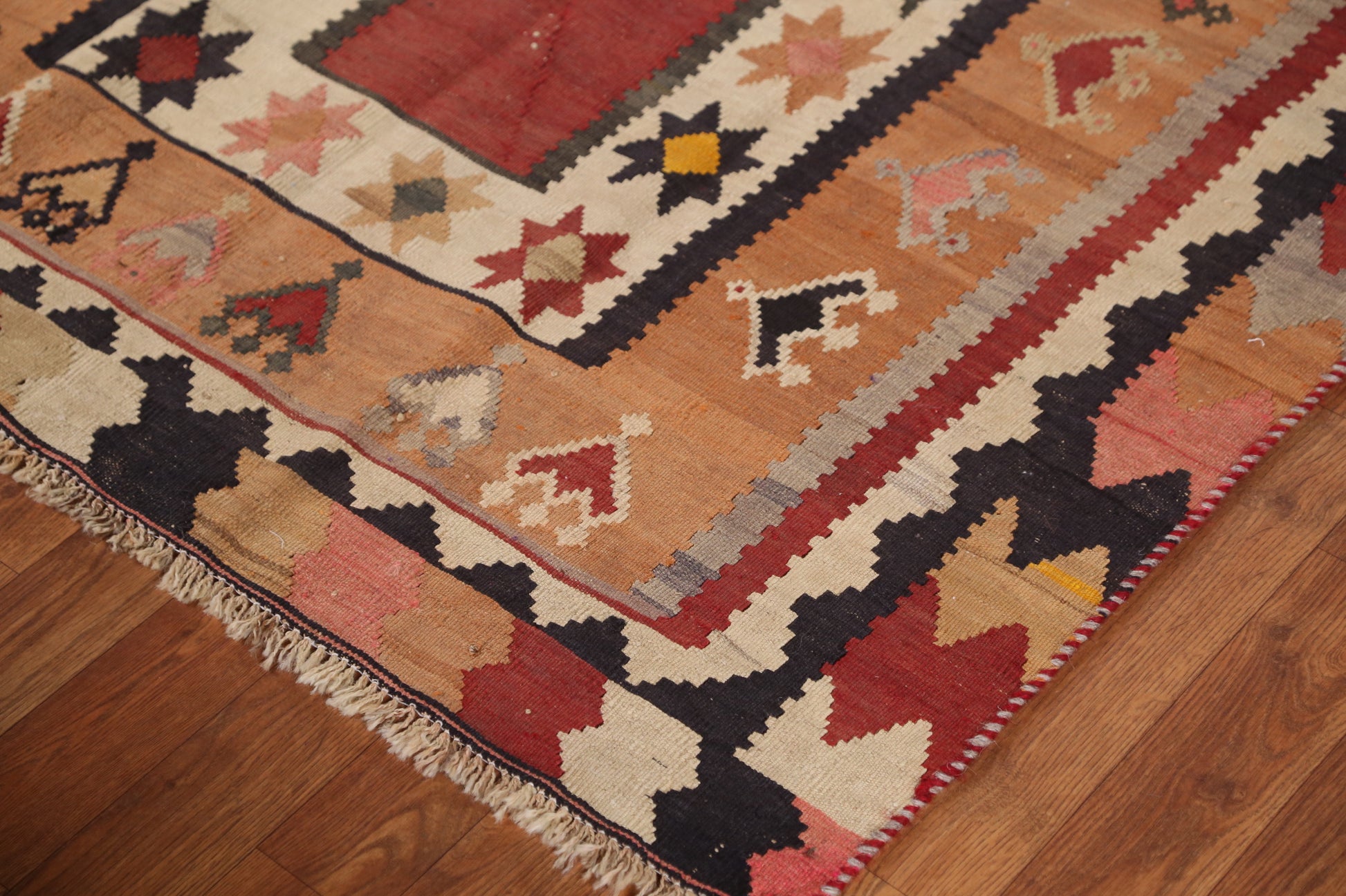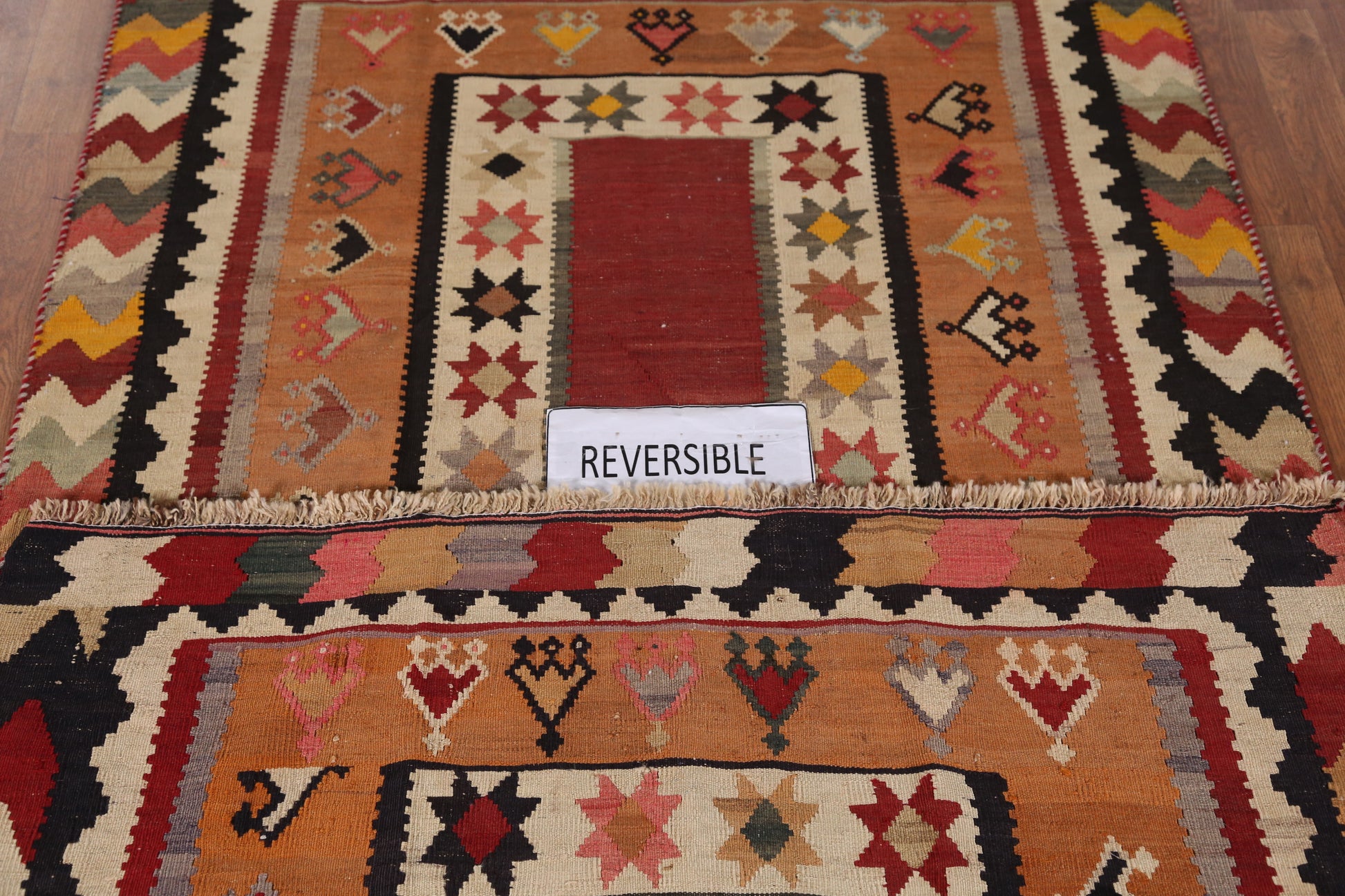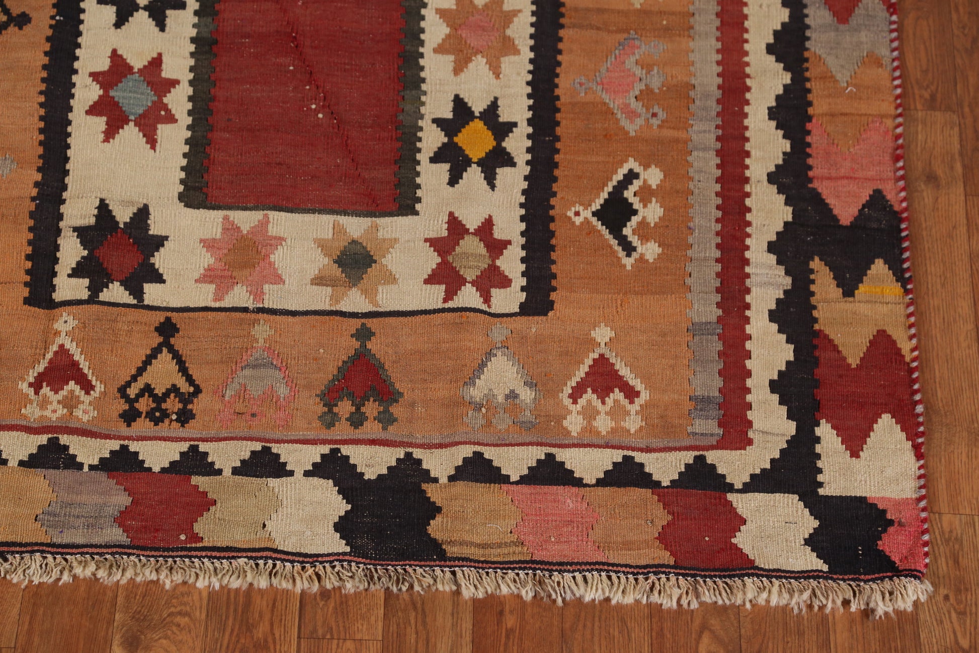 A Beautiful Genuine Persia ( Persia ) Kilim (Qashqai) rug is Hand Woven by skillful weavers in Persia ( Persia ) with 100% Wool Material. This rug is in Very Good ( Low Pile ) condition. dimensions are 6' 8'' X 4' 4'' in foot and 203 X 132 in centimeter. the primary color is Multi-Colored.