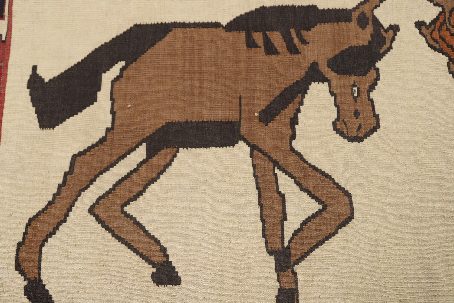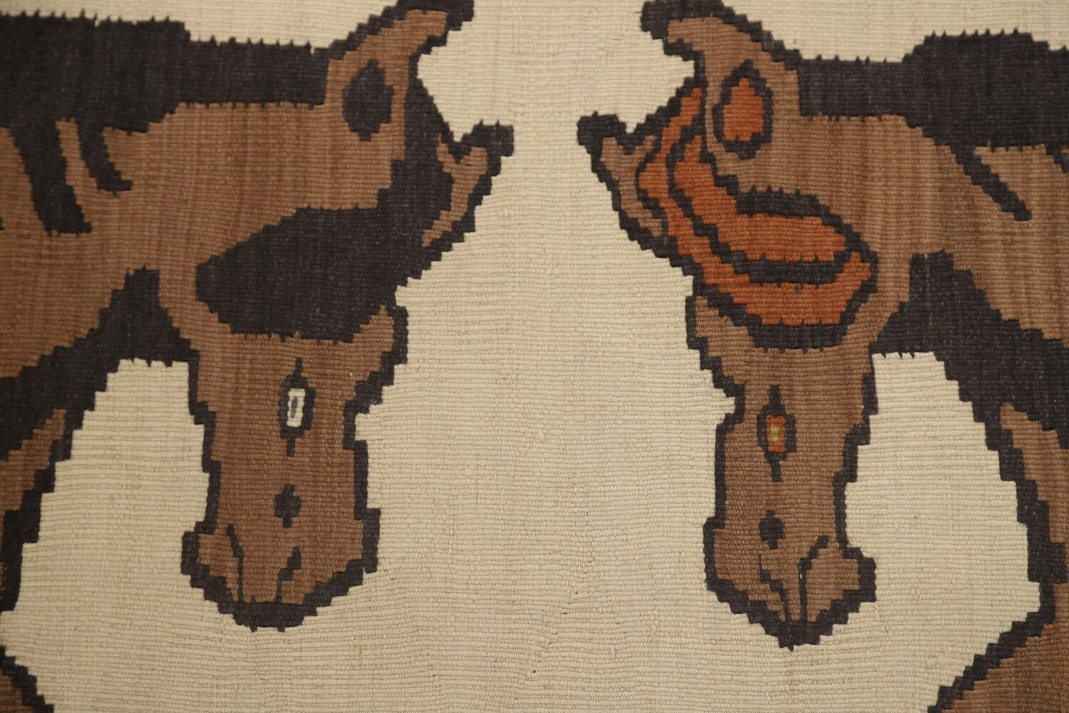 A Beautiful Genuine Persia ( Persia ) Kilim (Qashqai) rug is Hand Woven by skillful weavers in Persia ( Persia ) with 100% Wool Material. This rug is in Very Good condition. dimensions are 6' 6'' X 3' 7'' in foot and 198 X 109 in centimeter. the primary color is Beige & Ivories.