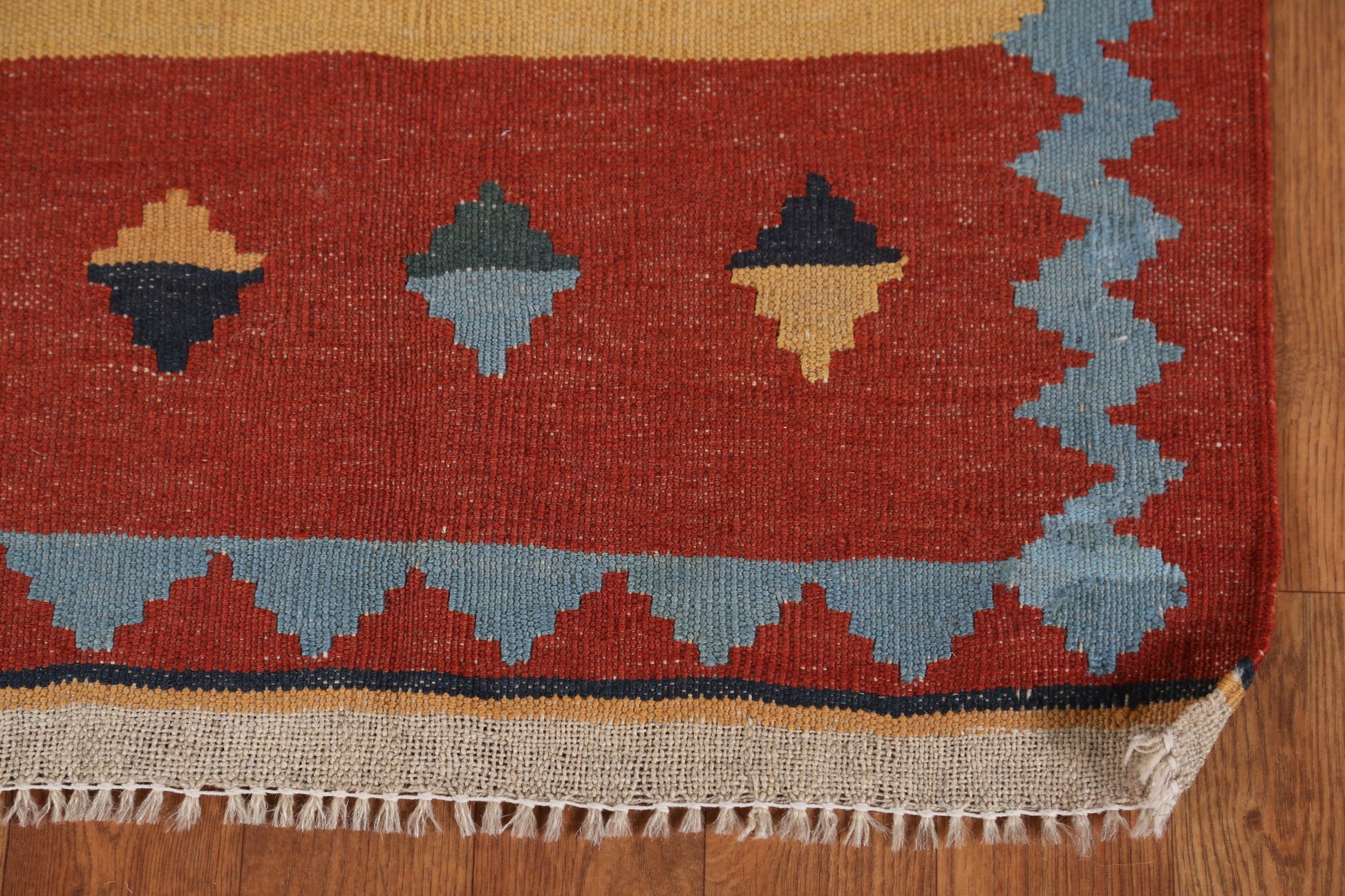 A Beautiful Genuine Persia ( Persia ) Kilim (Qashqai) rug is Hand Woven by skillful weavers in Persia ( Persia ) with 100% Wool Material. This rug is in Very Good condition. dimensions are 7' 6'' X 4' 0'' in foot and 229 X 122 in centimeter. the primary color is Multi-Colored.