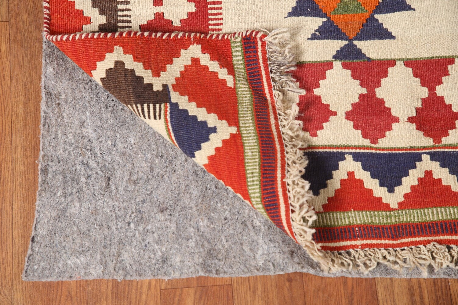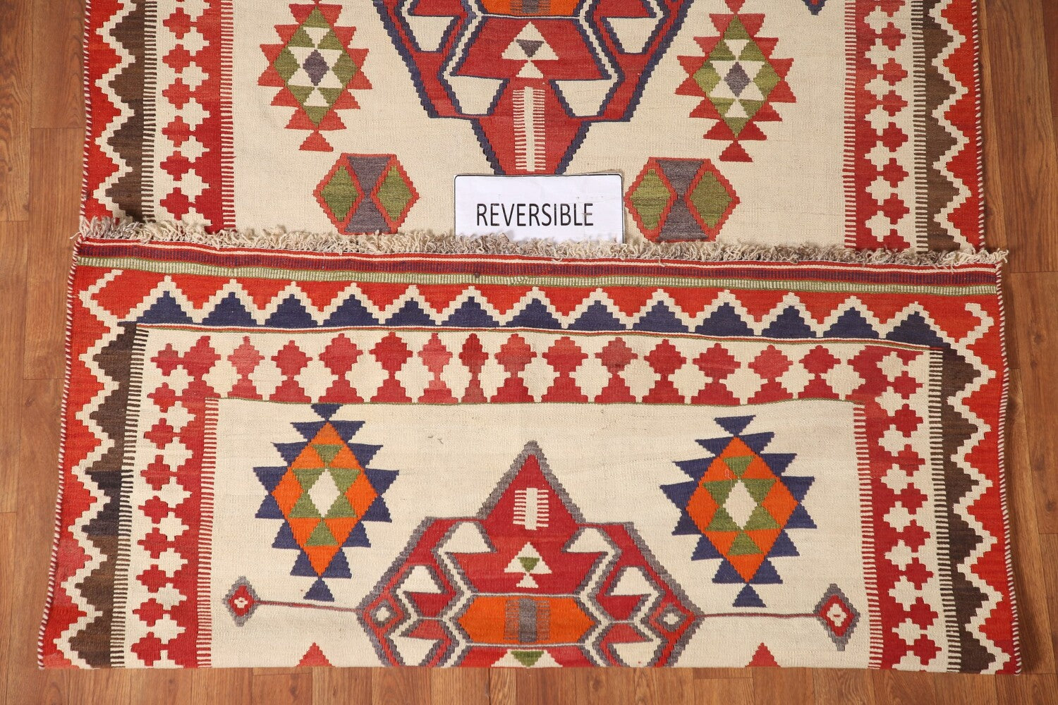 A Beautiful Genuine Persia ( Persia ) Kilim (Qashqai) rug is Hand Woven by skillful weavers in Persia ( Persia ) with 100% Wool Material. This rug is in Very Good condition. dimensions are 8' 2'' X 4' 5'' in foot and 249 X 135 in centimeter. the primary color is Beige & Ivories.