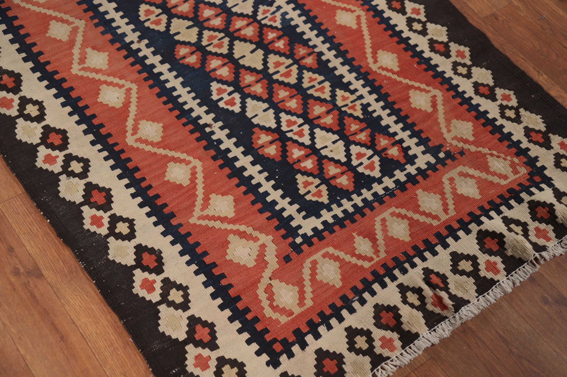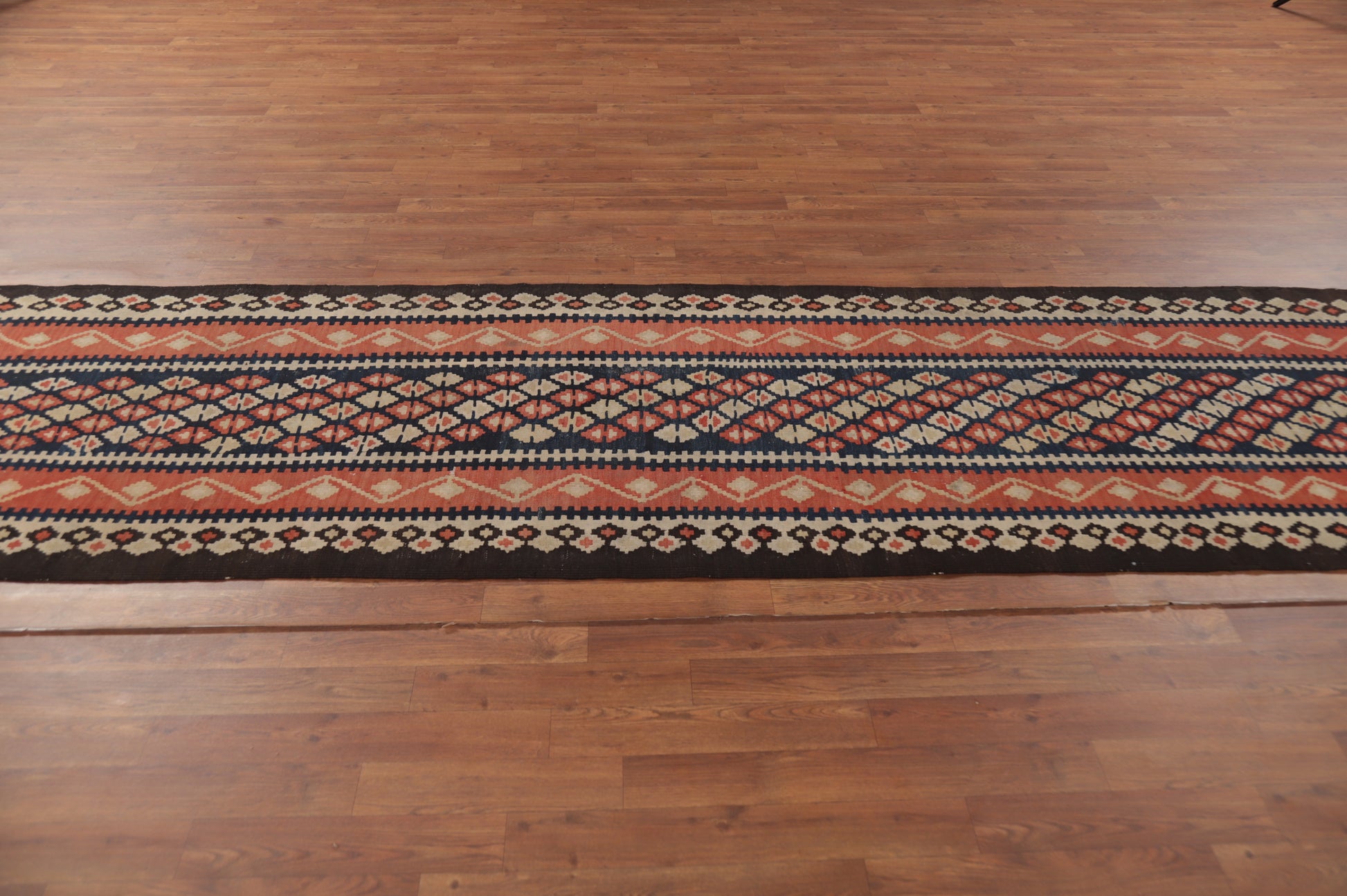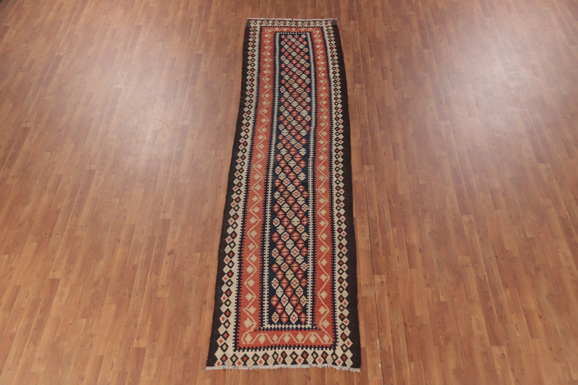 Vegetable Dye Kilim Qashqai Persian Runner Rug 3x12