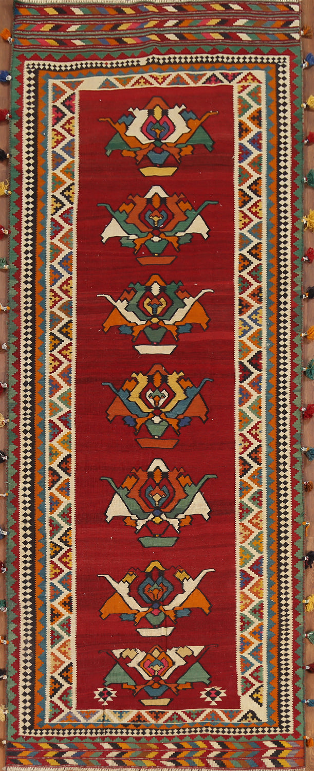 Vegetable Dye Kilim Qashqai Persian Runner Rug 4x13