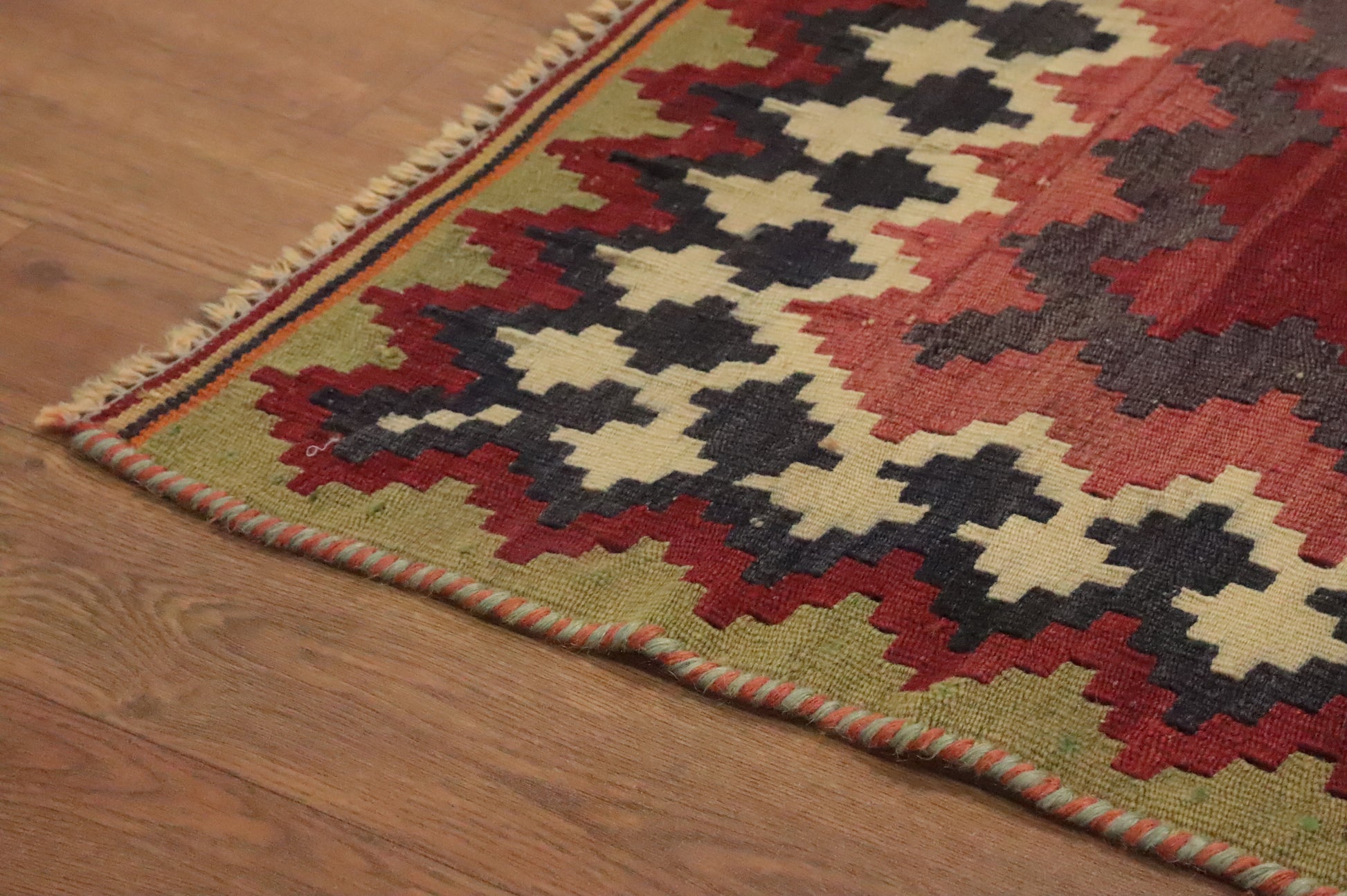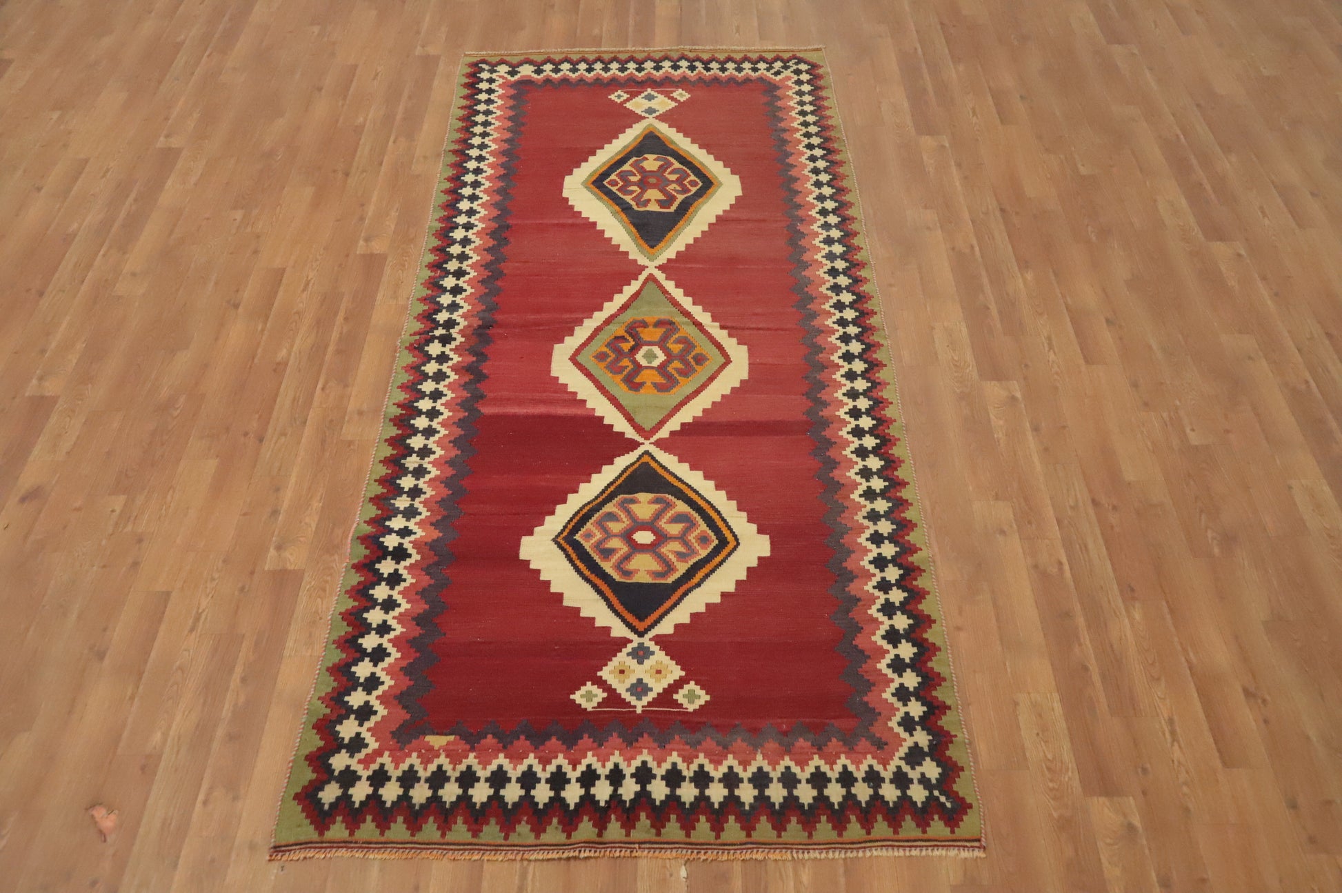 Vegetable Dye Kilim Qashqai Persian Runner Rug 4x9