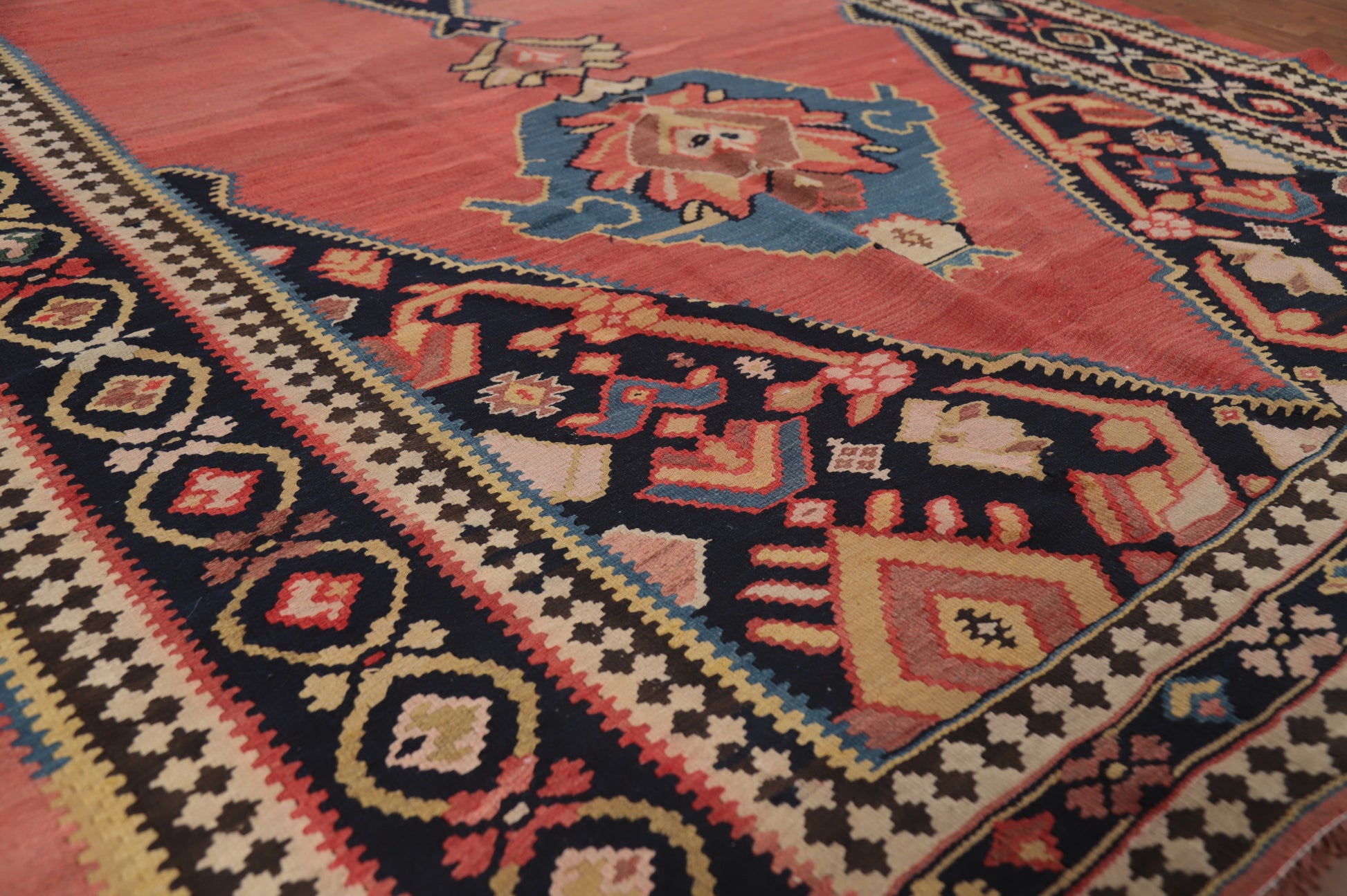 A Beautiful Genuine Persia ( Persia ) Kilim (Senneh) rug is Hand Woven by skillful weavers in Persia ( Persia ) with 100% Wool Material. This rug is in Very Good (Abrash) condition. dimensions are 13' 10'' X 5' 9'' in foot and 422 X 175 in centimeter. the primary color is Pink.