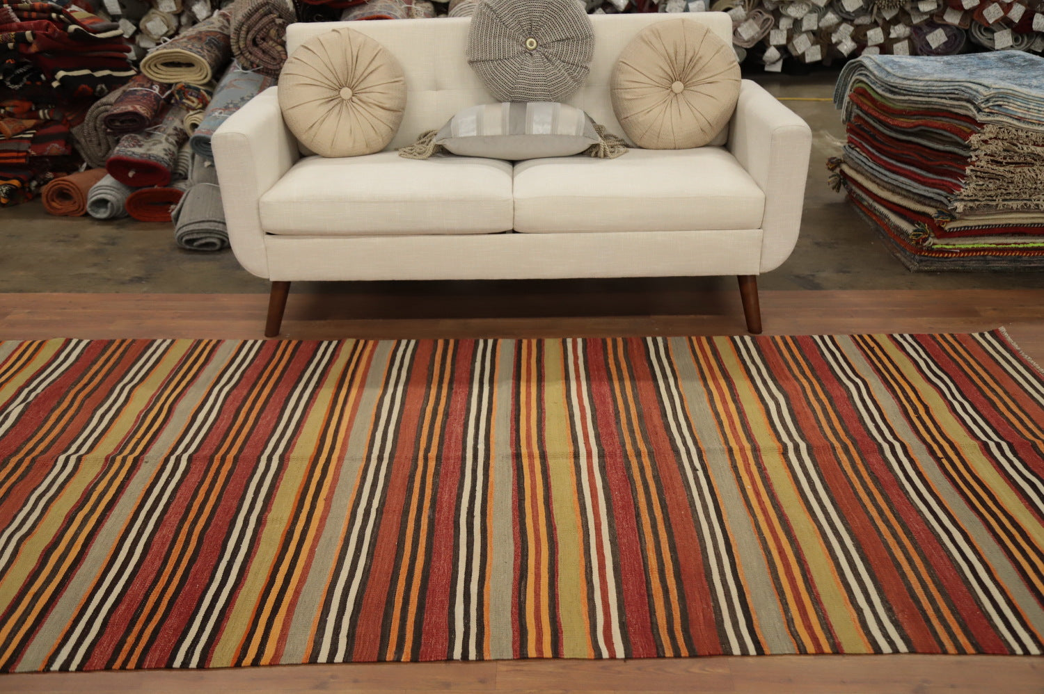 Vegetable Dye Kilim Striped Wool Area Rug 5x10