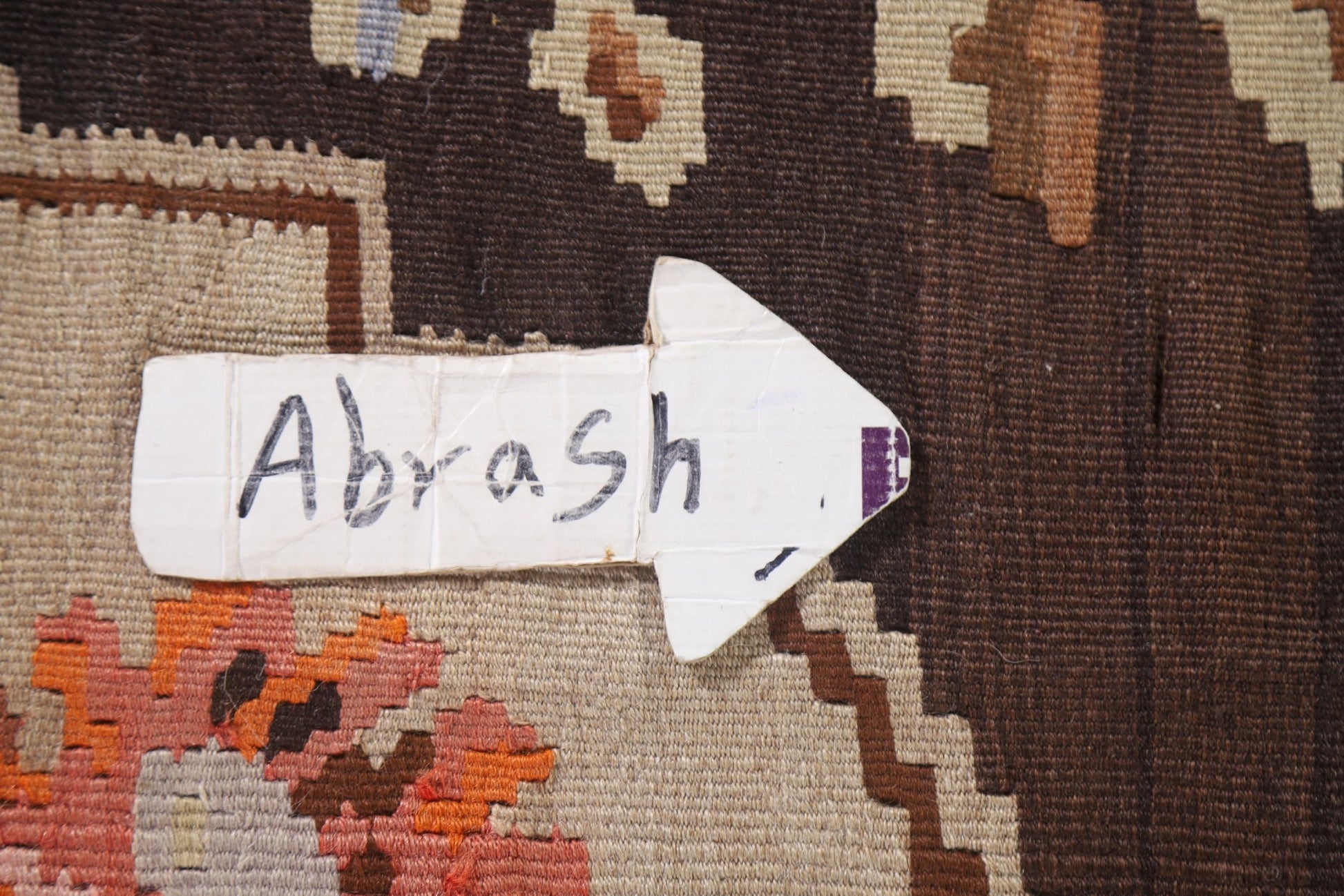 A Beautiful Genuine Turkey Kilim rug is Hand Woven by skillful weavers in Turkey with 100% Wool Material. This rug is in Very Good (Abrash-Hole) condition. dimensions are 12' 5'' X 6' 3'' in foot and 378 X 191 in centimeter. the primary color is Brown.
