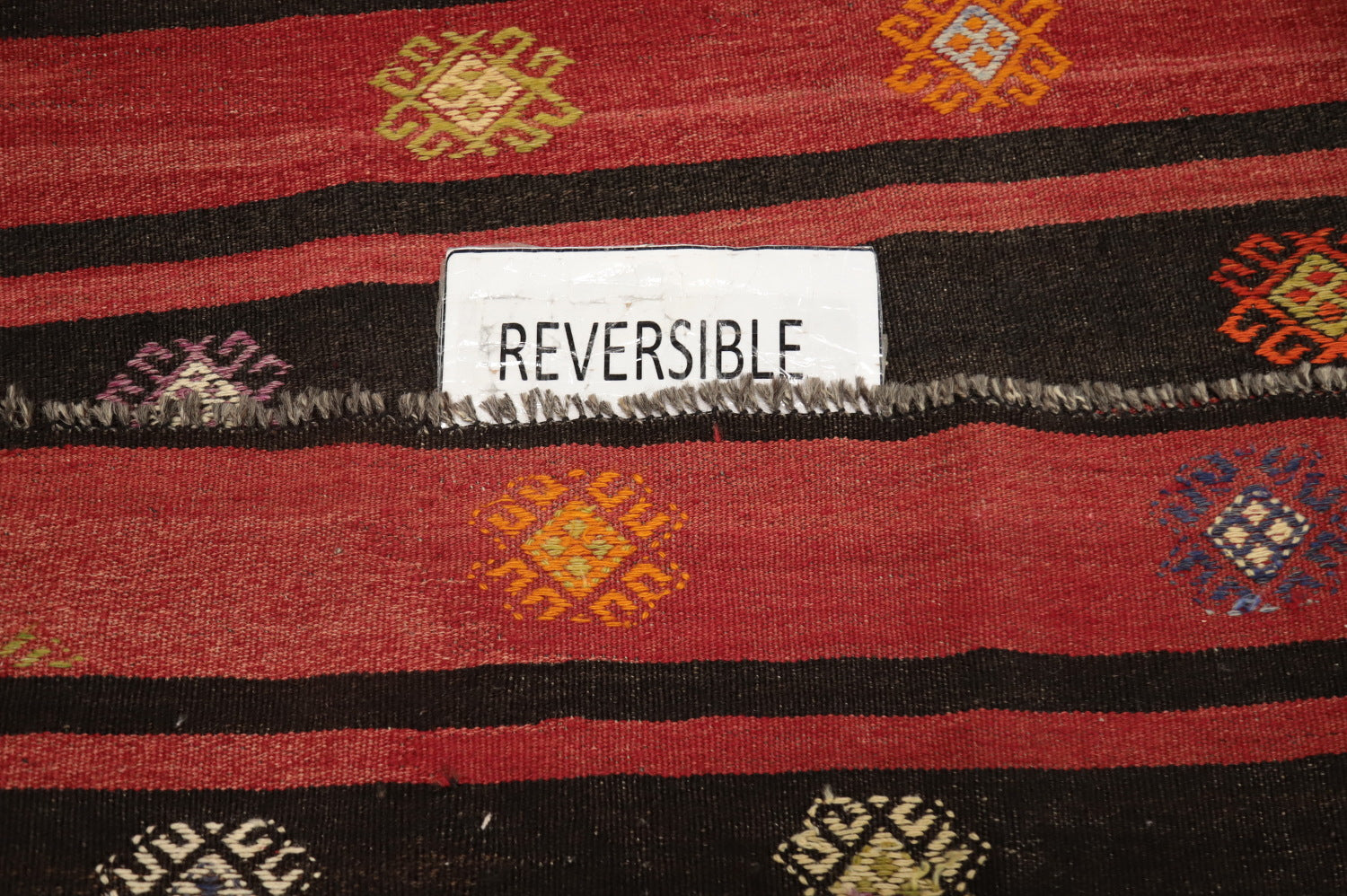 A Beautiful Genuine Turkey Kilim rug is Hand Woven by skillful weavers in Turkey with 100% Wool Material. This rug is in New, First Quality condition. dimensions are 9' 1'' X 5' 10'' in foot and 277 X 178 in centimeter. the primary color is Red.