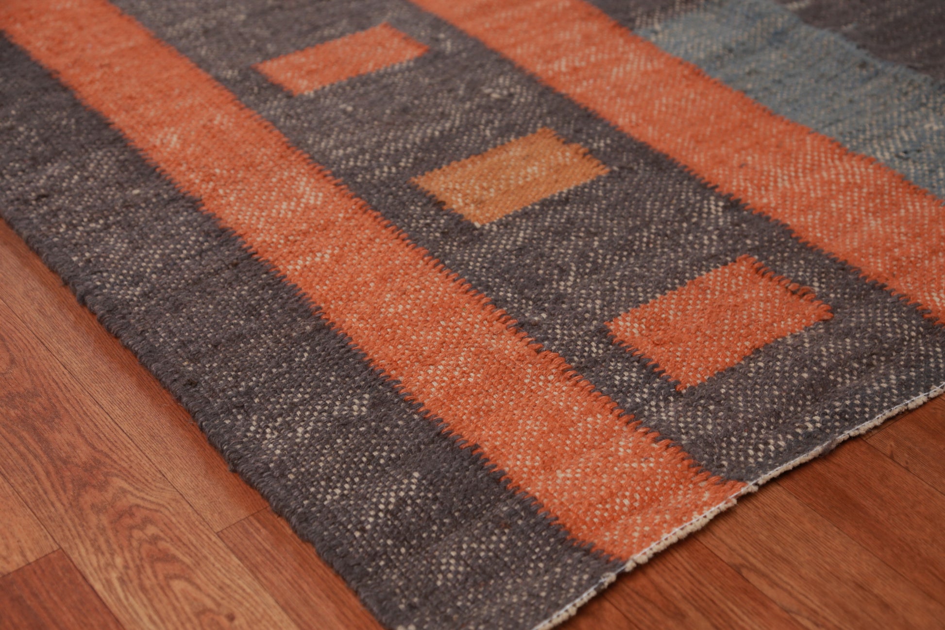 A Beautiful Genuine Turkey Kilim rug is Hand Woven by skillful weavers in Turkey with 100% Jute Material. This rug is in New, First Quality condition. dimensions are 14' 0'' X 10' 7'' in foot and 427 X 323 in centimeter. the primary color is Greys & Charcoal.