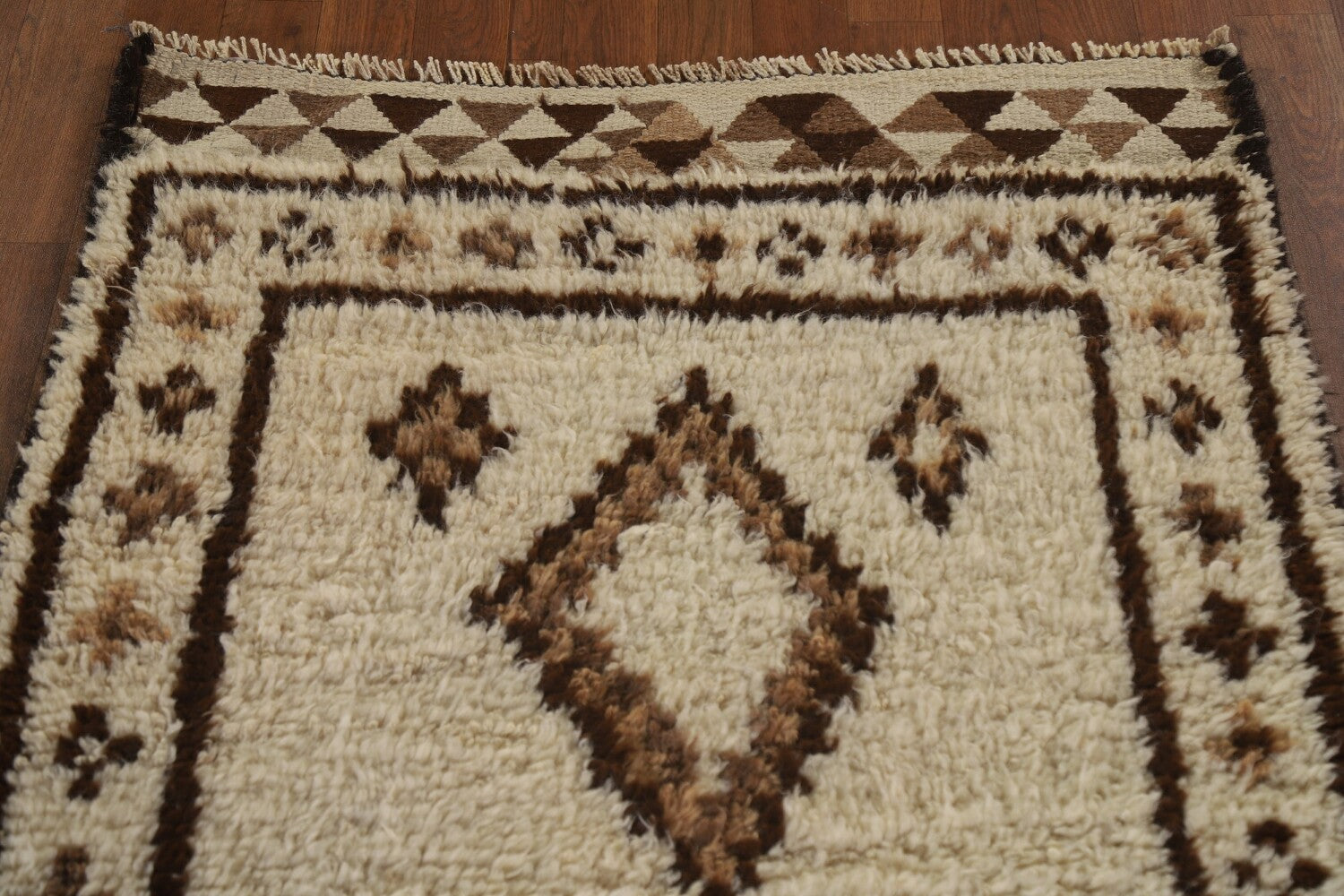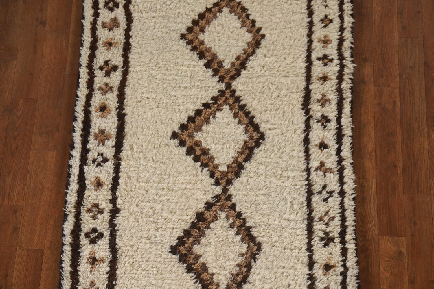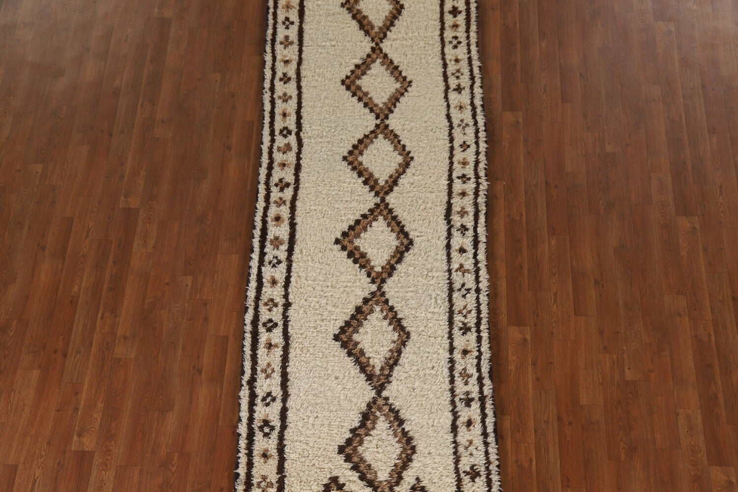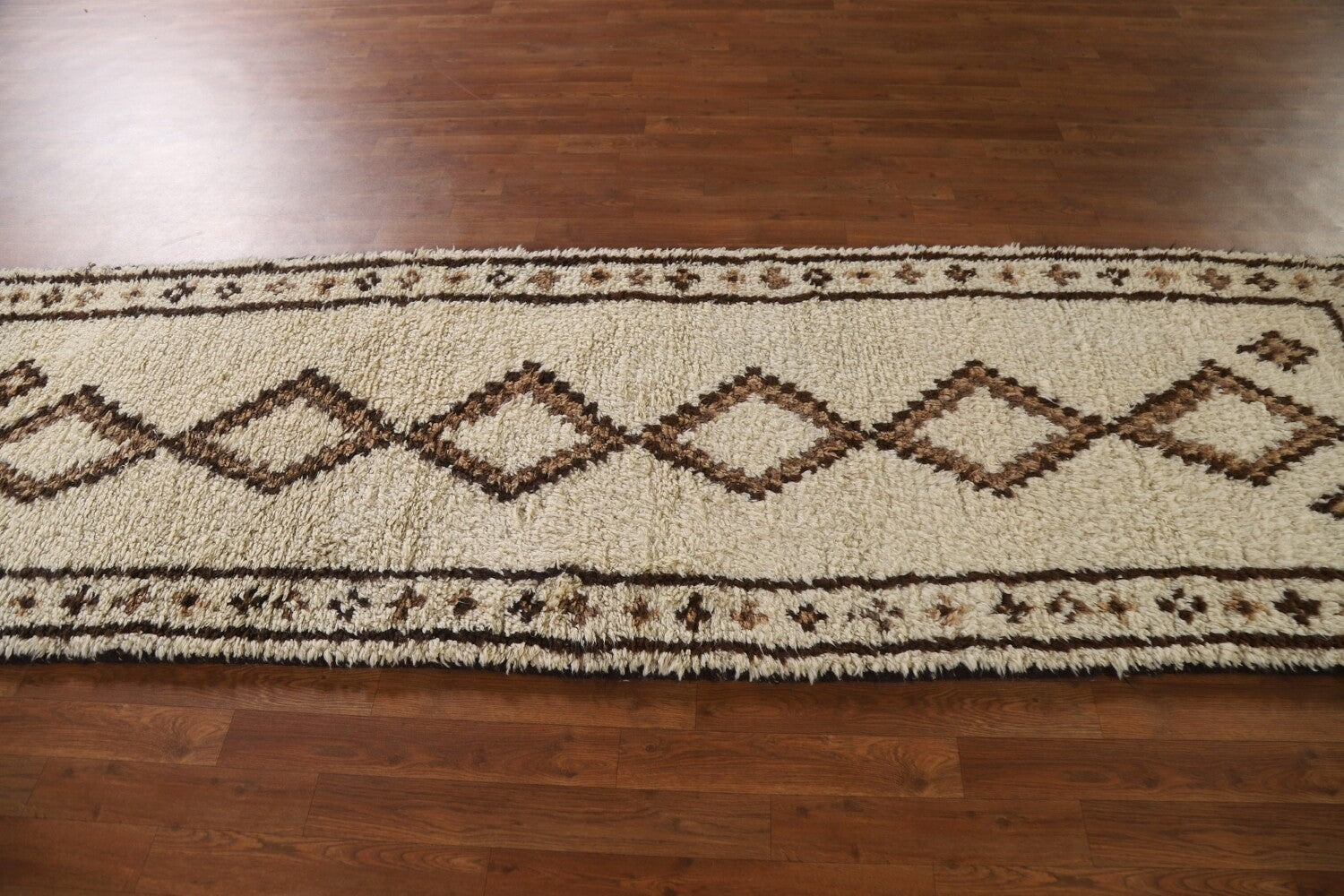 A Beautiful Genuine Turkey Kurdish rug is Hand Knotted by skillful weavers in Turkey with 100% Wool Material. This rug is in condition. dimensions are 10' 0'' X 3' 0'' in foot and 305 X 91 in centimeter. the primary color is Beige & Ivories.