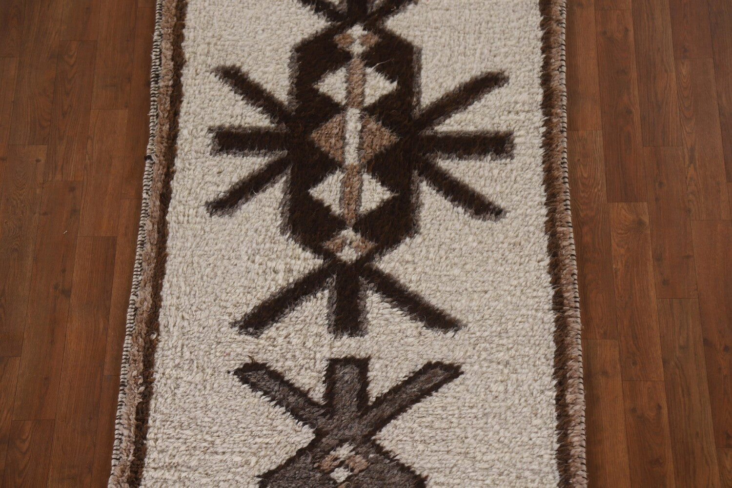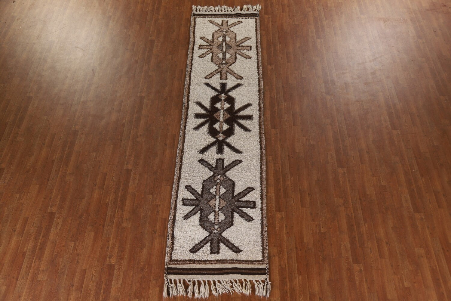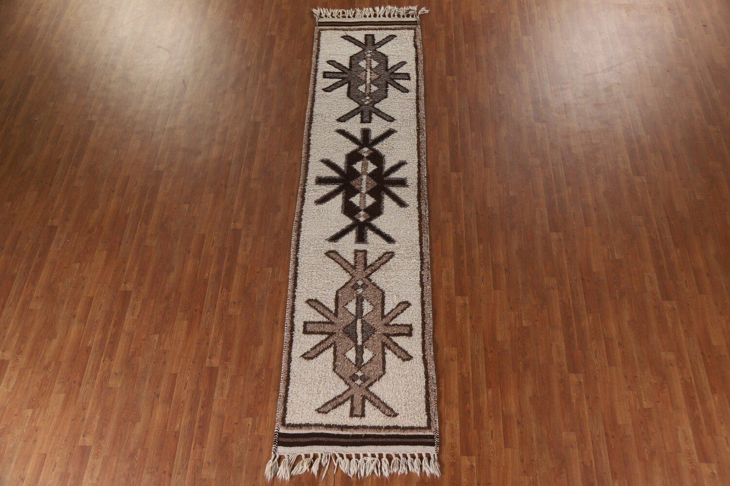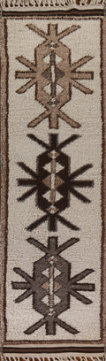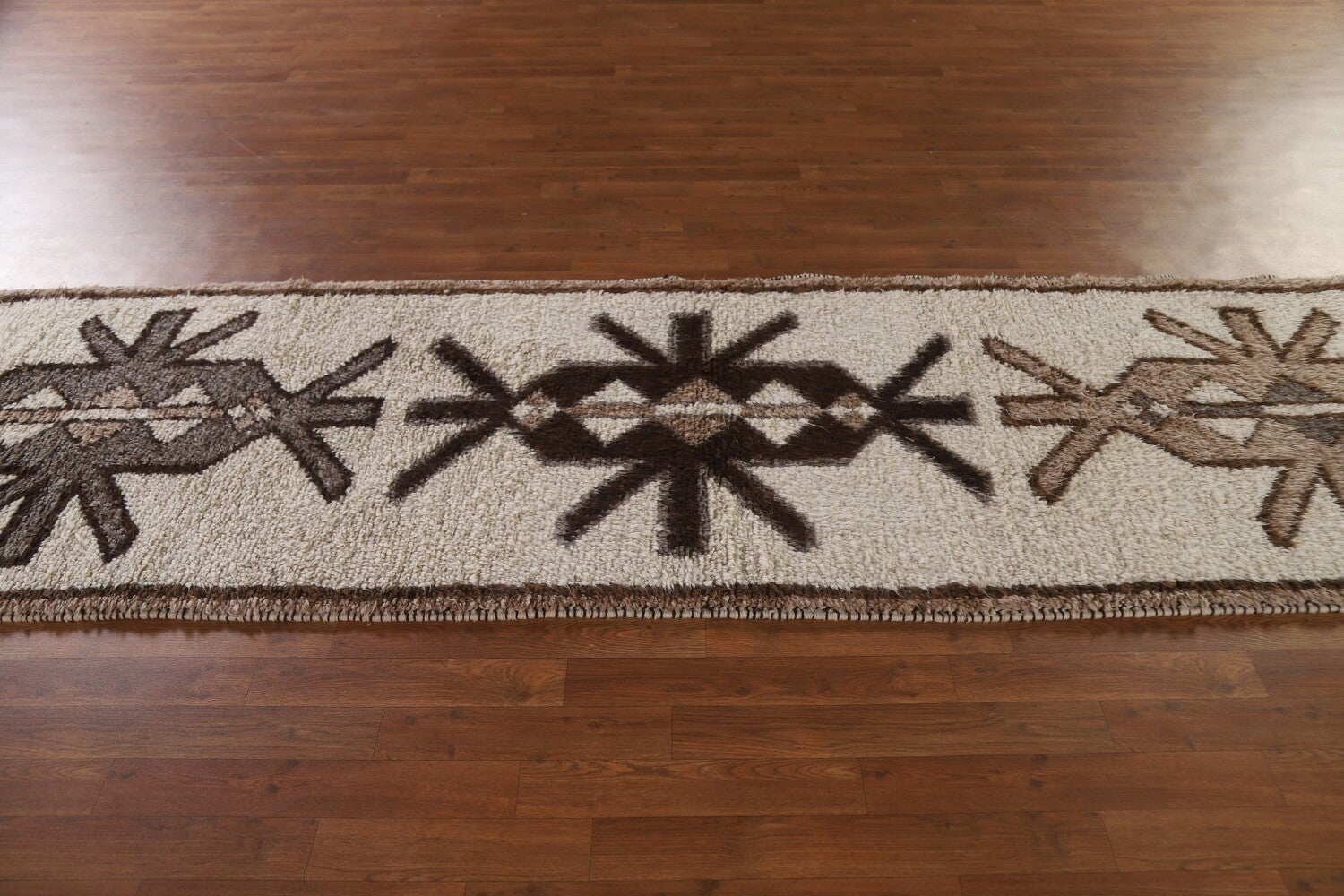 A Beautiful Genuine Turkey Kurdish rug is Hand Knotted by skillful weavers in Turkey with 100% Wool Material. This rug is in condition. dimensions are 12' 4'' X 3' 1'' in foot and 376 X 94 in centimeter. the primary color is Beige & Ivories.