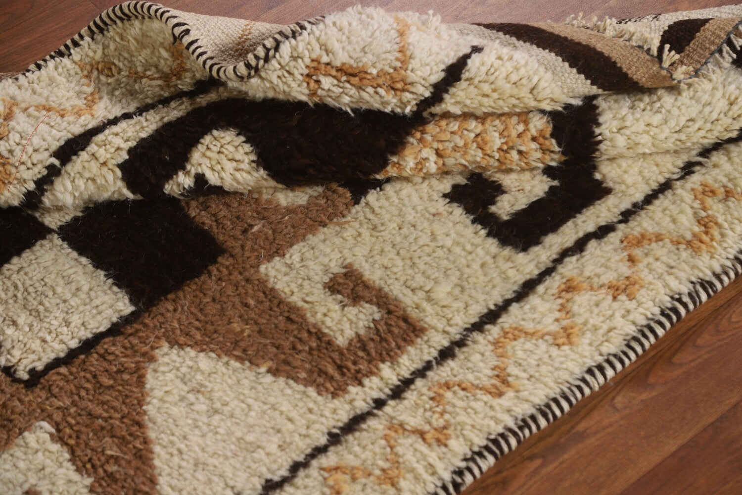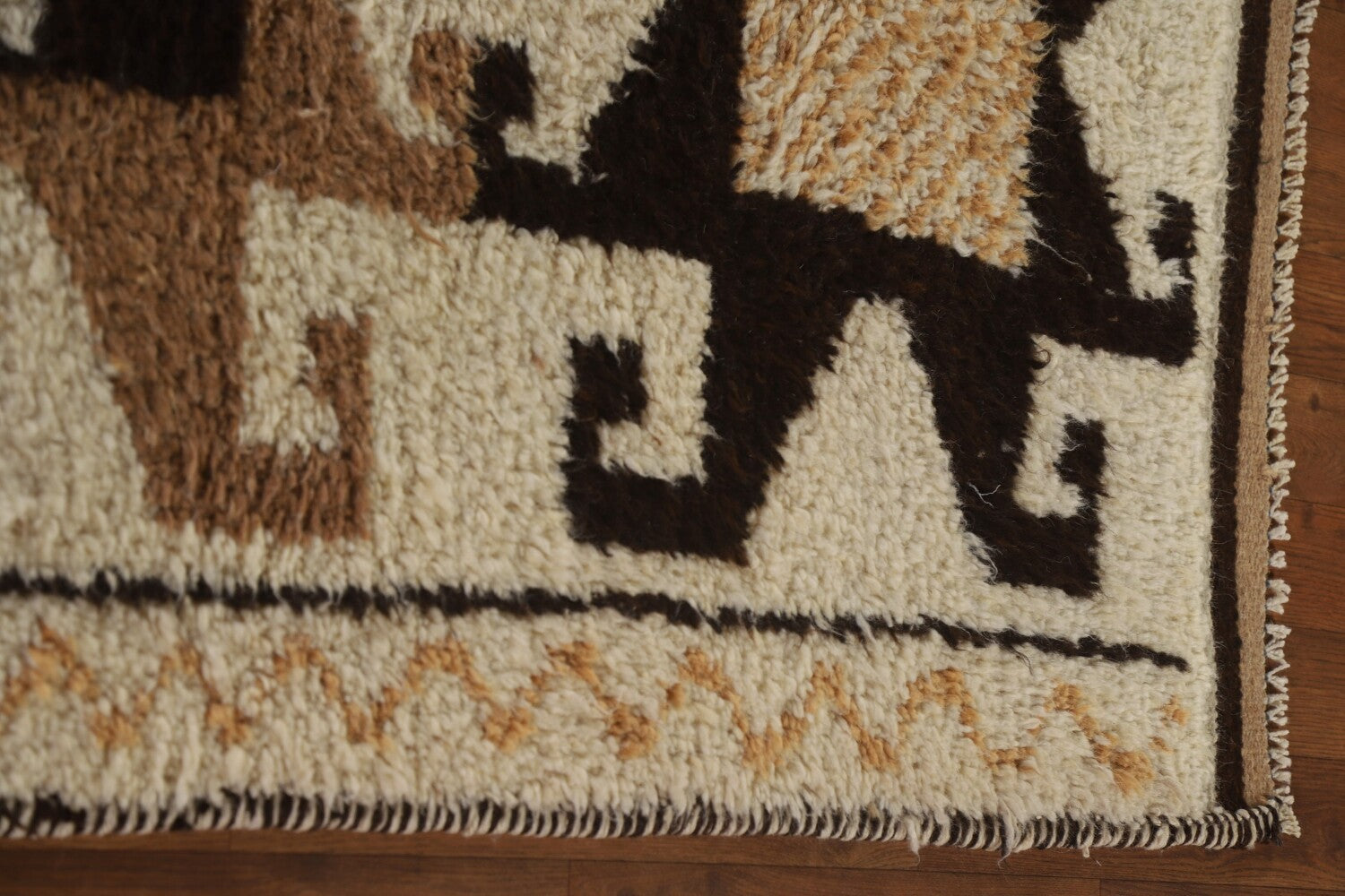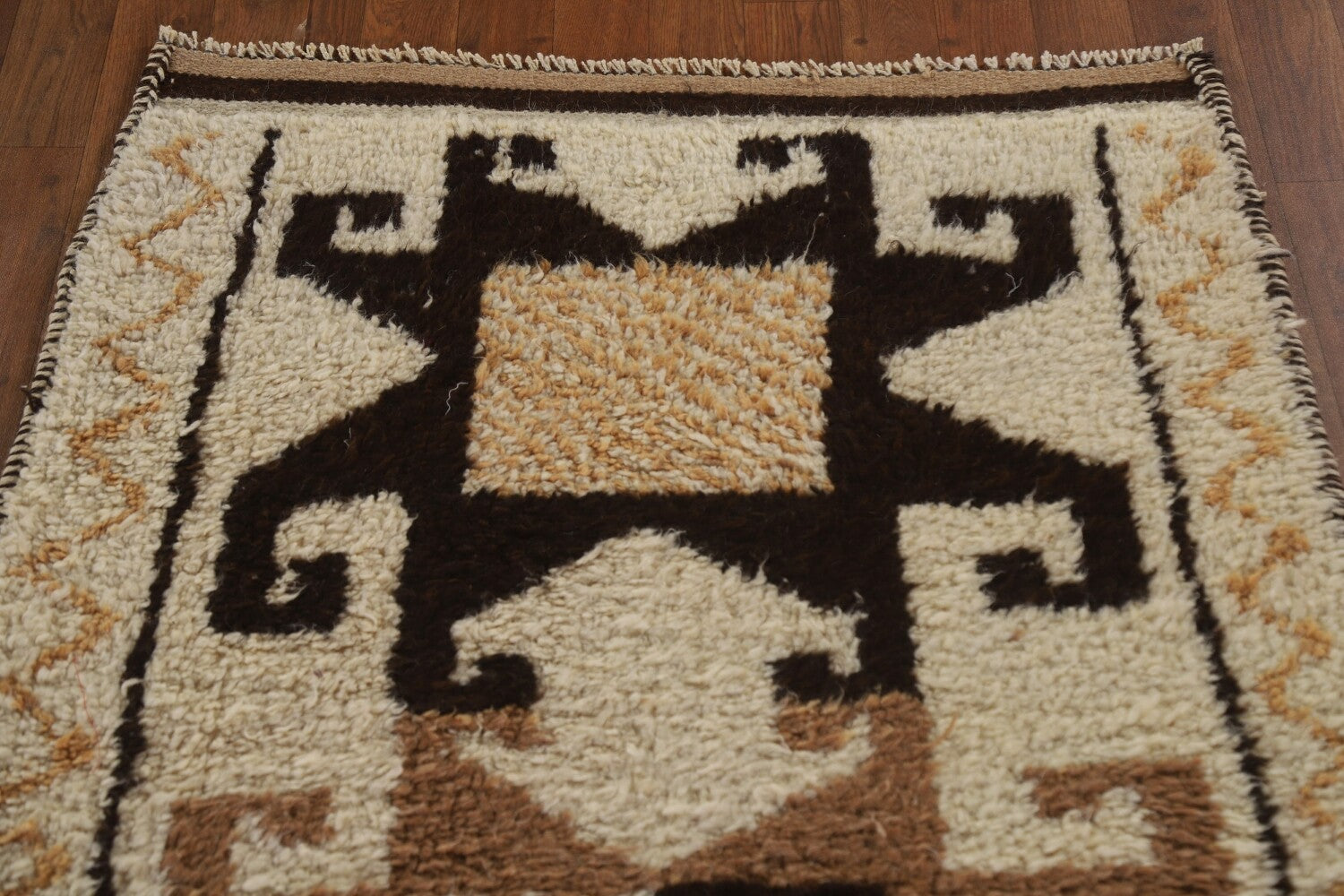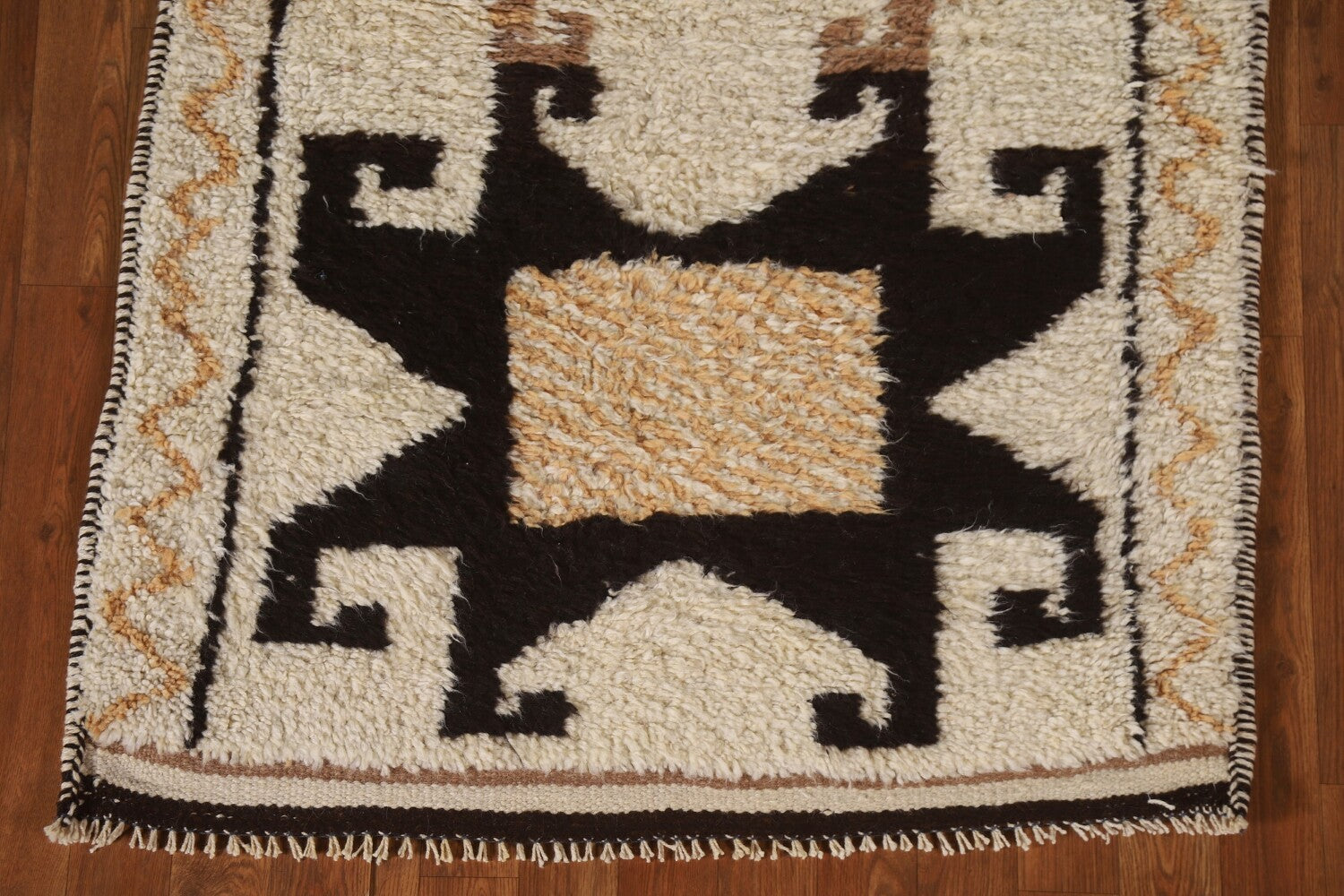 A Beautiful Genuine Turkey Kurdish rug is Hand Knotted by skillful weavers in Turkey with 100% Wool Material. This rug is in condition. dimensions are 10' 7'' X 3' 4'' in foot and 323 X 102 in centimeter. the primary color is Beige & Ivories.