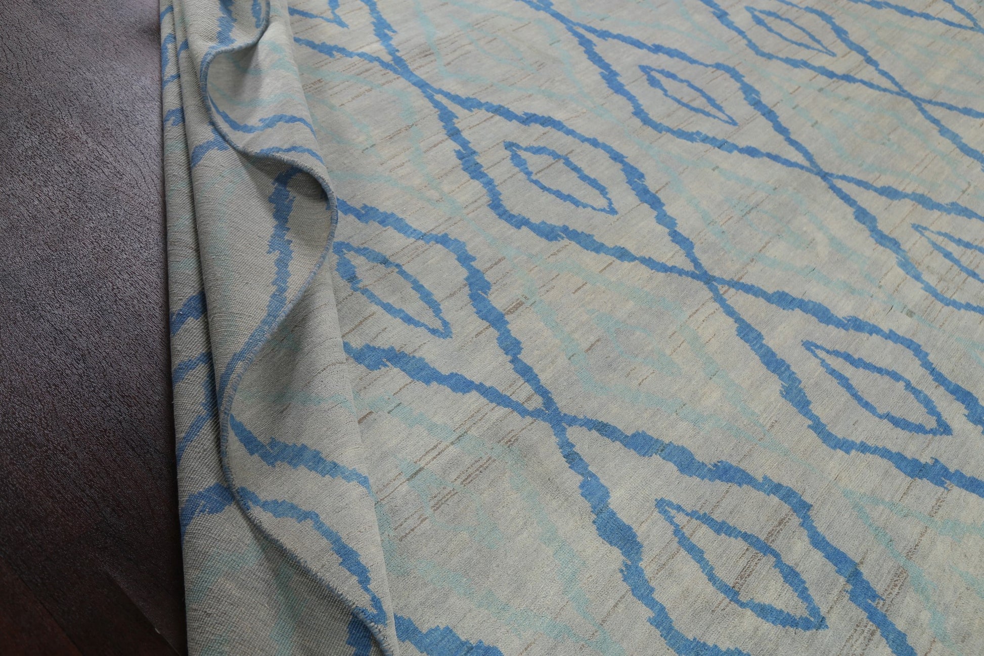 A Beautiful Genuine Pakistan Abstract rug is Hand Knotted by skillful weavers in Pakistan with 100% Wool Material. This rug is in New, First Quality condition. dimensions are 14' 11'' X 11' 10'' in foot and 455 X 361 in centimeter. the primary color is Greys & Charcoal.