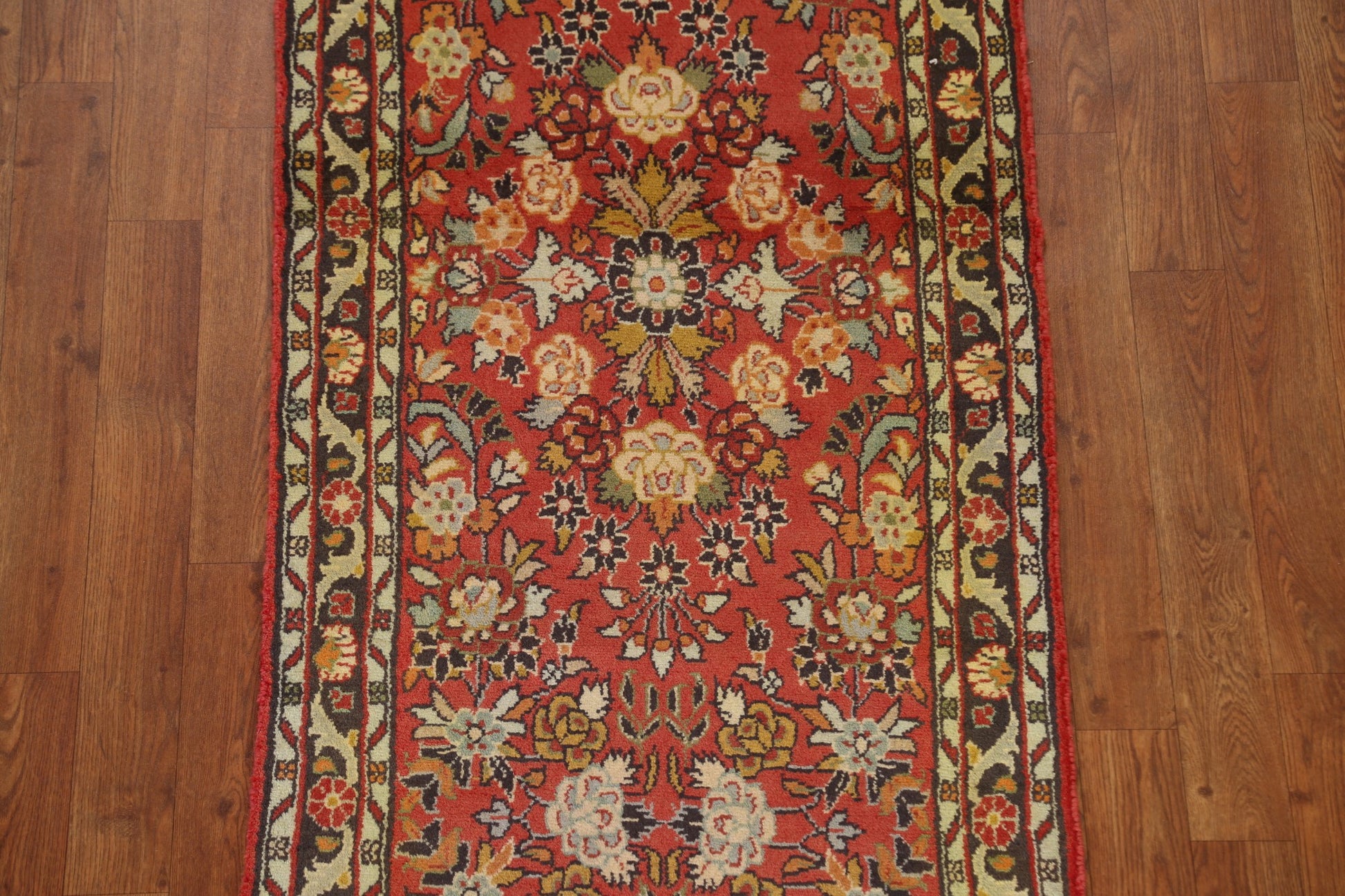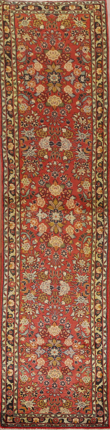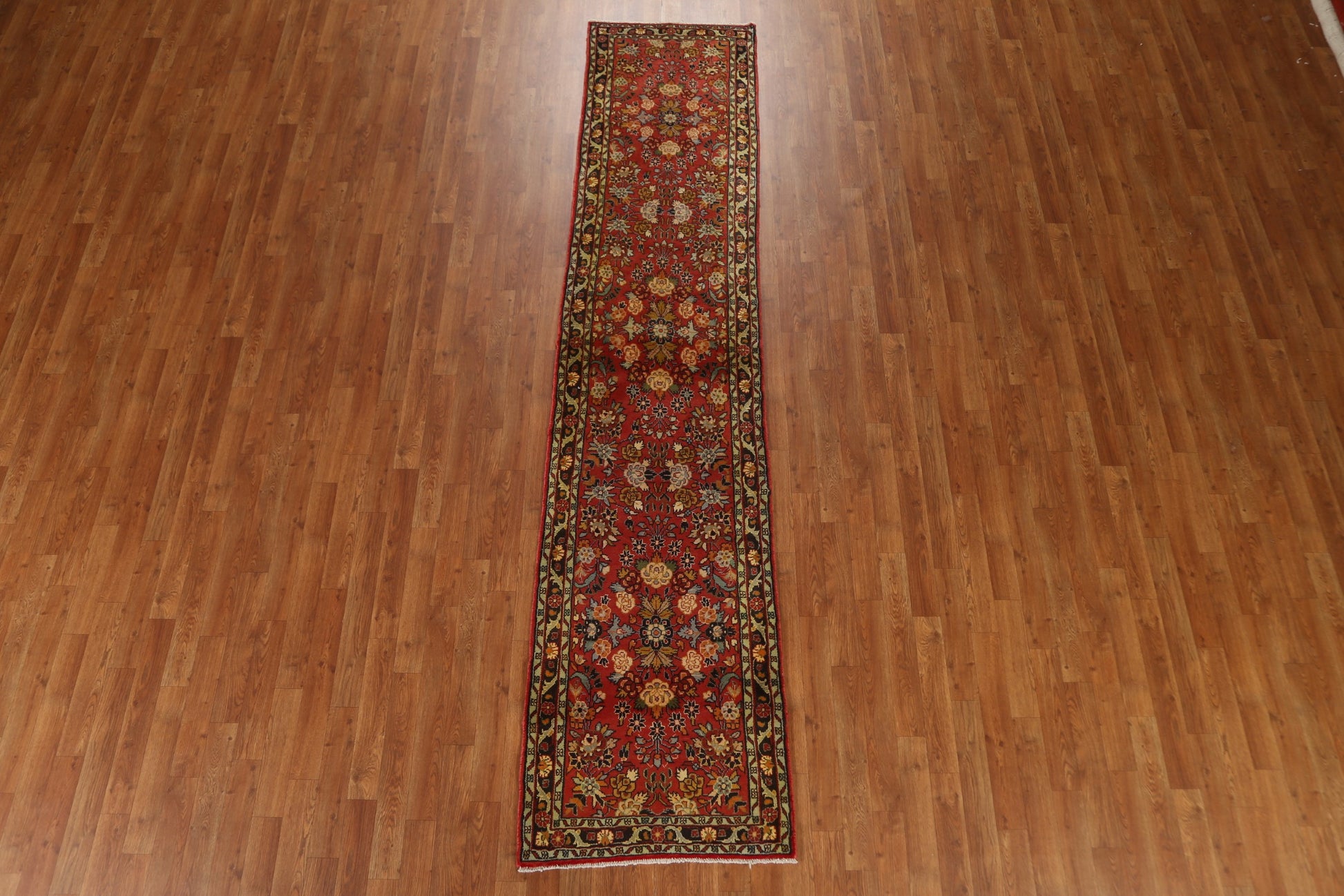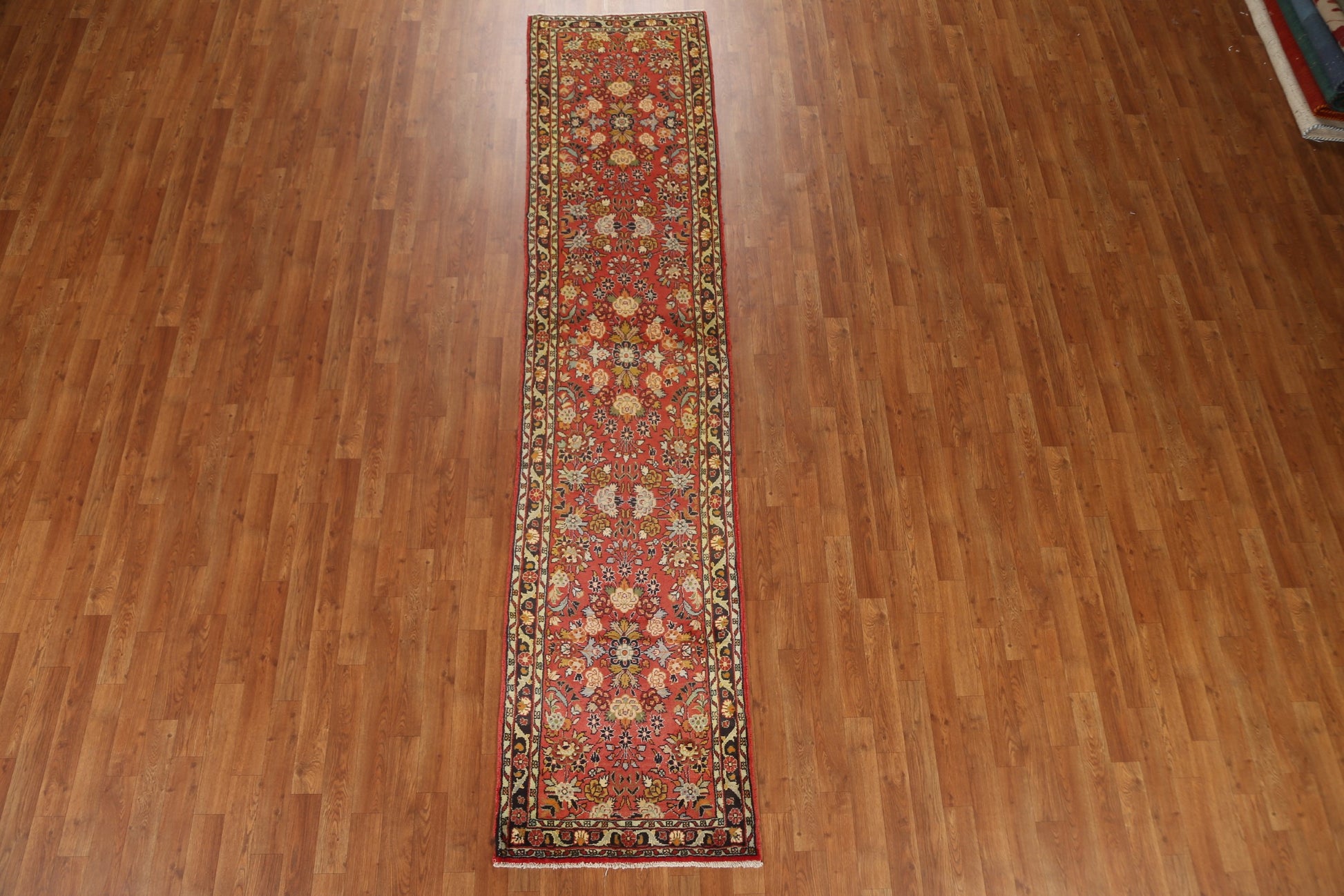 A Beautiful Genuine Persia ( Persia ) Lilian rug is Hand Knotted by skillful weavers in Persia ( Persia ) with 100% Wool Material. This rug is in Very Good (Abrash) condition. dimensions are 10' 7'' X 2' 3'' in foot and 323 X 69 in centimeter. the primary color is Red.