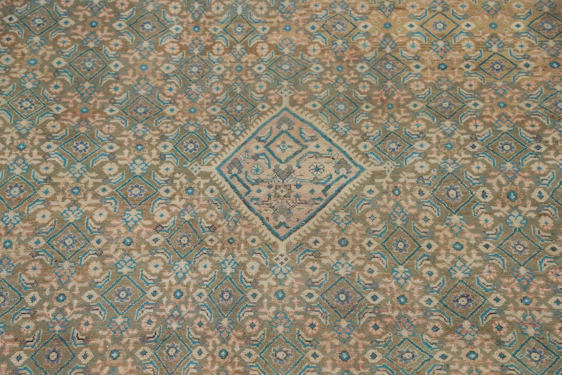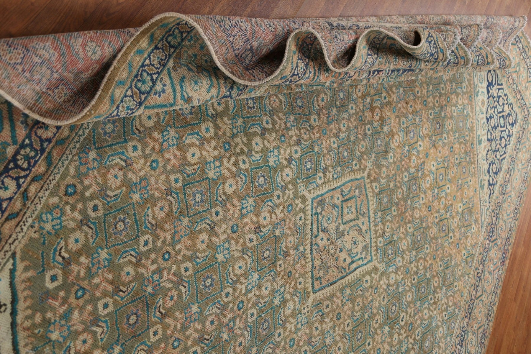 A Beautiful Genuine Persia ( Persia ) Mahal rug is Hand Knotted by skillful weavers in Persia ( Persia ) with 100% Wool Material. This rug is in Very Good (Evenly Low Pile) condition. dimensions are 13' 1'' X 9' 7'' in foot and 399 X 292 in centimeter. the primary color is Green.