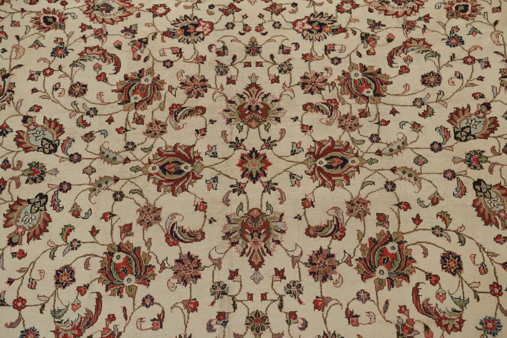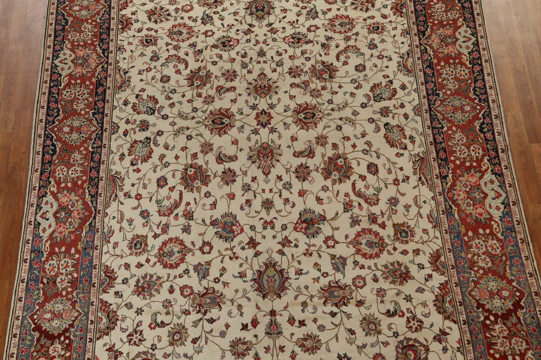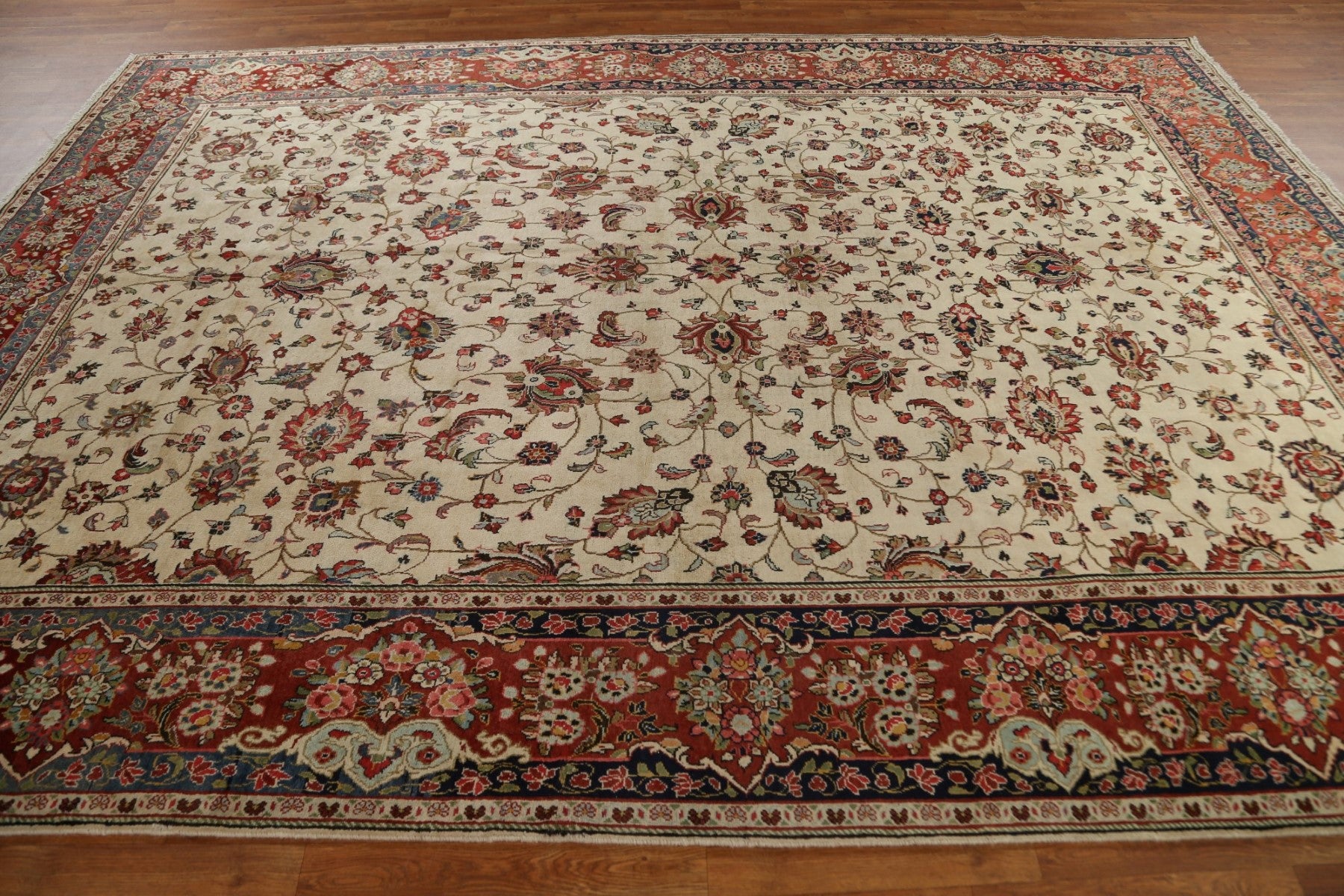A Beautiful Genuine Persia ( Persia ) Mahal rug is Hand Knotted by skillful weavers in Persia ( Persia ) with 100% Wool Material. This rug is in Very Good (Small Low Pile-Repair) condition. dimensions are 11' 8'' X 8' 4'' in foot and 356 X 254 in centimeter. the primary color is Beige & Ivories.