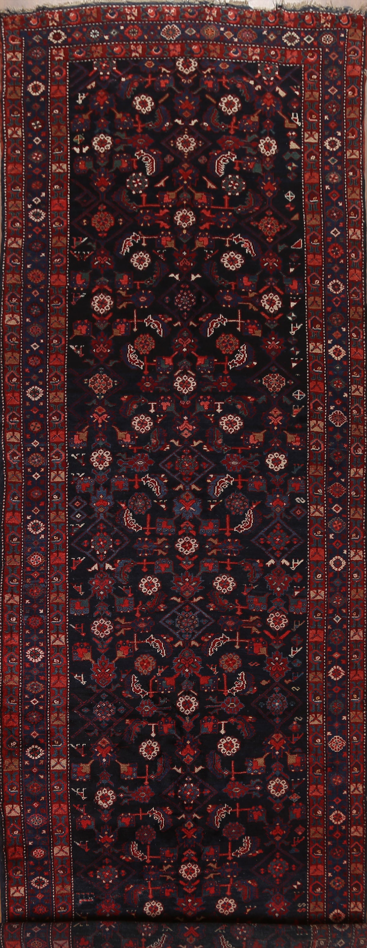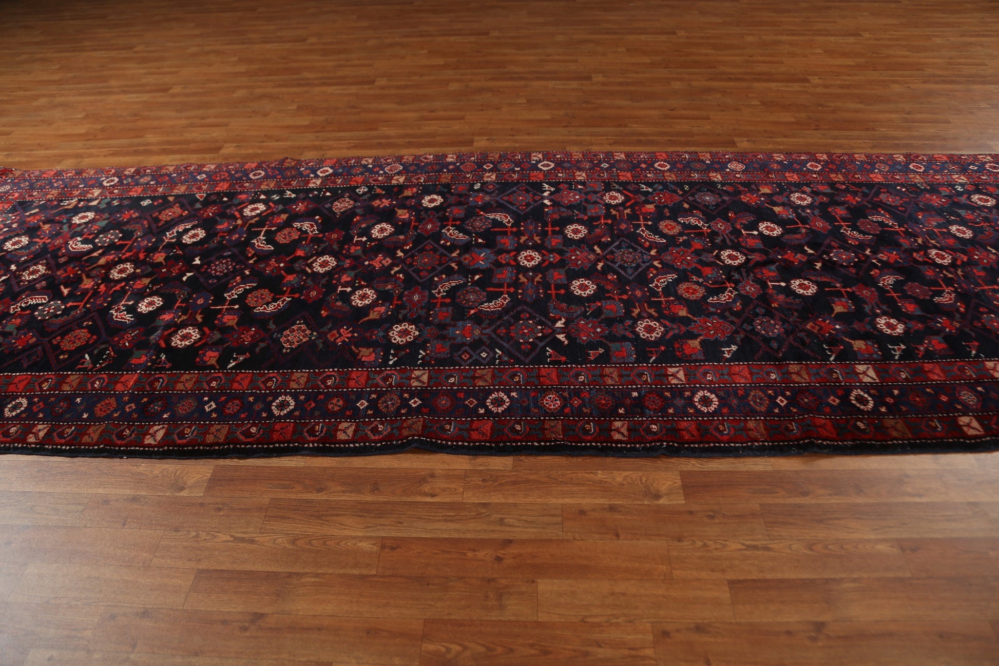 A Beautiful Genuine Persia ( Persia ) Mahal rug is Hand Knotted by skillful weavers in Persia ( Persia ) with 100% Wool Material. This rug is in Very Good condition. dimensions are 14' 2'' X 4' 7'' in foot and 432 X 140 in centimeter. the primary color is Navy Blue & Blues.