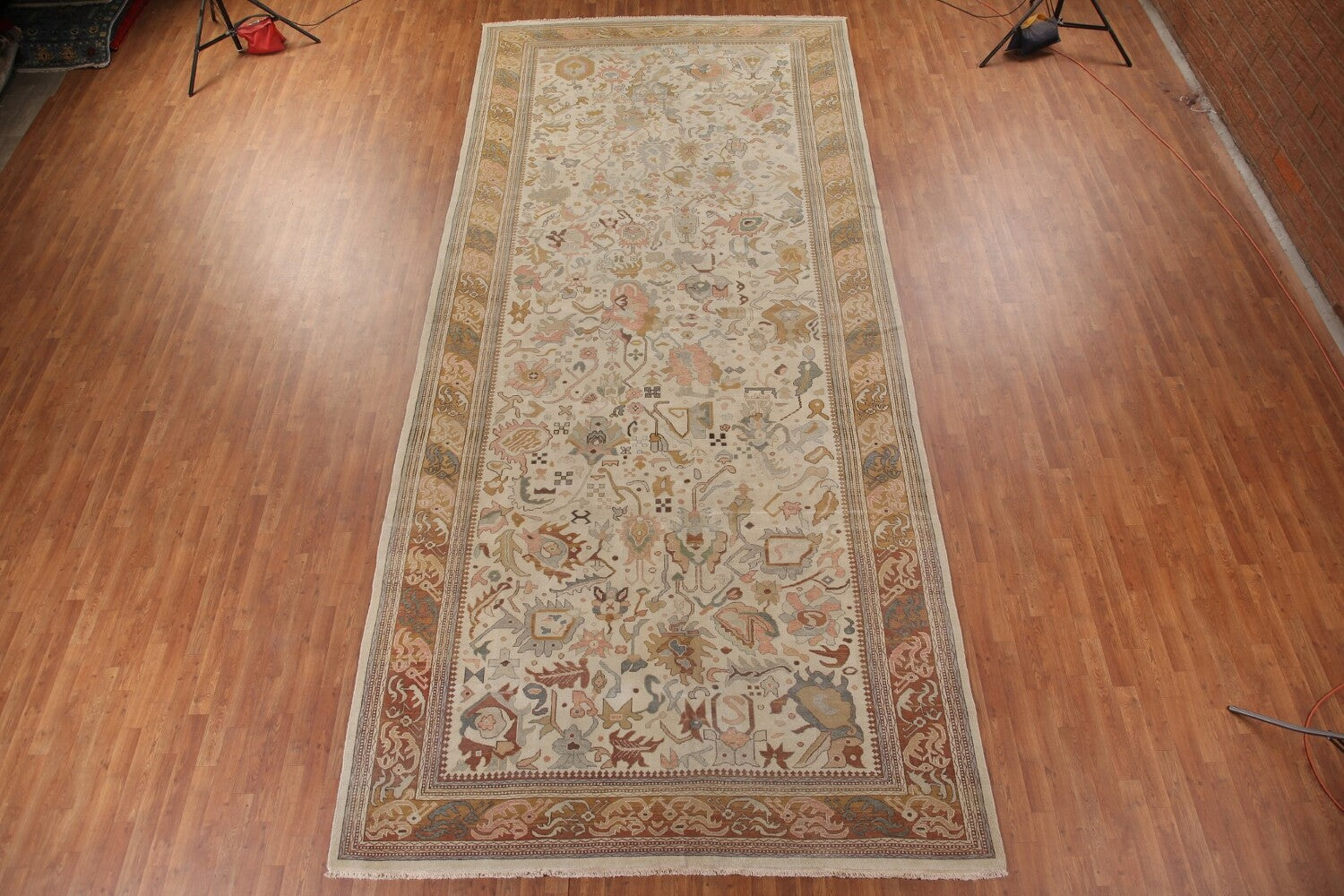 A Beautiful Genuine Persia ( Persia ) Mahal rug is Hand Knotted by skillful weavers in Persia ( Persia ) with 100% Wool Material. This rug is in Very Good (Evenly Low Pile-Abrash) condition. dimensions are 17' 6'' X 7' 10'' in foot and 533 X 239 in centimeter. the primary color is Beige & Ivories.
