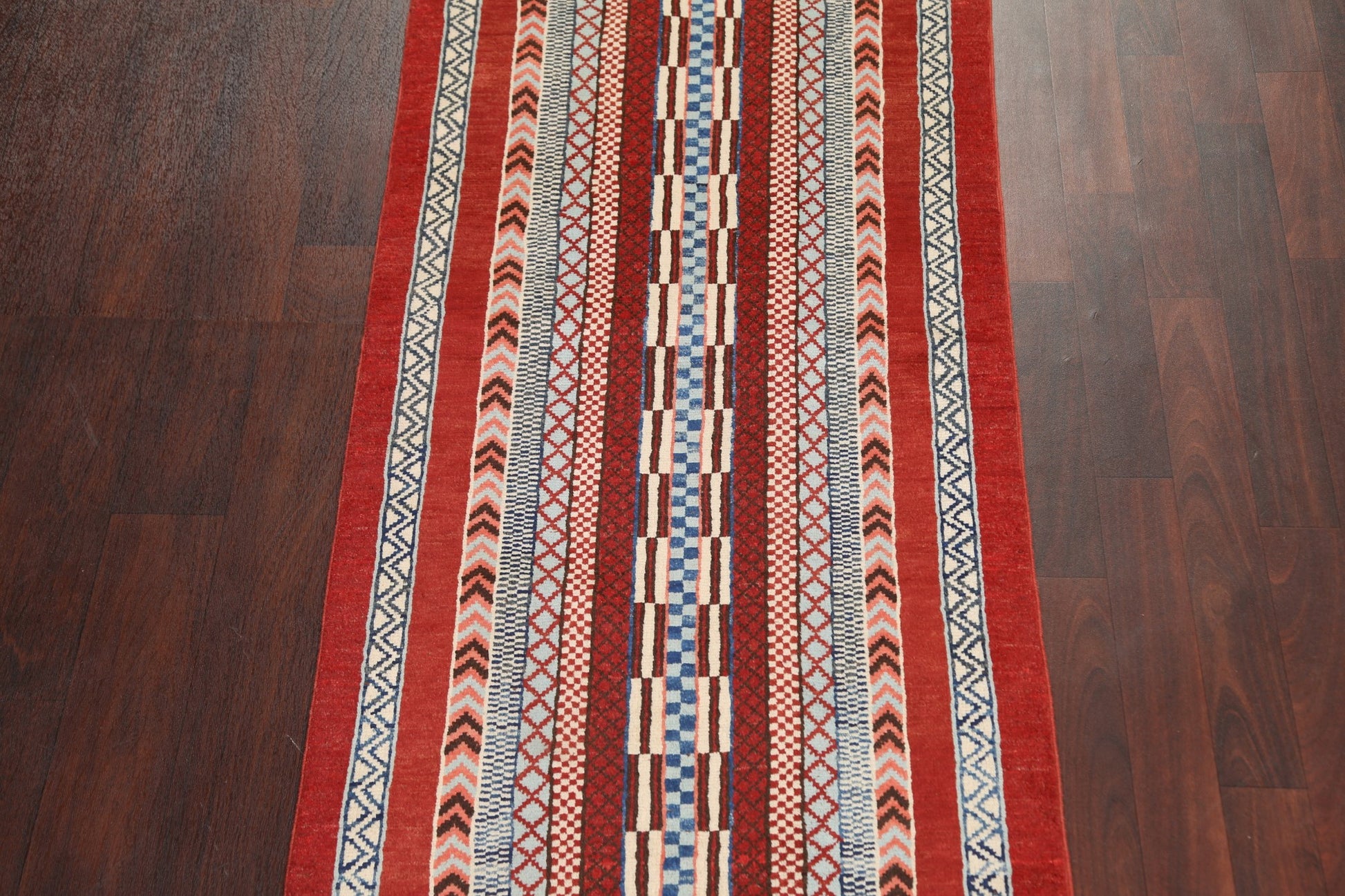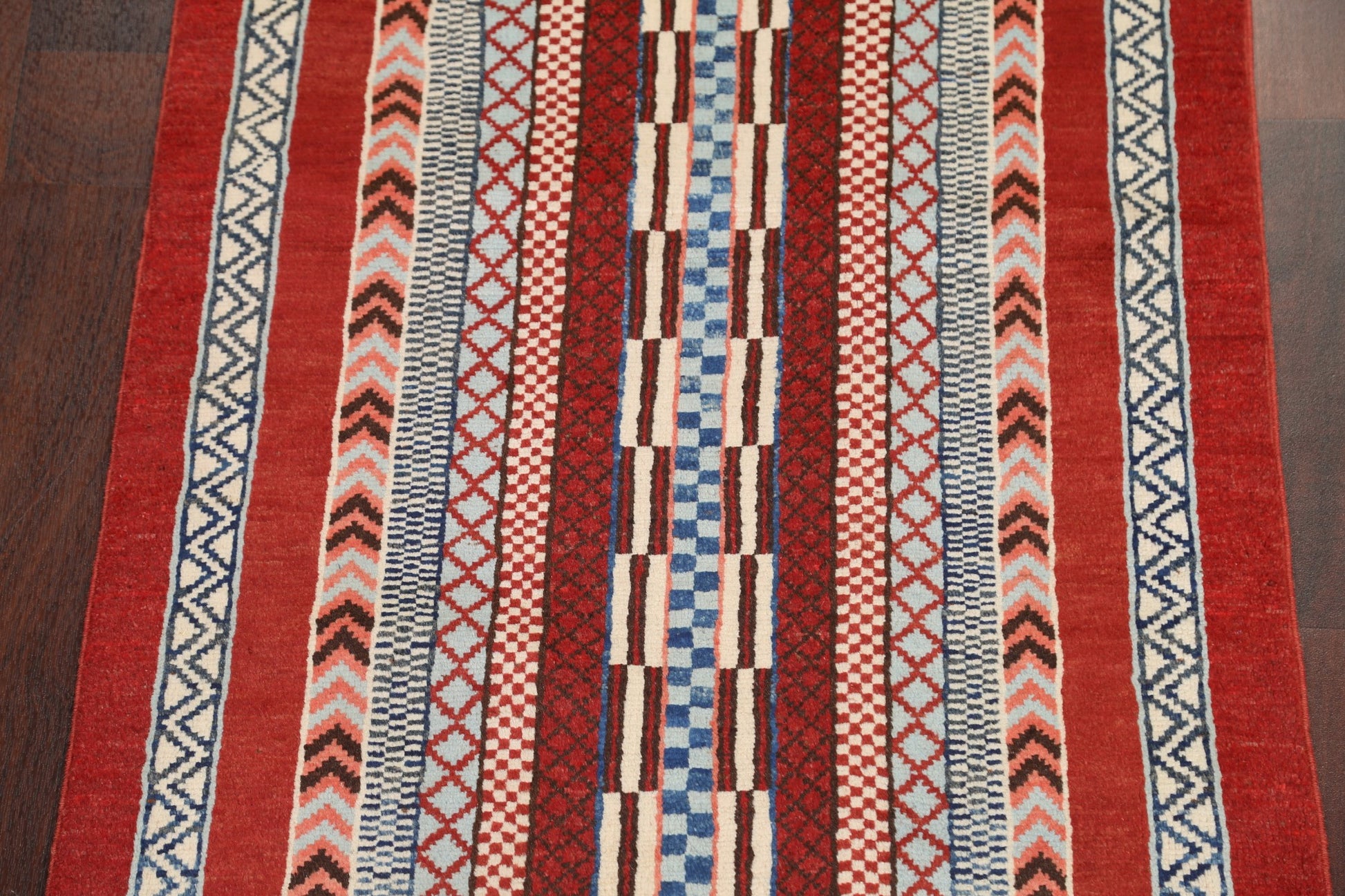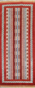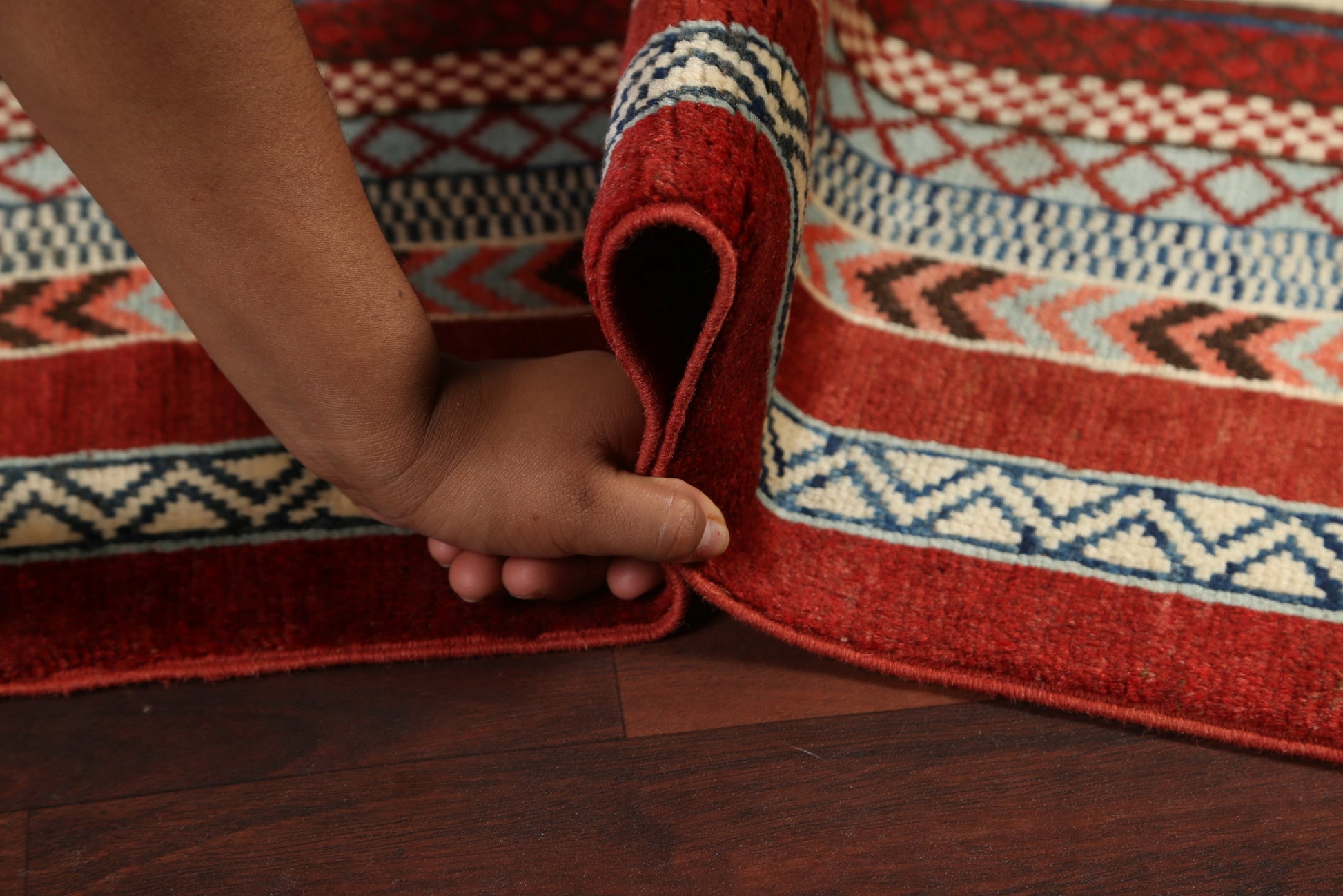 A Beautiful Genuine Pakistan Moharramat rug is Hand Knotted by skillful weavers in Pakistan with 100% Wool Material. This rug is in New, First Quality condition. dimensions are 6' 5'' X 2' 6'' in foot and 196 X 76 in centimeter. the primary color is Red.