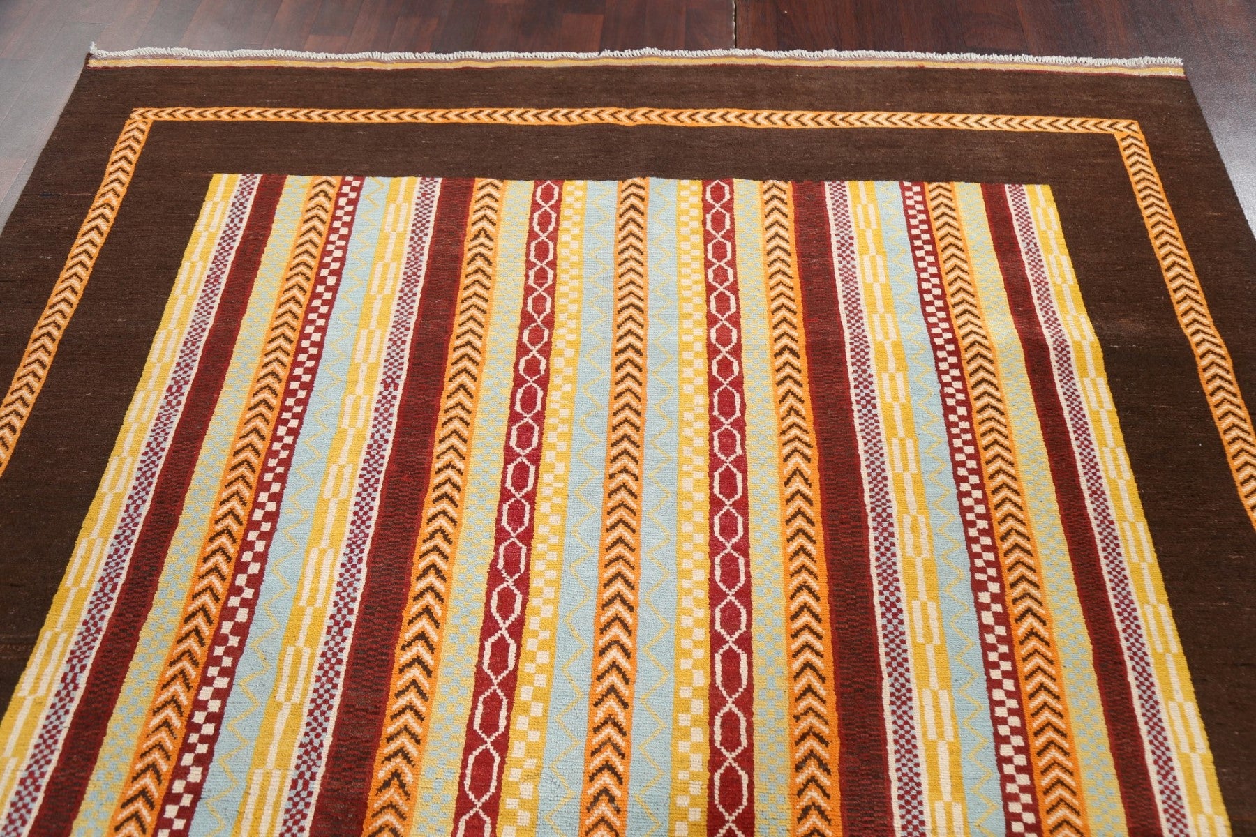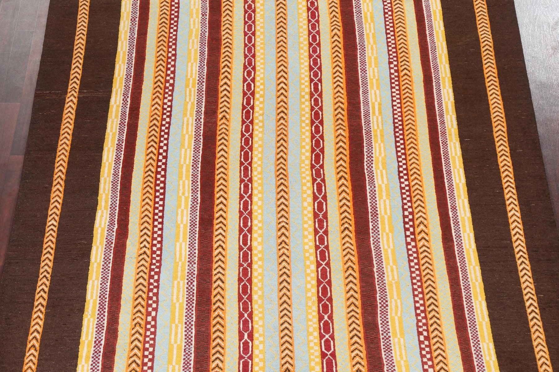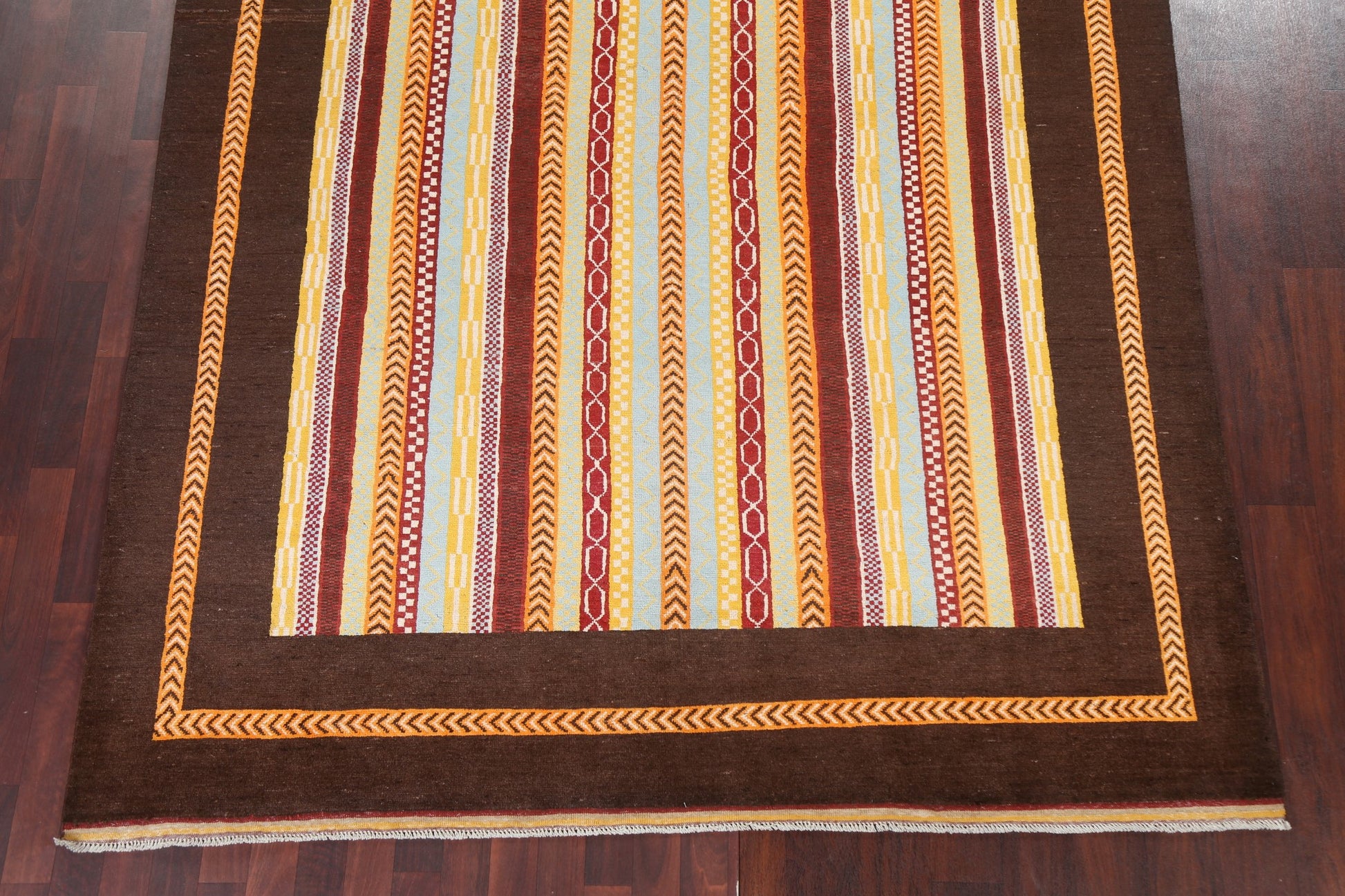 A Beautiful Genuine Pakistan Moharramat rug is Hand Knotted by skillful weavers in Pakistan with 100% Wool Material. This rug is in New, First Quality condition. dimensions are 9' 6'' X 6' 11'' in foot and 290 X 211 in centimeter. the primary color is Brown.