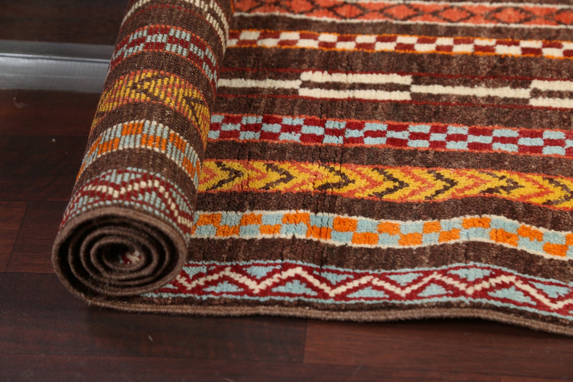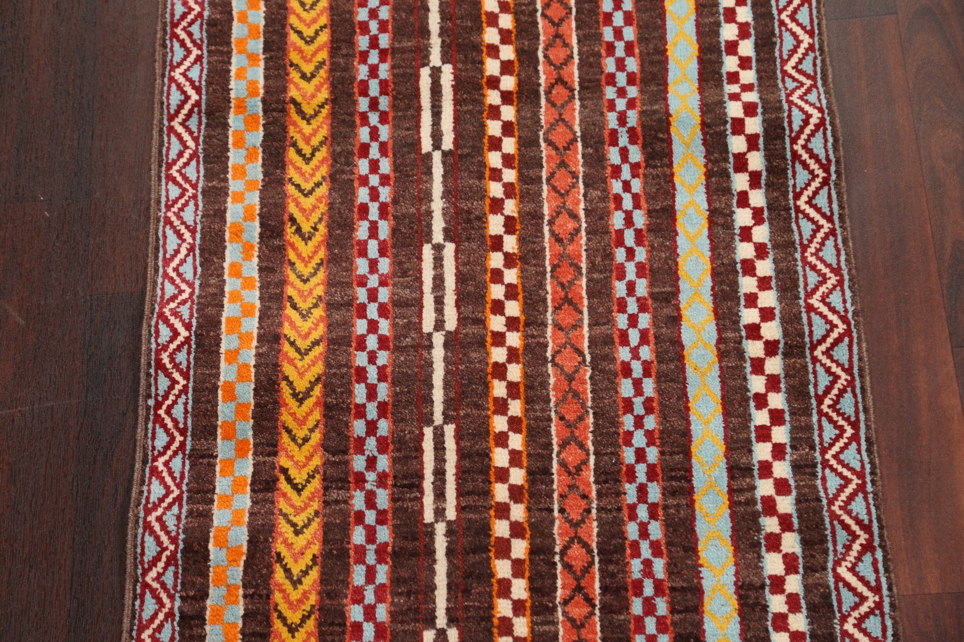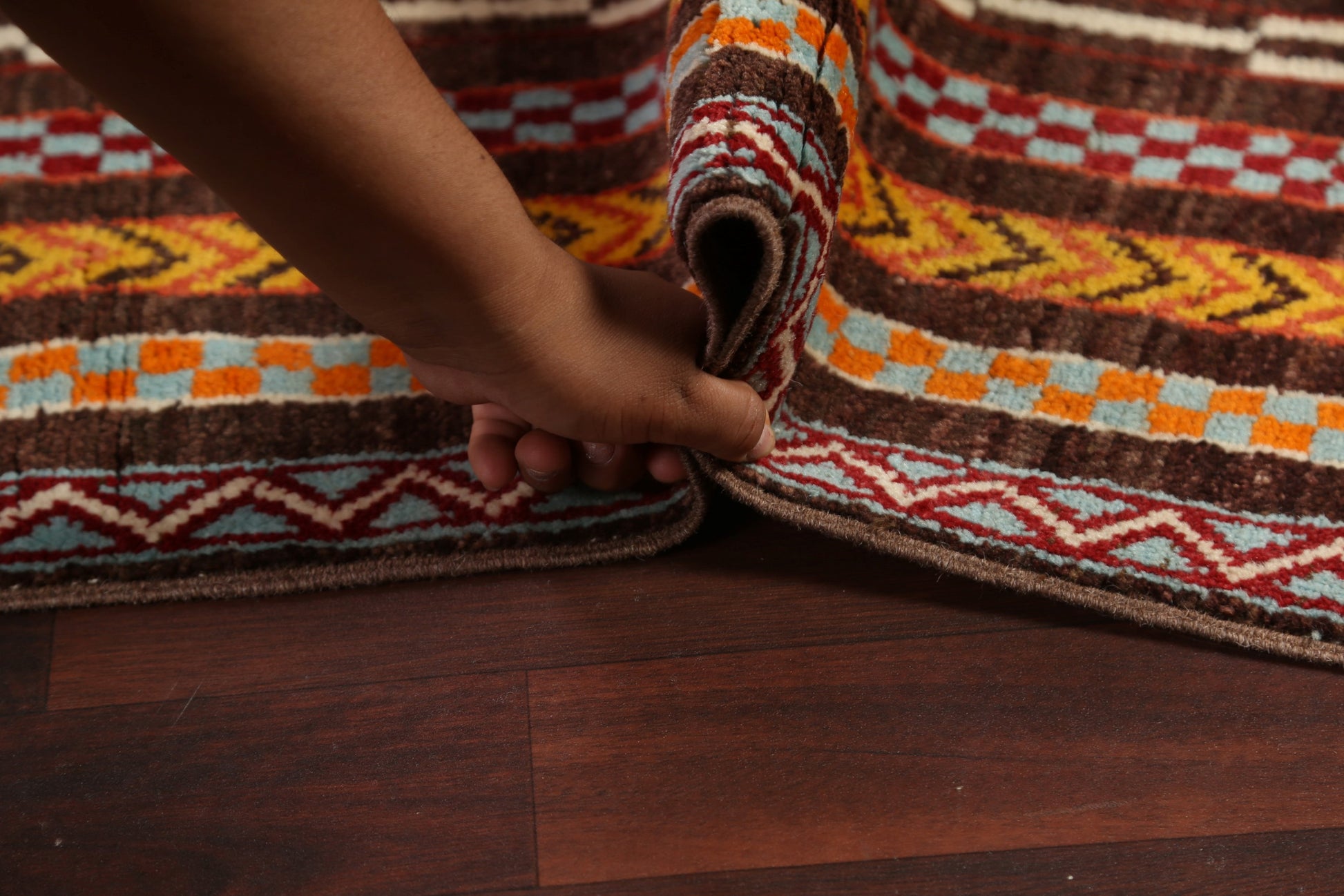 A Beautiful Genuine Pakistan Moharramat rug is Hand Knotted by skillful weavers in Pakistan with 100% Wool Material. This rug is in New, First Quality condition. dimensions are 6' 1'' X 2' 2'' in foot and 185 X 66 in centimeter. the primary color is Brown.