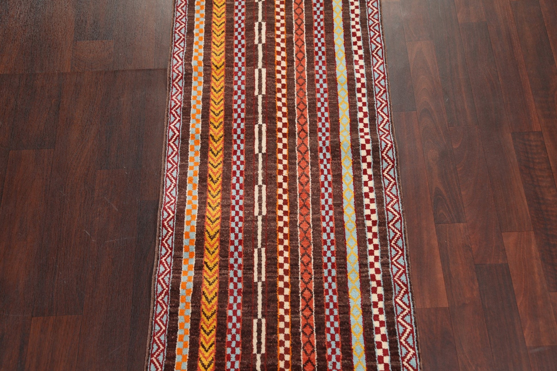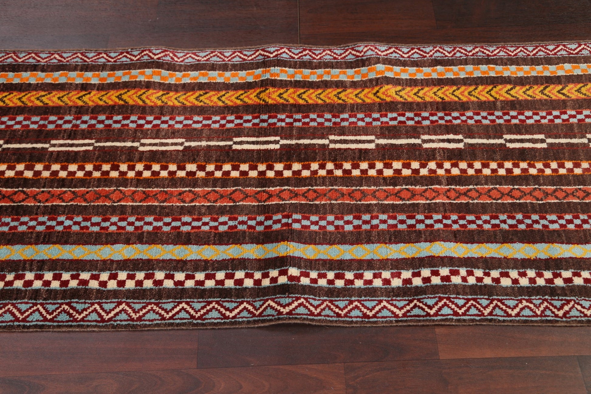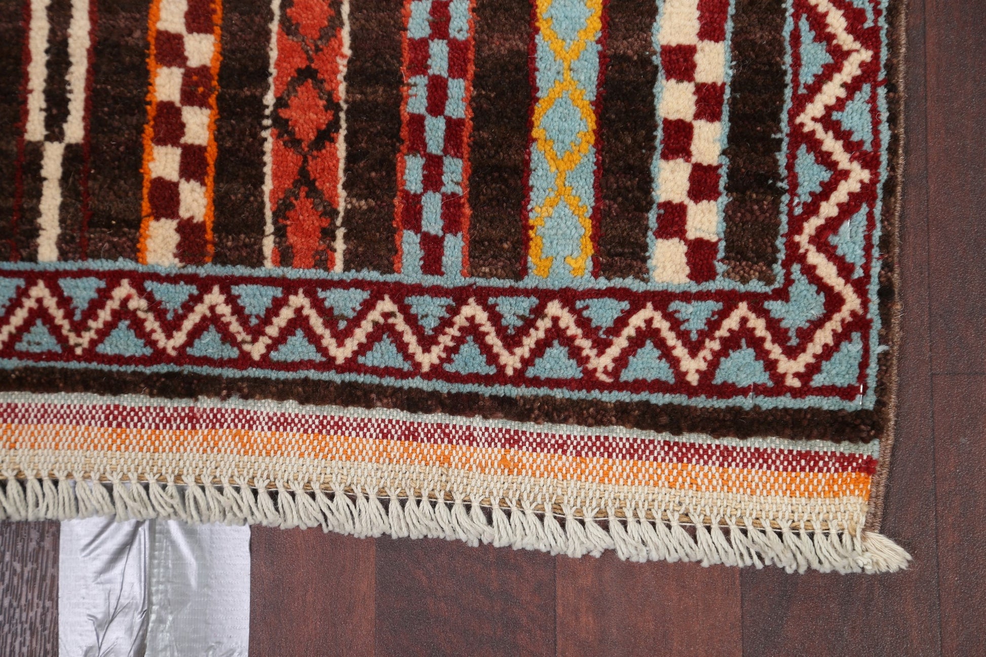A Beautiful Genuine Pakistan Moharramat rug is Hand Knotted by skillful weavers in Pakistan with 100% Wool Material. This rug is in New, First Quality condition. dimensions are 6' 1'' X 2' 2'' in foot and 185 X 66 in centimeter. the primary color is Brown.