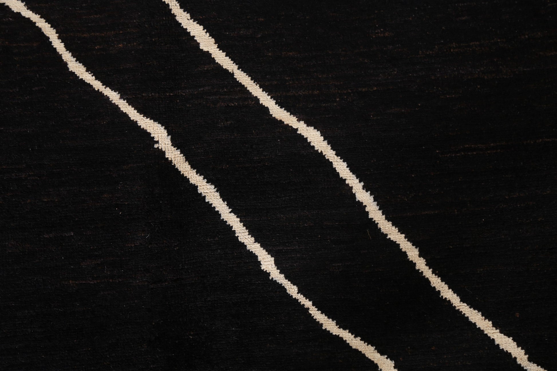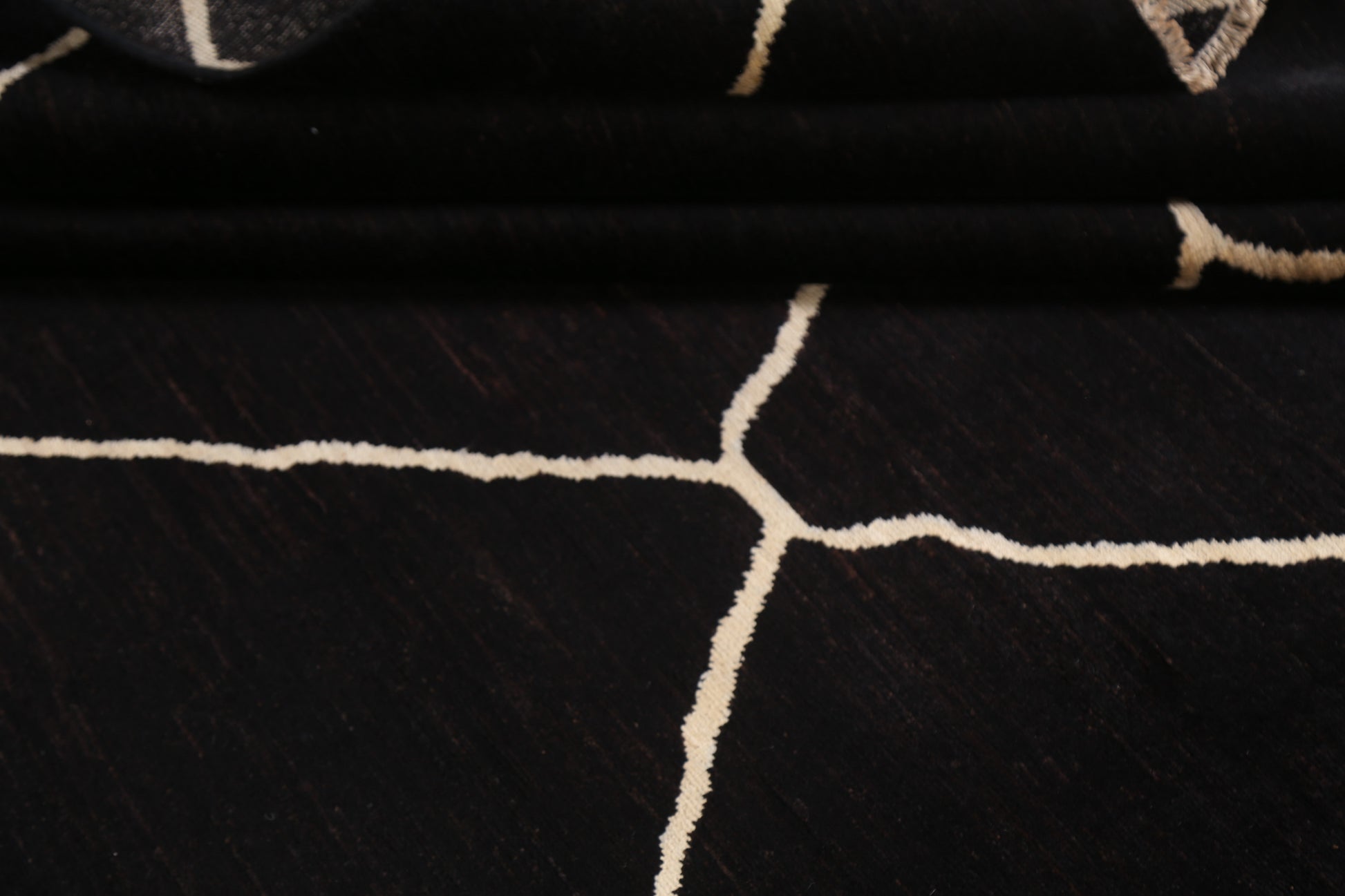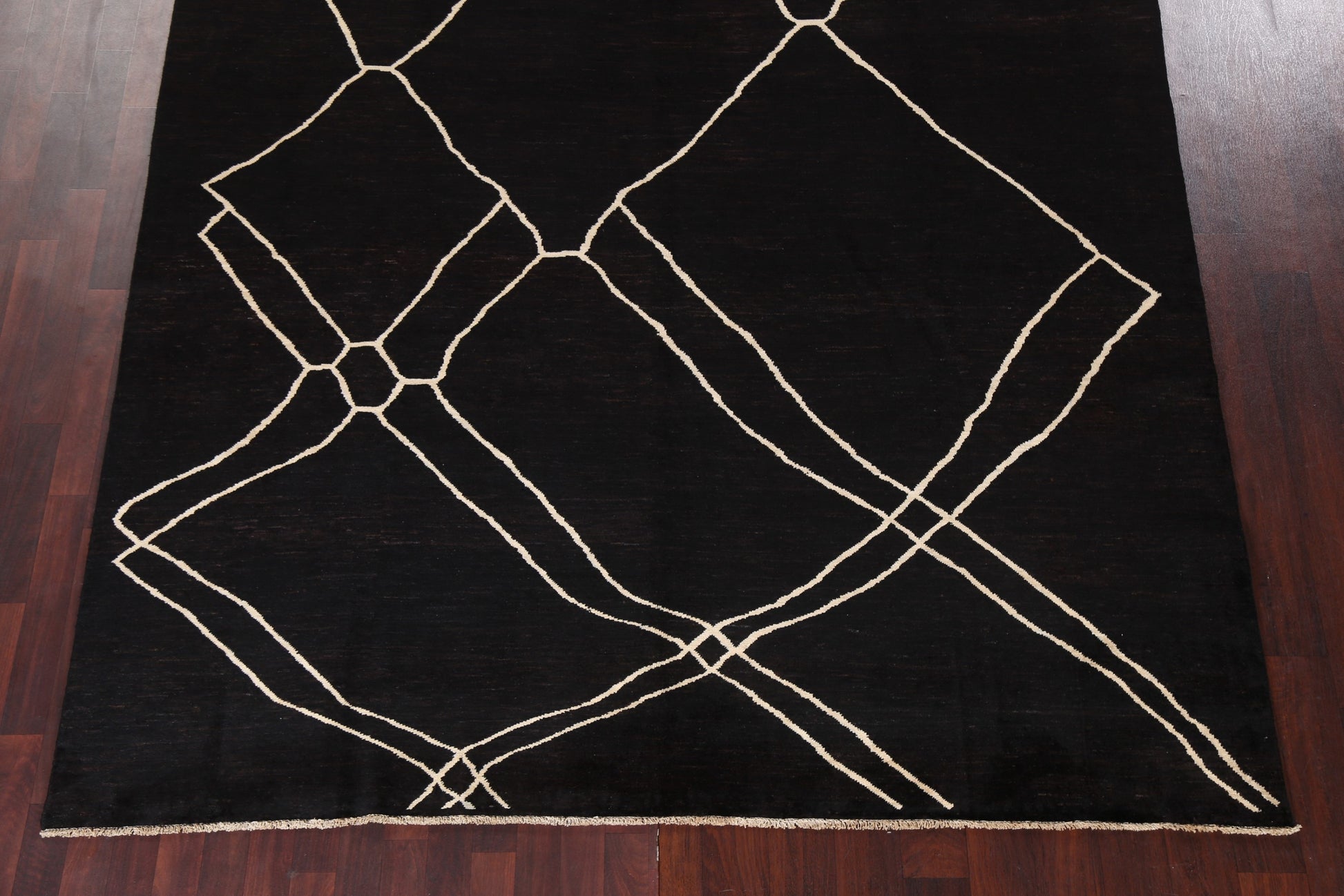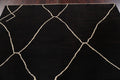 A Beautiful Genuine Pakistan Moroccan rug is Hand Knotted by skillful weavers in Pakistan with 100% Wool Material. This rug is in New, First Quality condition. dimensions are 9' 8'' X 7' 10'' in foot and 295 X 239 in centimeter. the primary color is Black.