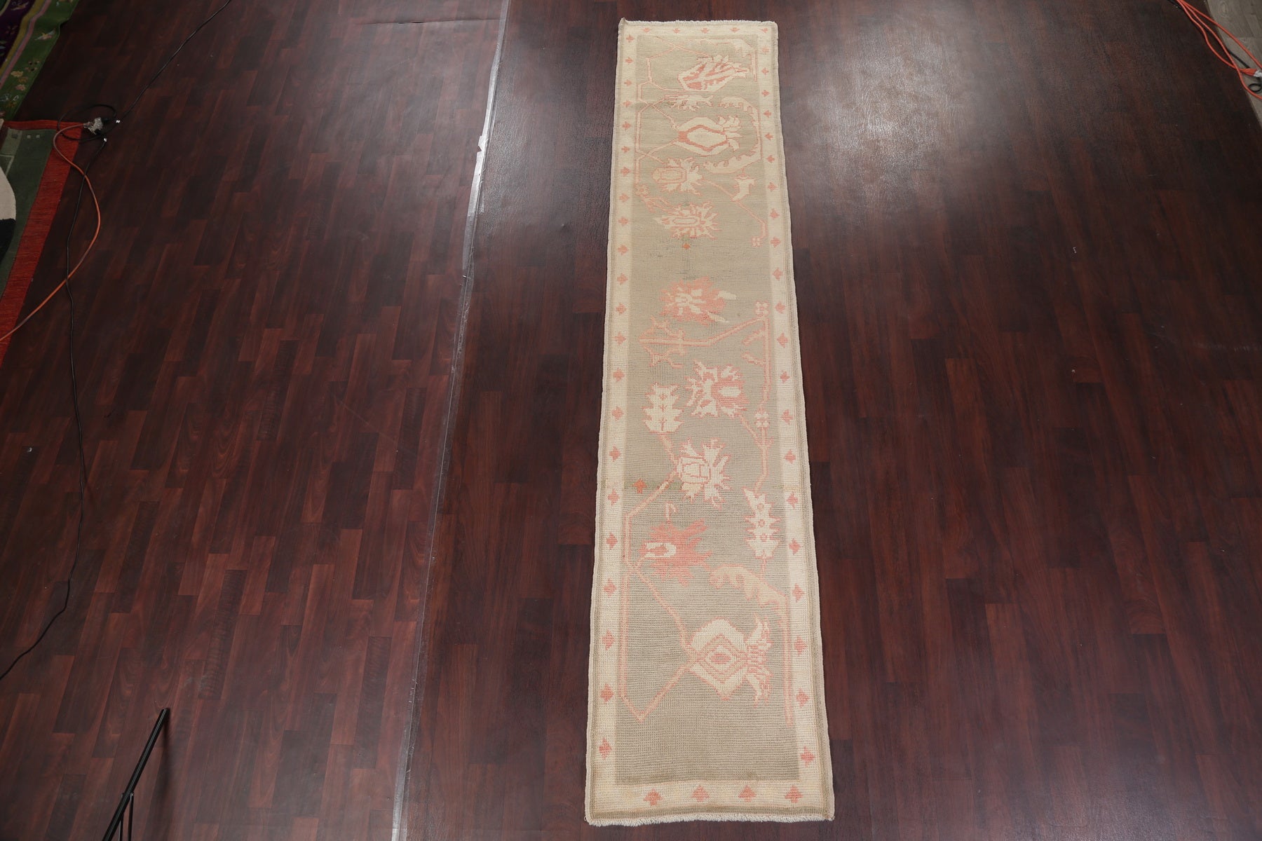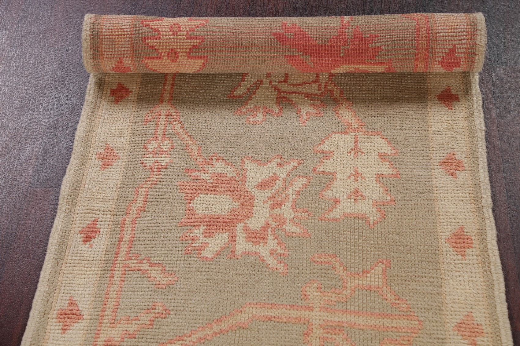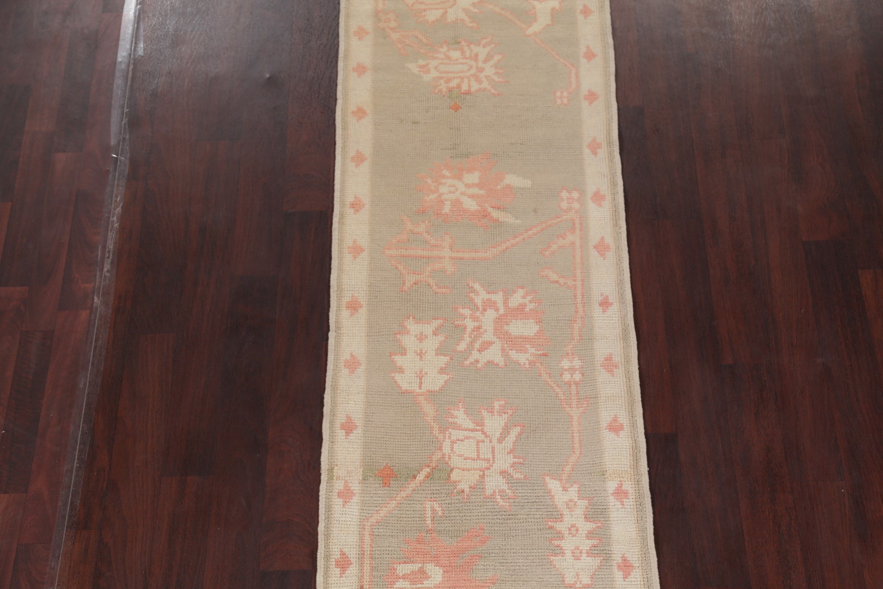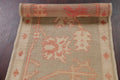 Vegetable Dye Muted All-Over Green Oushak Turkish Hand-Knotted Runner Rug 3x12