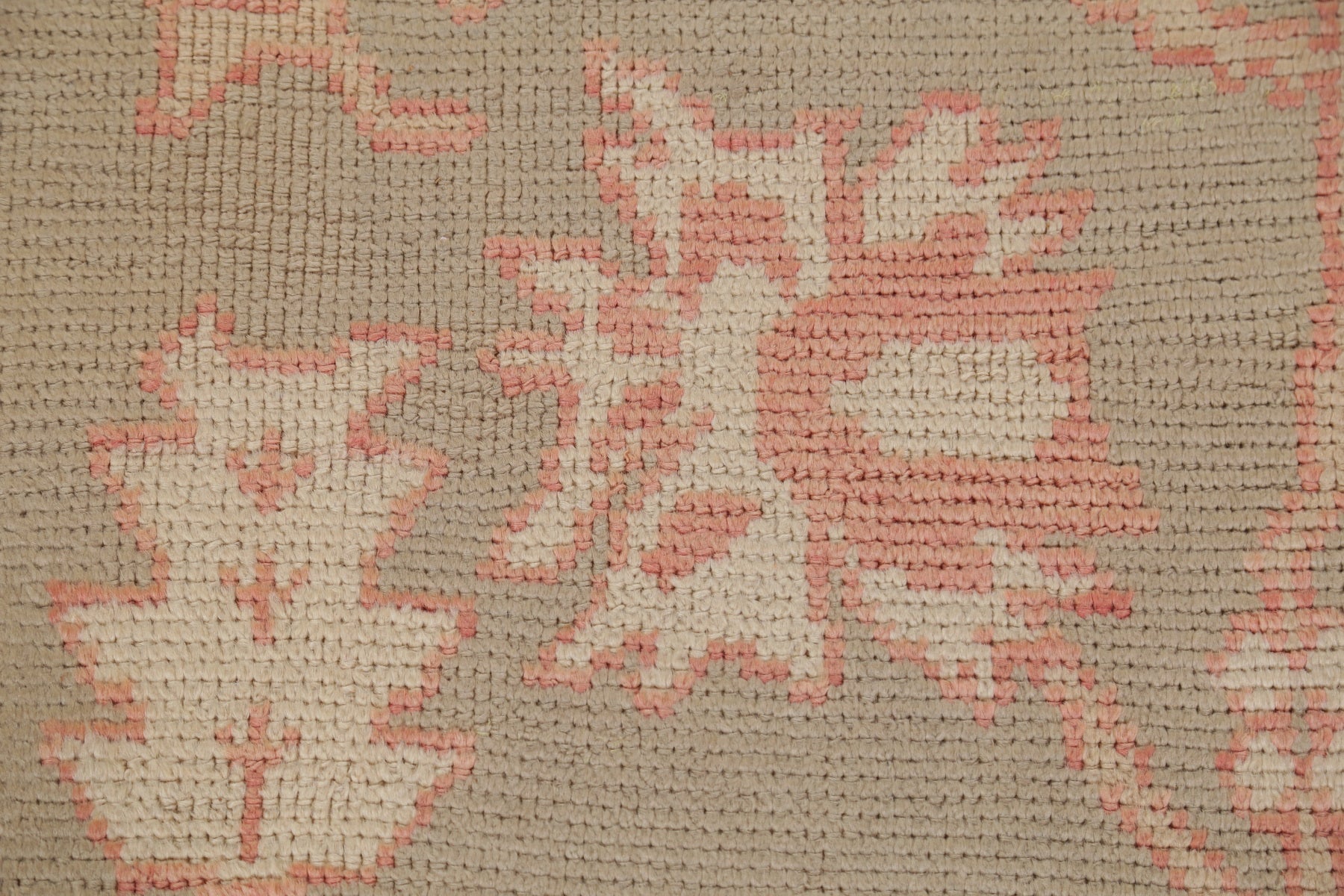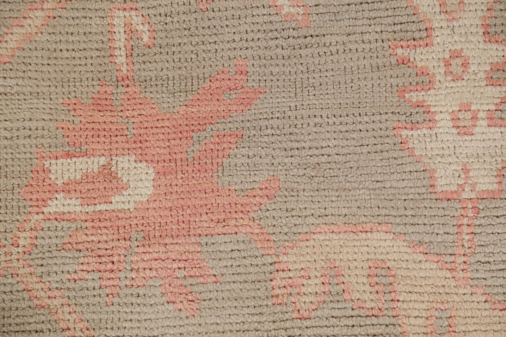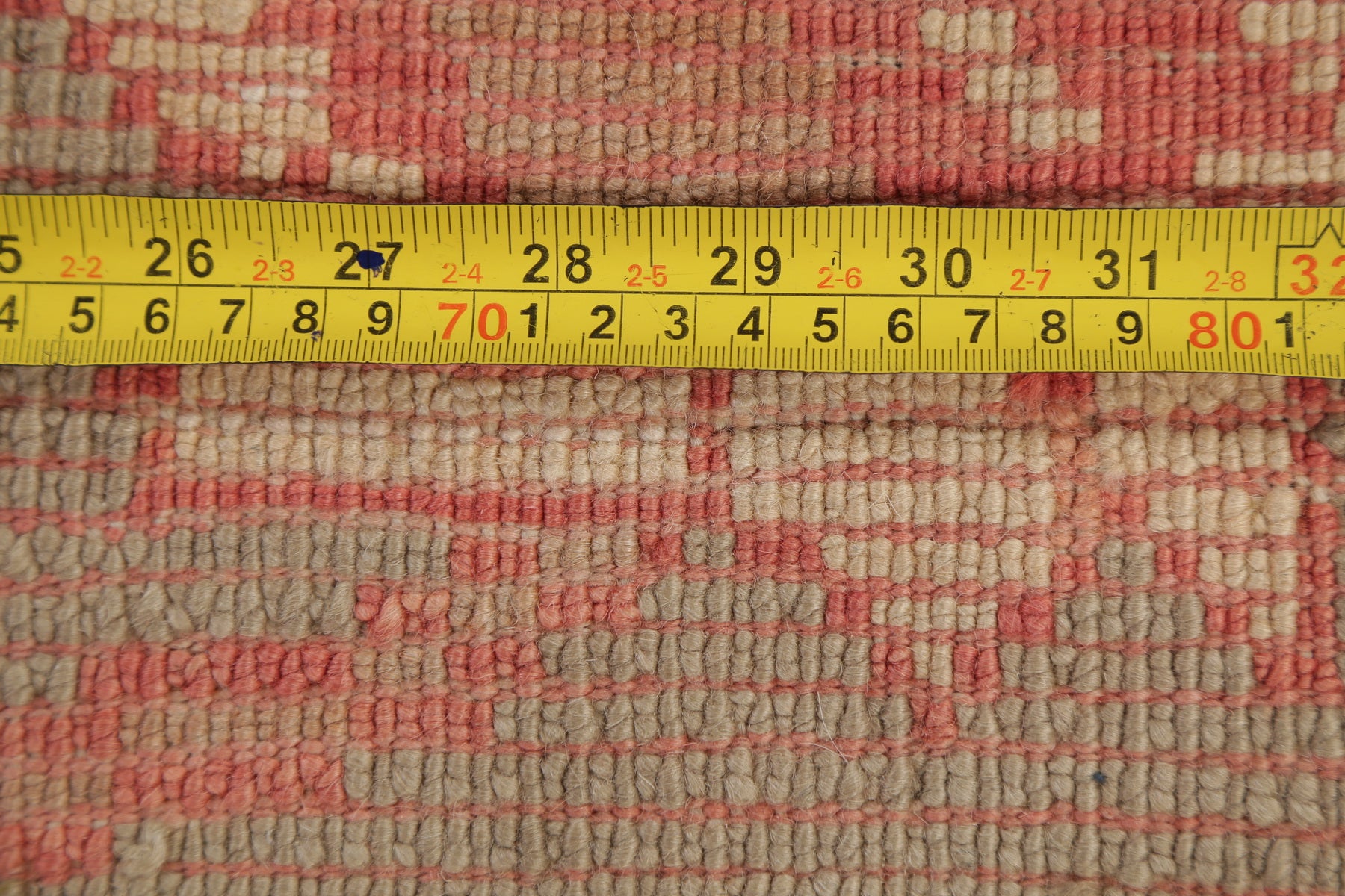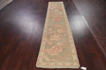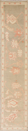 Vegetable Dye Muted All-Over Green Oushak Turkish Hand-Knotted Runner Rug 3x12