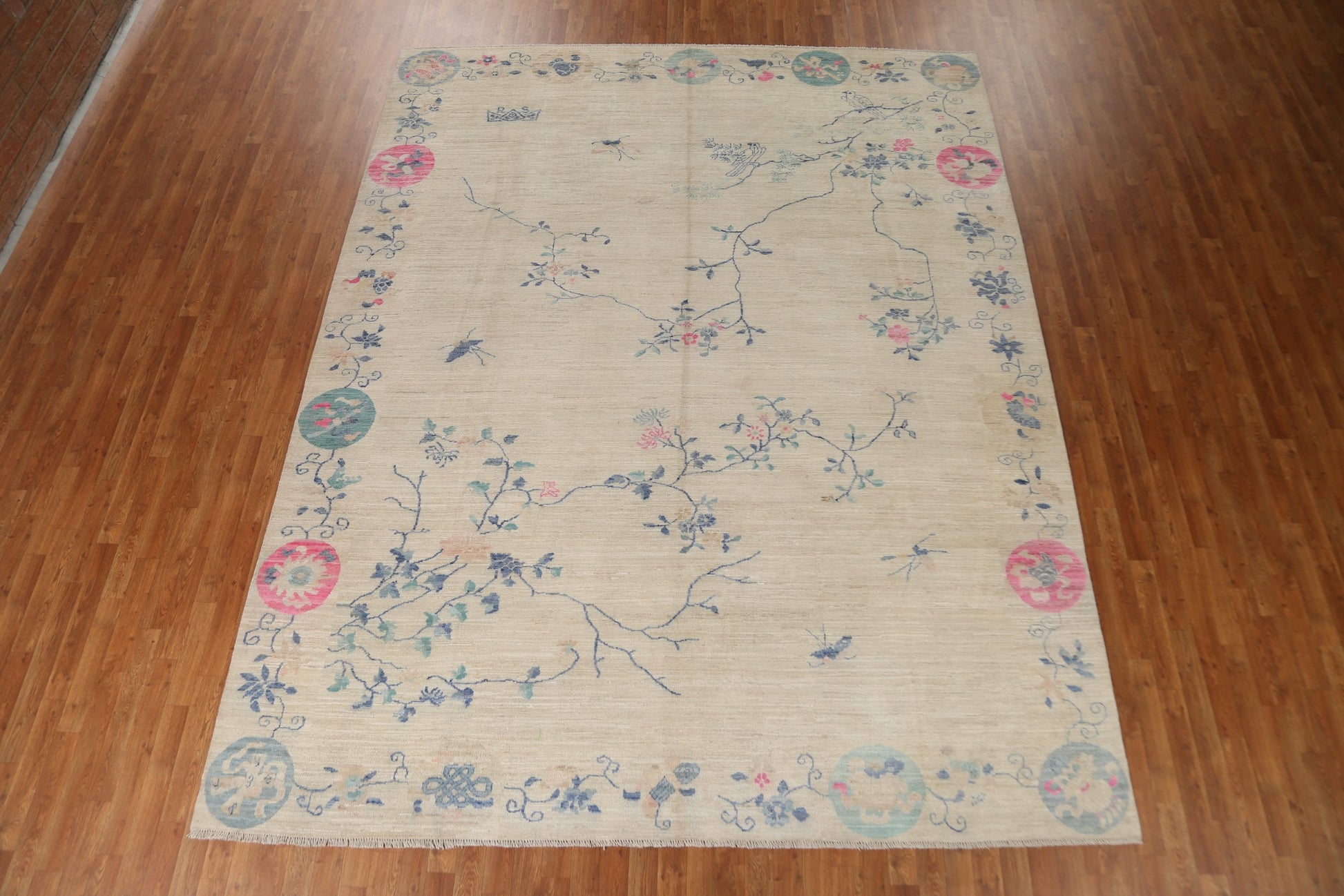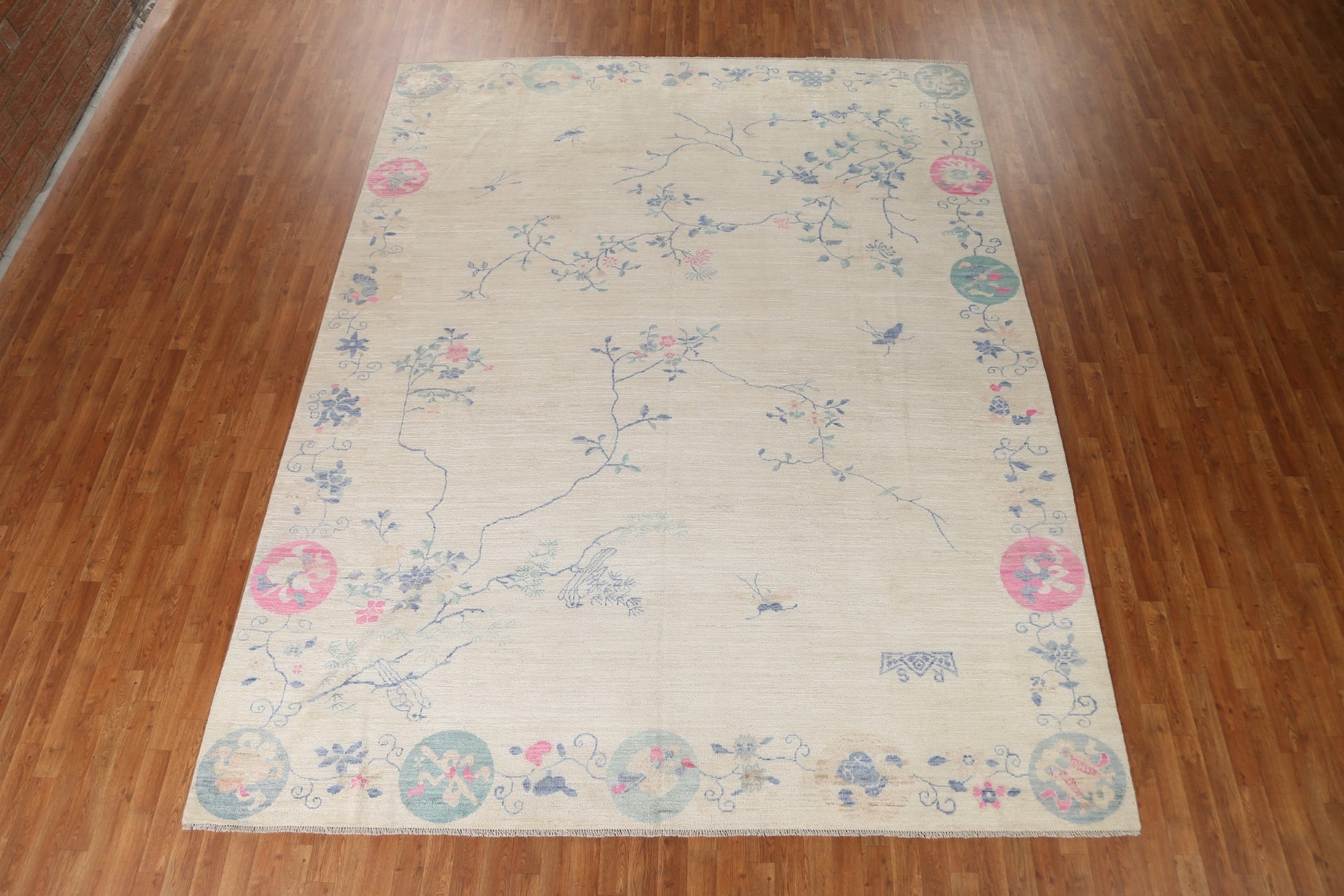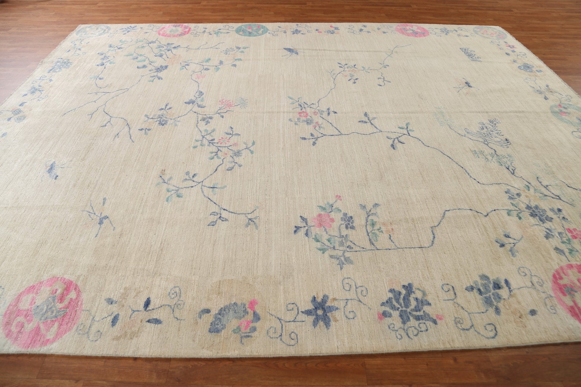 A Beautiful Genuine China Art Deco rug is Hand Knotted by skillful weavers in China with 100% Wool Material. This rug is in New, First Quality condition. dimensions are 11' 9'' X 9' 4'' in foot and 358 X 284 in centimeter. the primary color is Beige & Ivories.