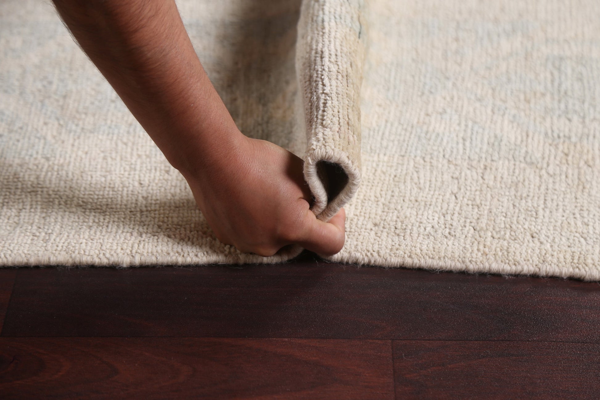 A Beautiful Genuine Turkey Oushak rug is Hand Knotted by skillful weavers in Turkey with 100% Wool Material. This rug is in New, First Quality condition. dimensions are 10' 8'' X 8' 7'' in foot and 325 X 262 in centimeter. the primary color is Beige & Ivories.