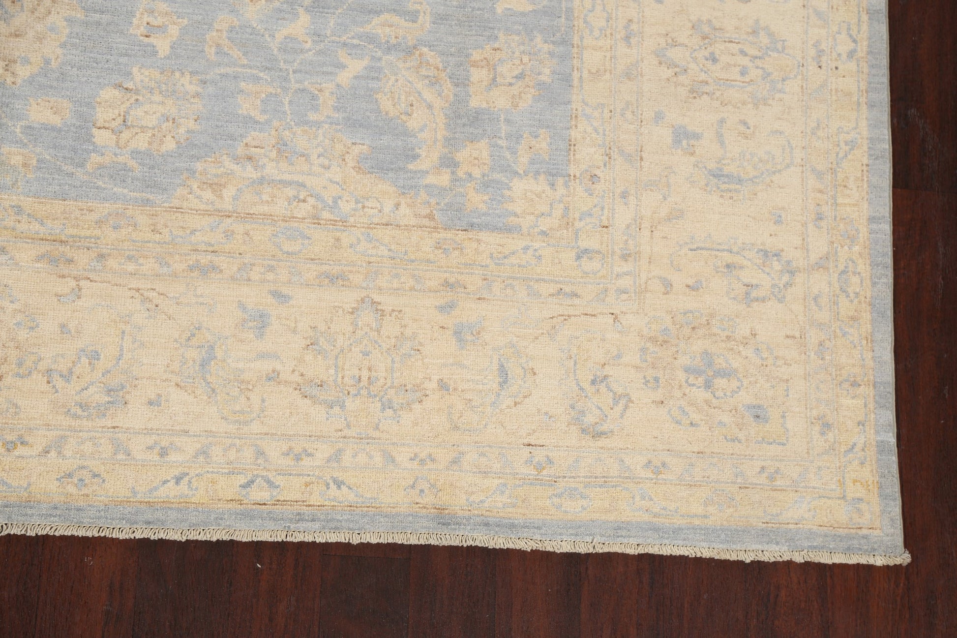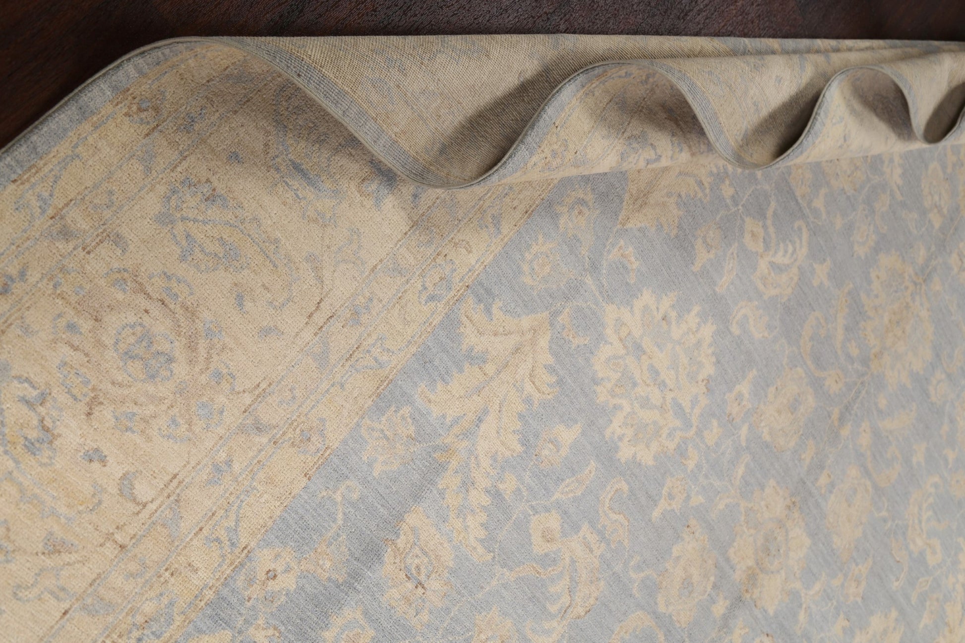 A Beautiful Genuine Pakistan Peshawar-Chobi rug is Hand Knotted by skillful weavers in Pakistan with 100% Wool Material. This rug is in New, First Quality condition. dimensions are 11' 9'' X 8' 10'' in foot and 358 X 269 in centimeter. the primary color is Navy Blue & Blues.