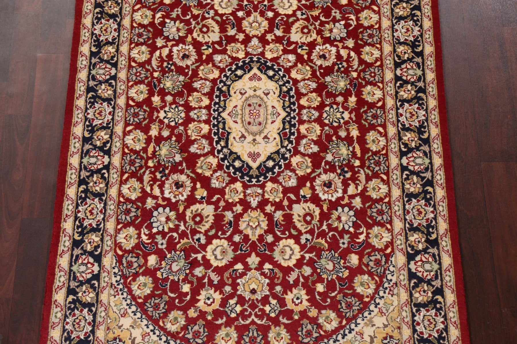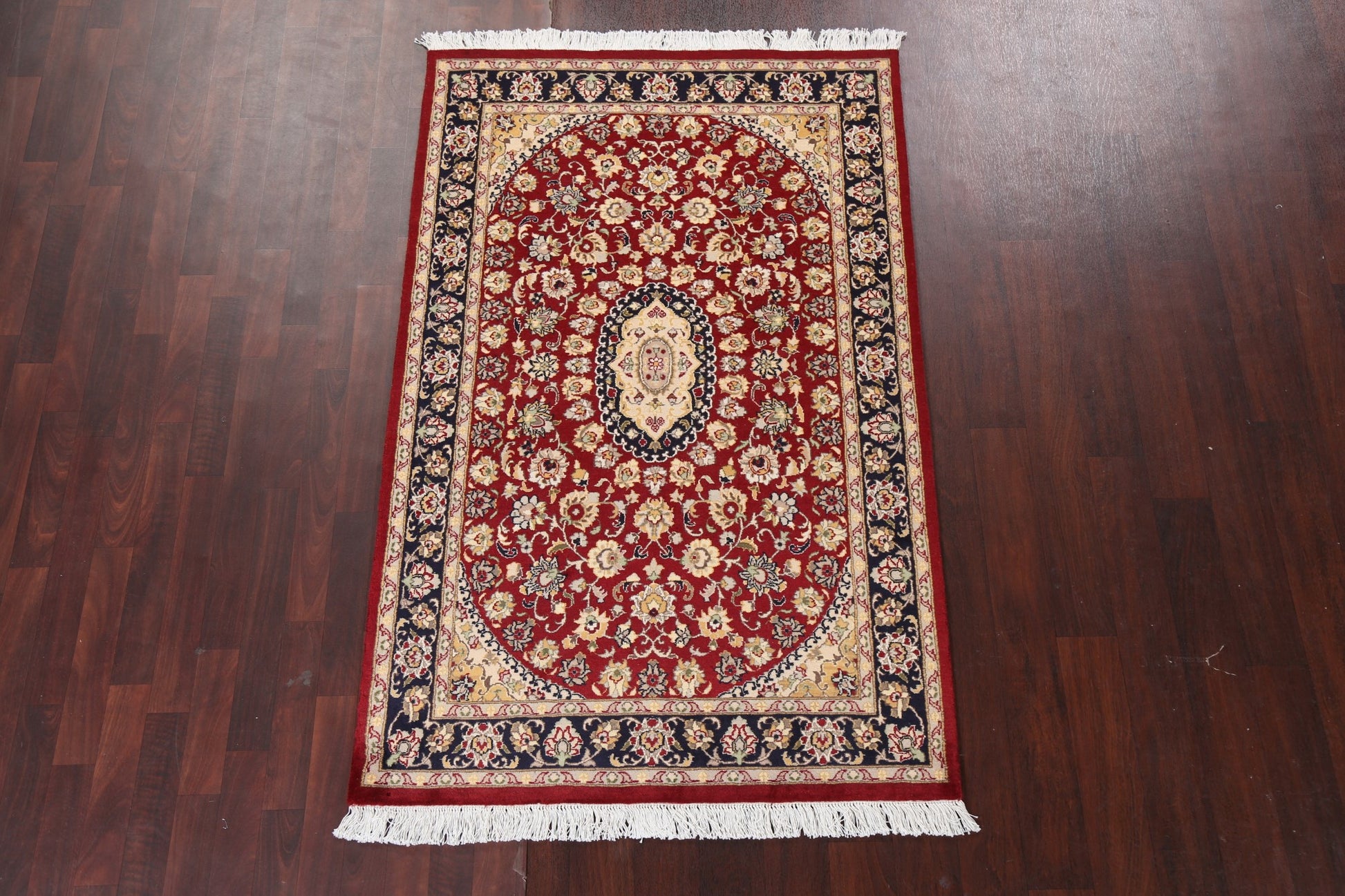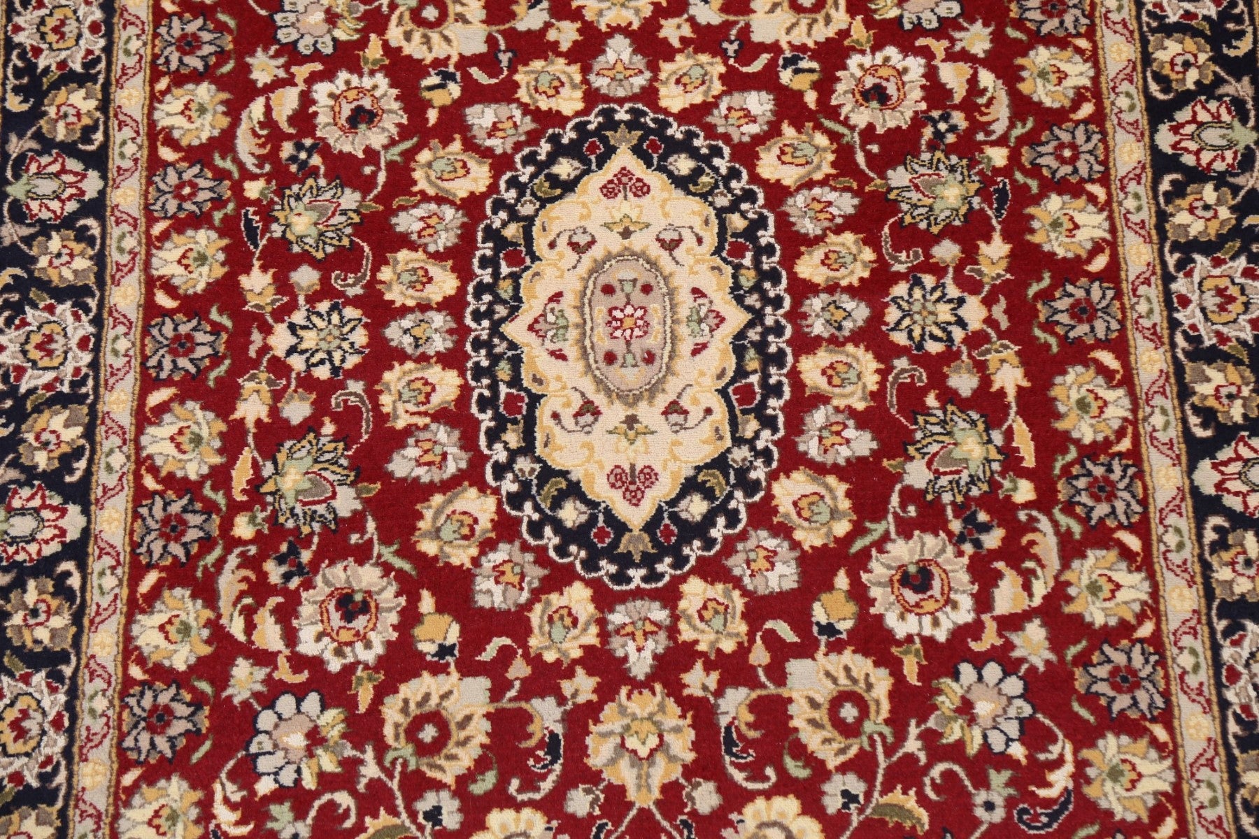 A Beautiful Genuine Pakistan Nain rug is Hand Knotted by skillful weavers in Pakistan with 100% Wool Material. This rug is in New, First Quality condition. dimensions are 6' 4'' X 3' 11'' in foot and 193 X 119 in centimeter. the primary color is Red.