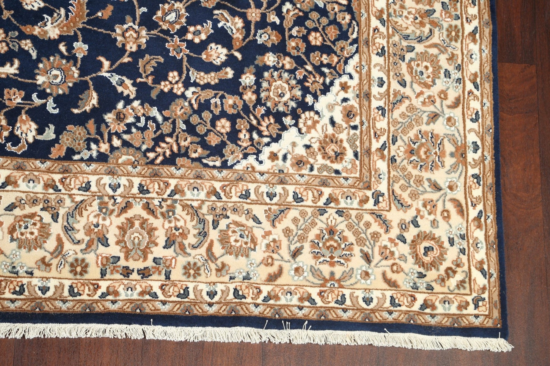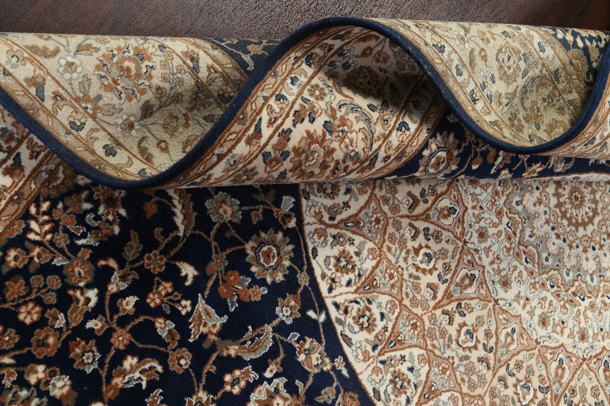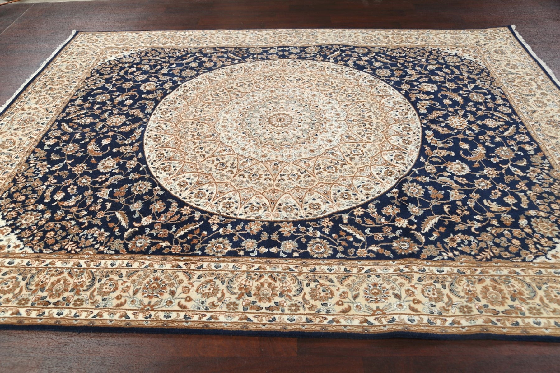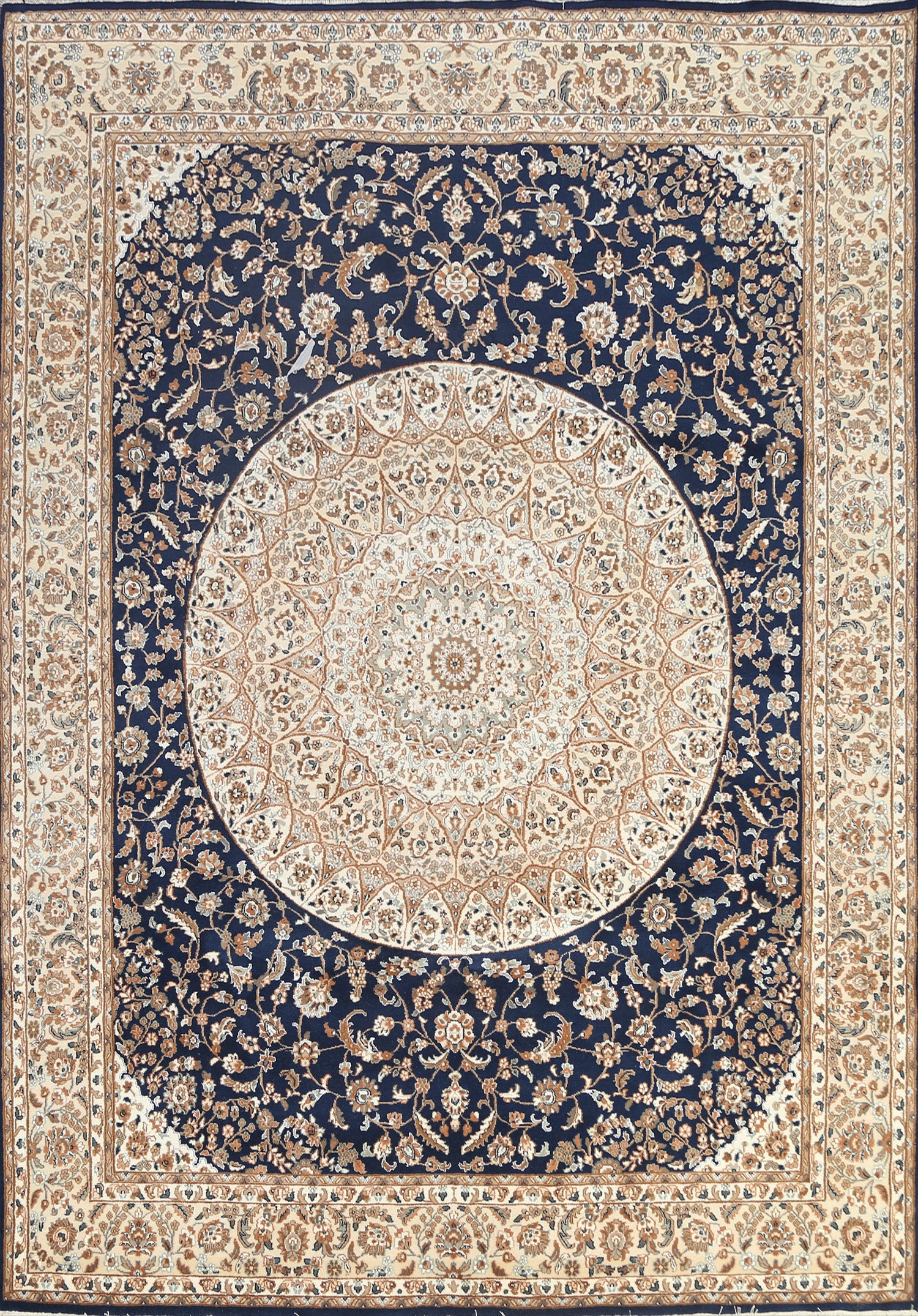 A Beautiful Genuine India Nain rug is Hand Knotted by skillful weavers in India with 100% Wool Material. This rug is in New, First Quality condition. dimensions are 10' 4'' X 8' 1'' in foot and 315 X 246 in centimeter. the primary color is Navy Blue & Blues.