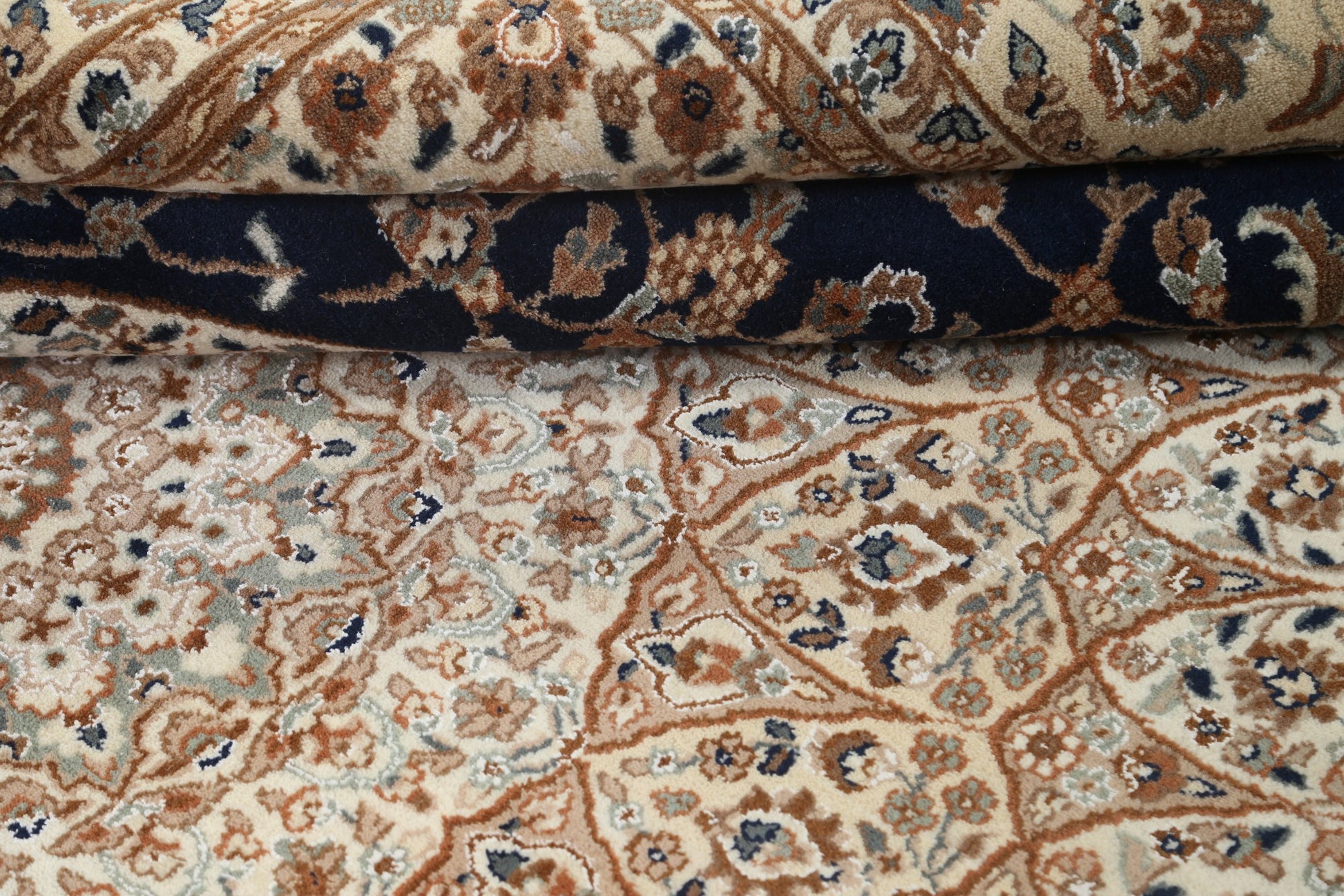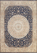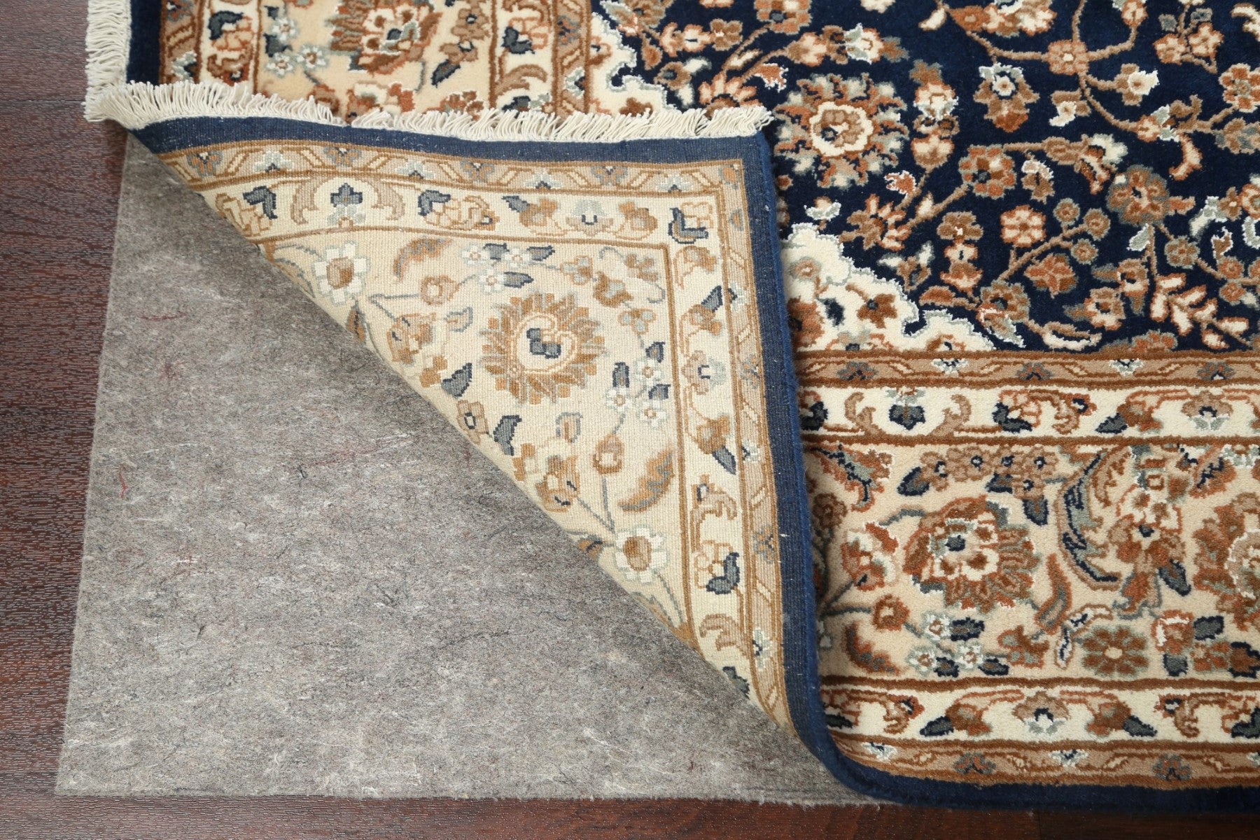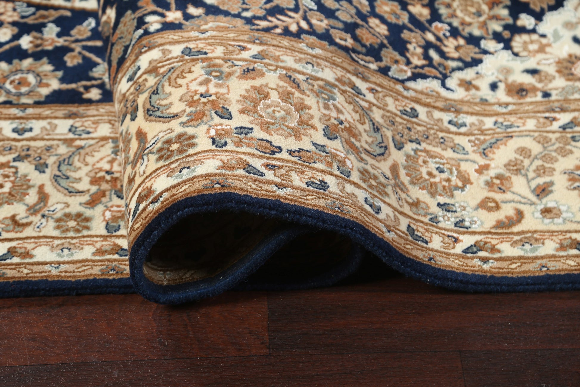 A Beautiful Genuine India Nain rug is Hand Knotted by skillful weavers in India with 100% Wool Material. This rug is in New, First Quality condition. dimensions are 10' 4'' X 8' 1'' in foot and 315 X 246 in centimeter. the primary color is Navy Blue & Blues.