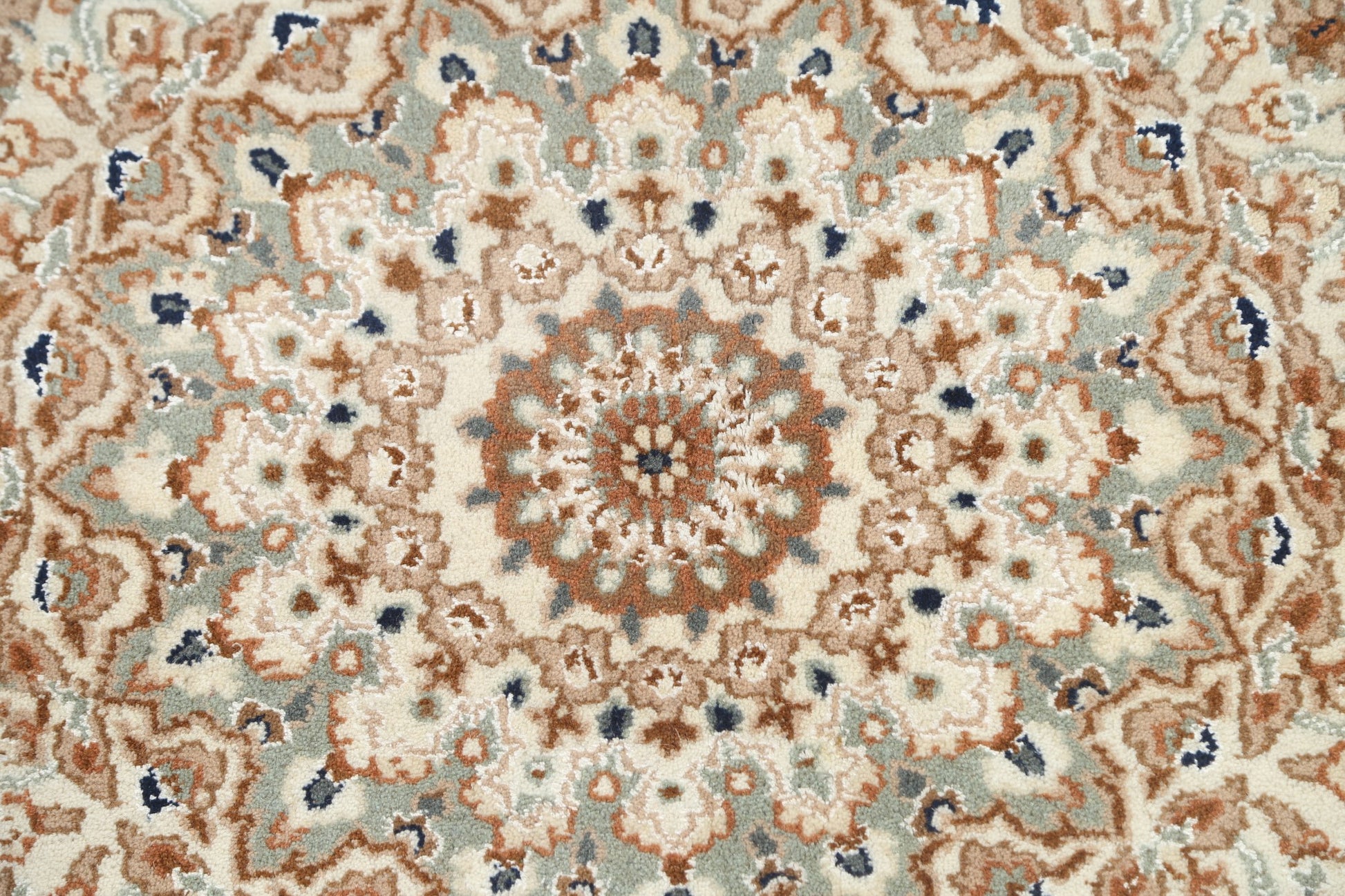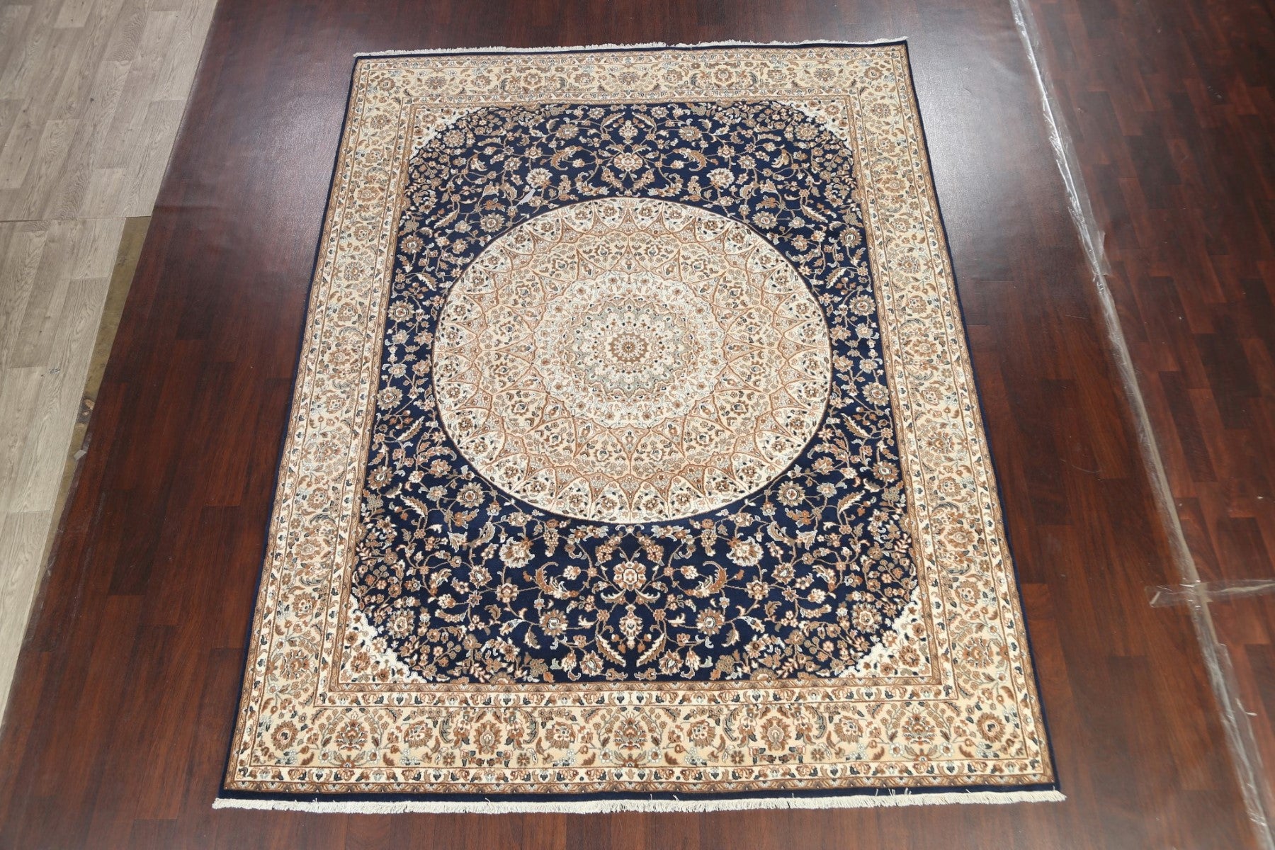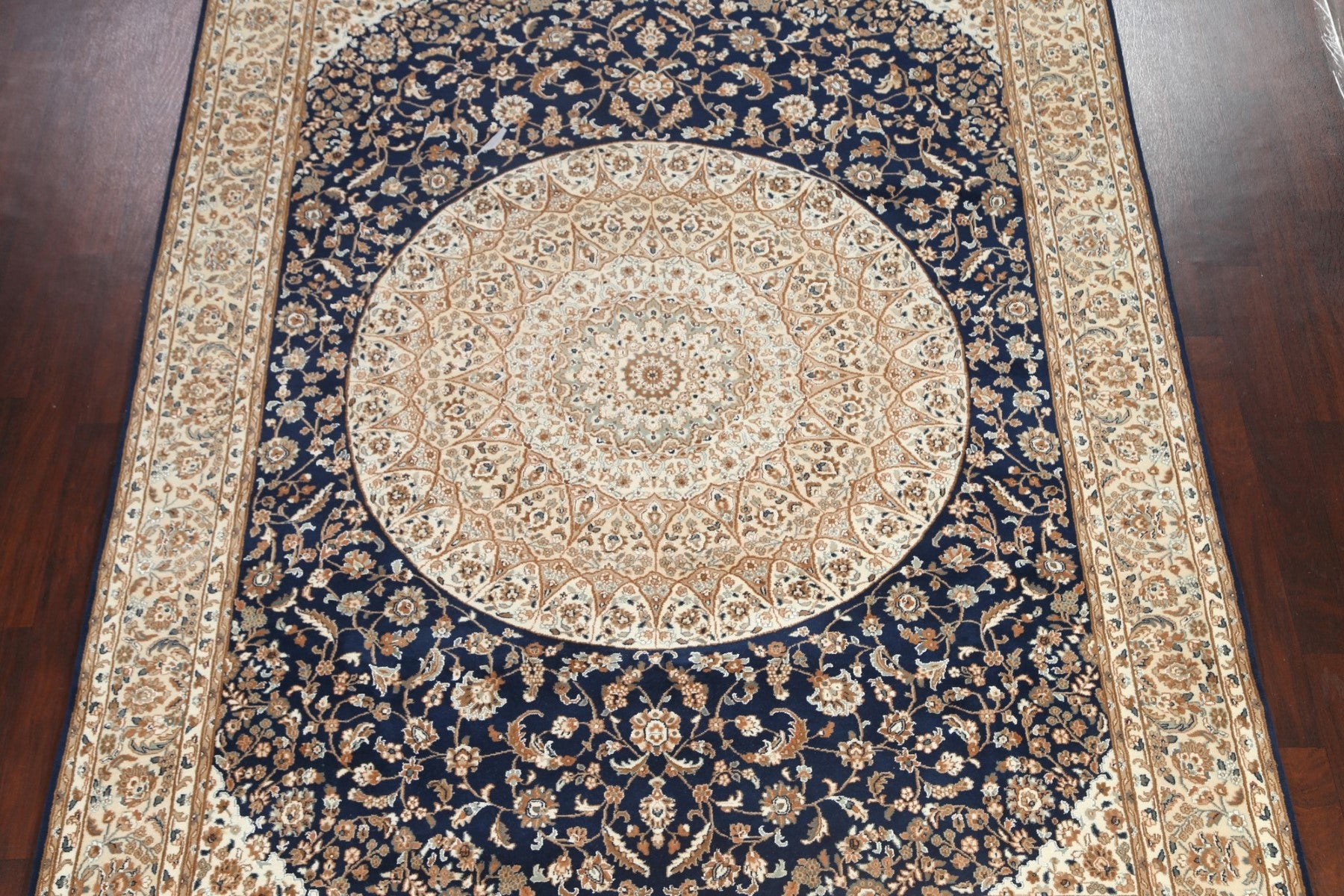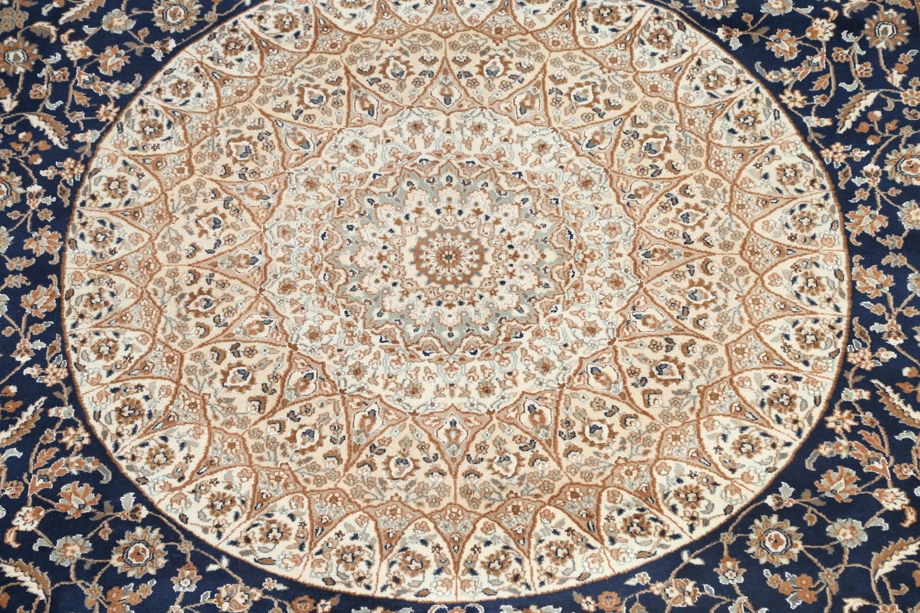 A Beautiful Genuine India Nain rug is Hand Knotted by skillful weavers in India with 100% Wool Material. This rug is in New, First Quality condition. dimensions are 10' 4'' X 8' 1'' in foot and 315 X 246 in centimeter. the primary color is Navy Blue & Blues.