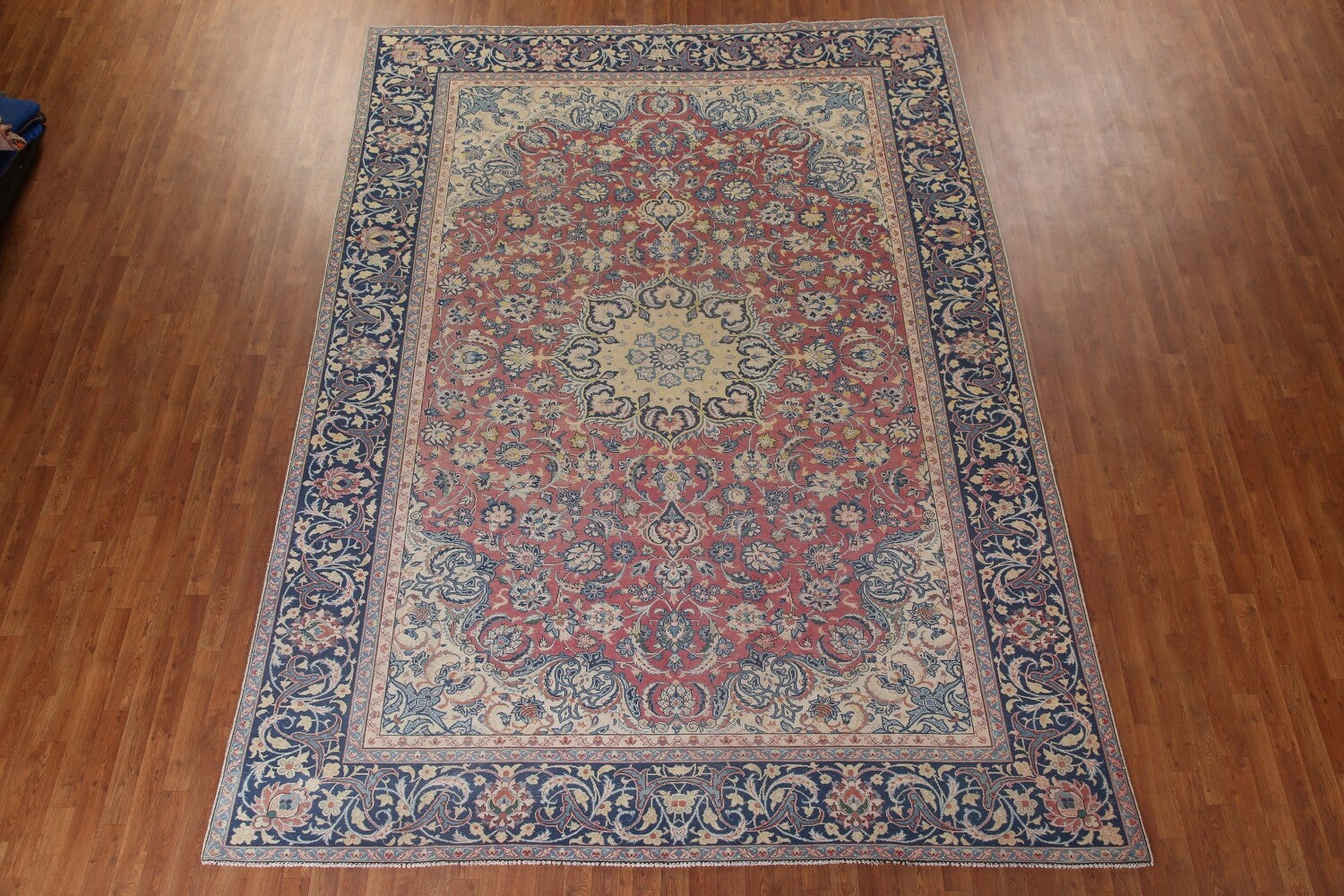 A Beautiful Genuine Persia ( Persia ) Najafabad rug is Hand Knotted by skillful weavers in Persia ( Persia ) with 100% Wool Material. This rug is in Very Good (Evenly Low Pile) condition. dimensions are 12' 5'' X 9' 0'' in foot and 378 X 274 in centimeter. the primary color is Pink.