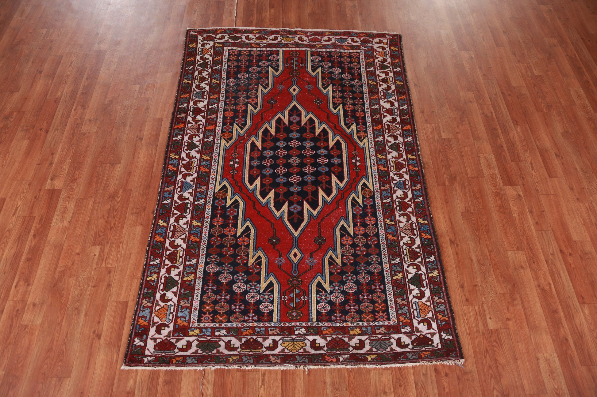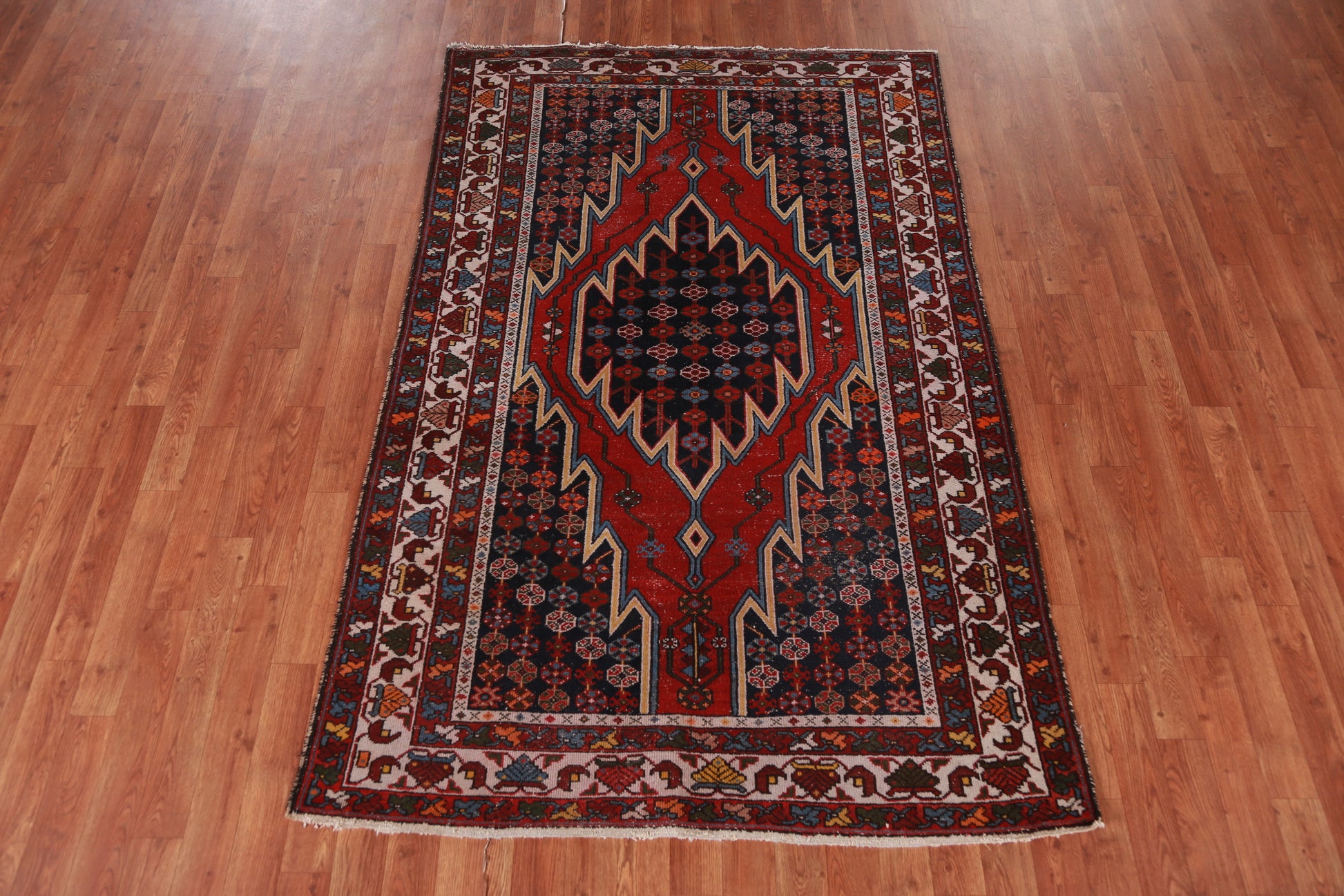 Vegetable Dye Navy Blue & Red Hamedan Persian Rug 4x7