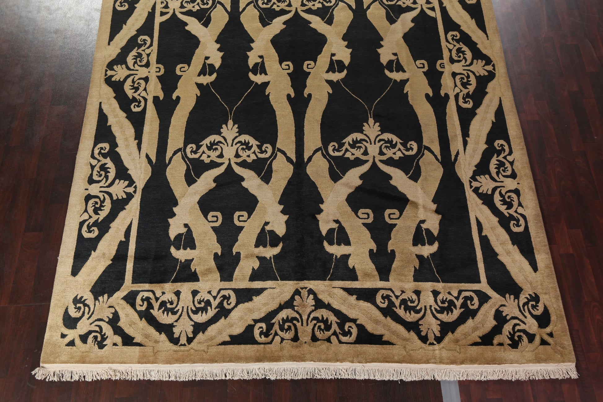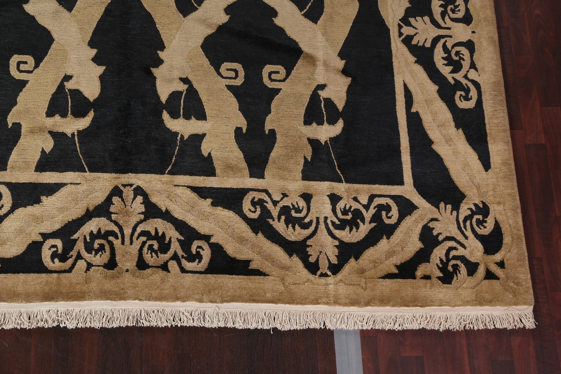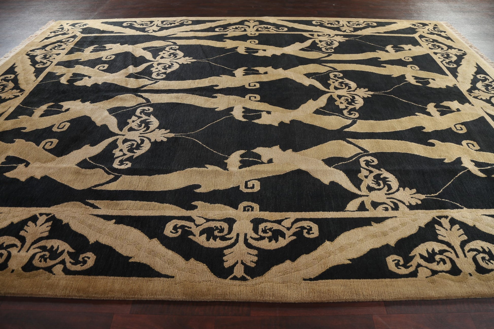 A Beautiful Genuine Nepal Nepalese rug is Hand Knotted by skillful weavers in Nepal with 100% Wool Material. This rug is in New, First Quality condition. dimensions are 13' 8'' X 9' 11'' in foot and 417 X 302 in centimeter. the primary color is Black.