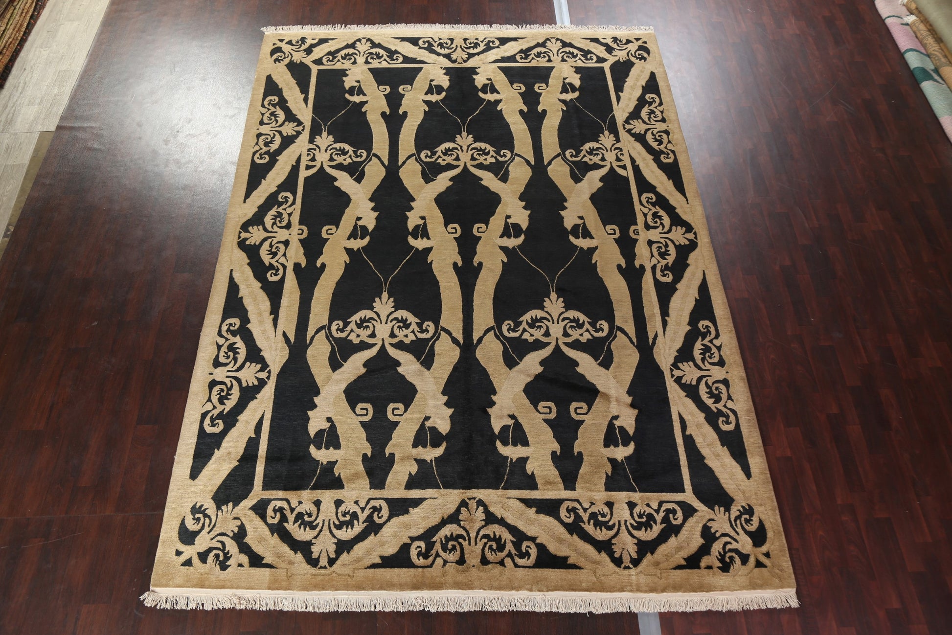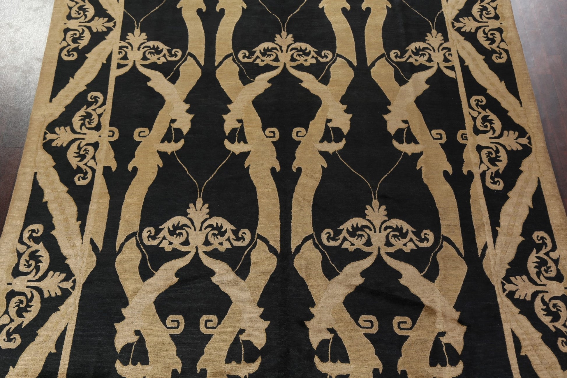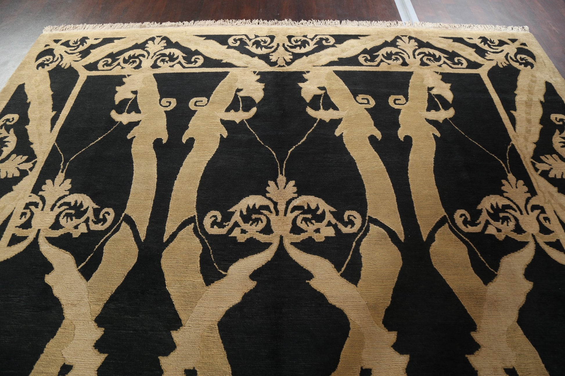 A Beautiful Genuine Nepal Nepalese rug is Hand Knotted by skillful weavers in Nepal with 100% Wool Material. This rug is in New, First Quality condition. dimensions are 13' 8'' X 9' 11'' in foot and 417 X 302 in centimeter. the primary color is Black.