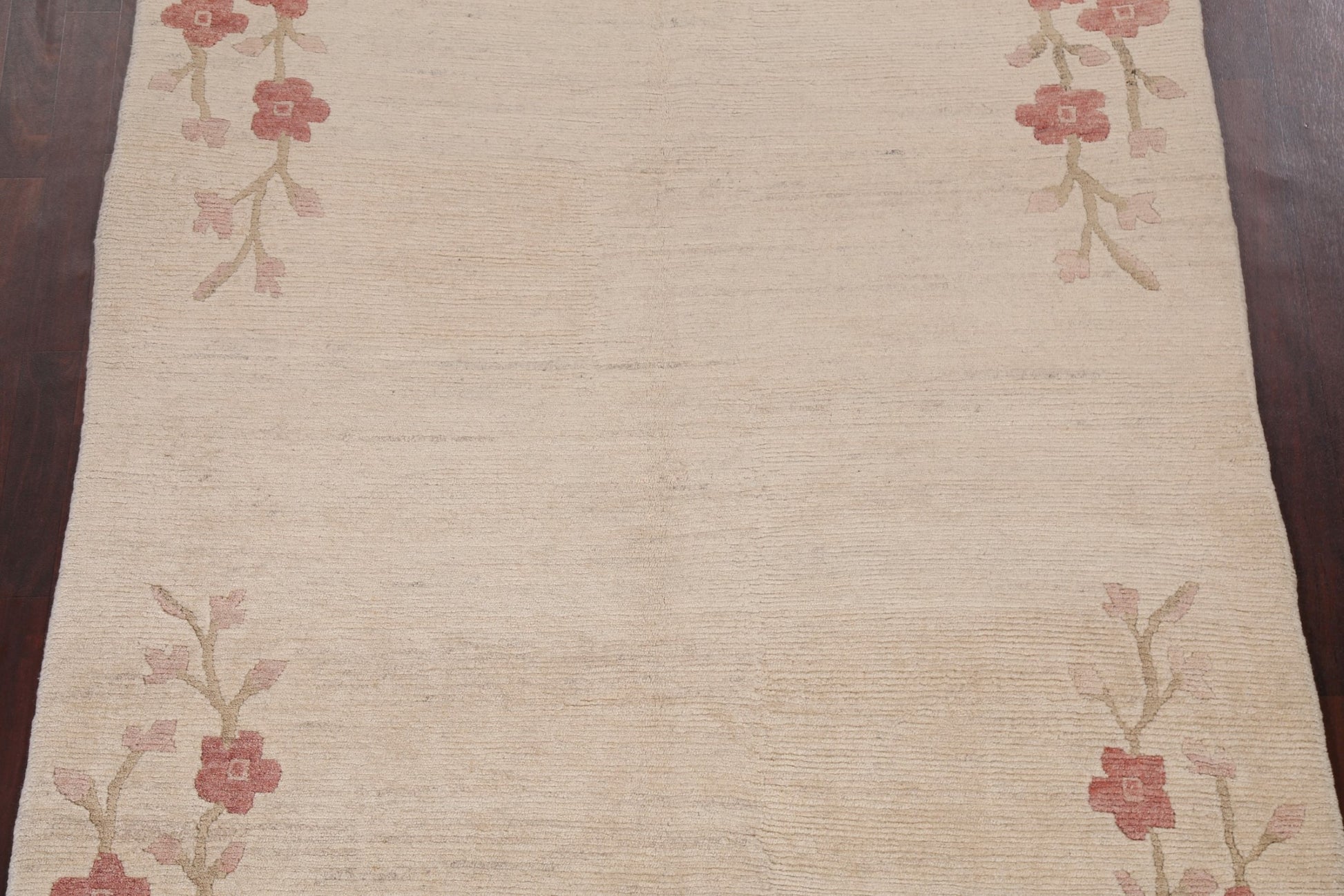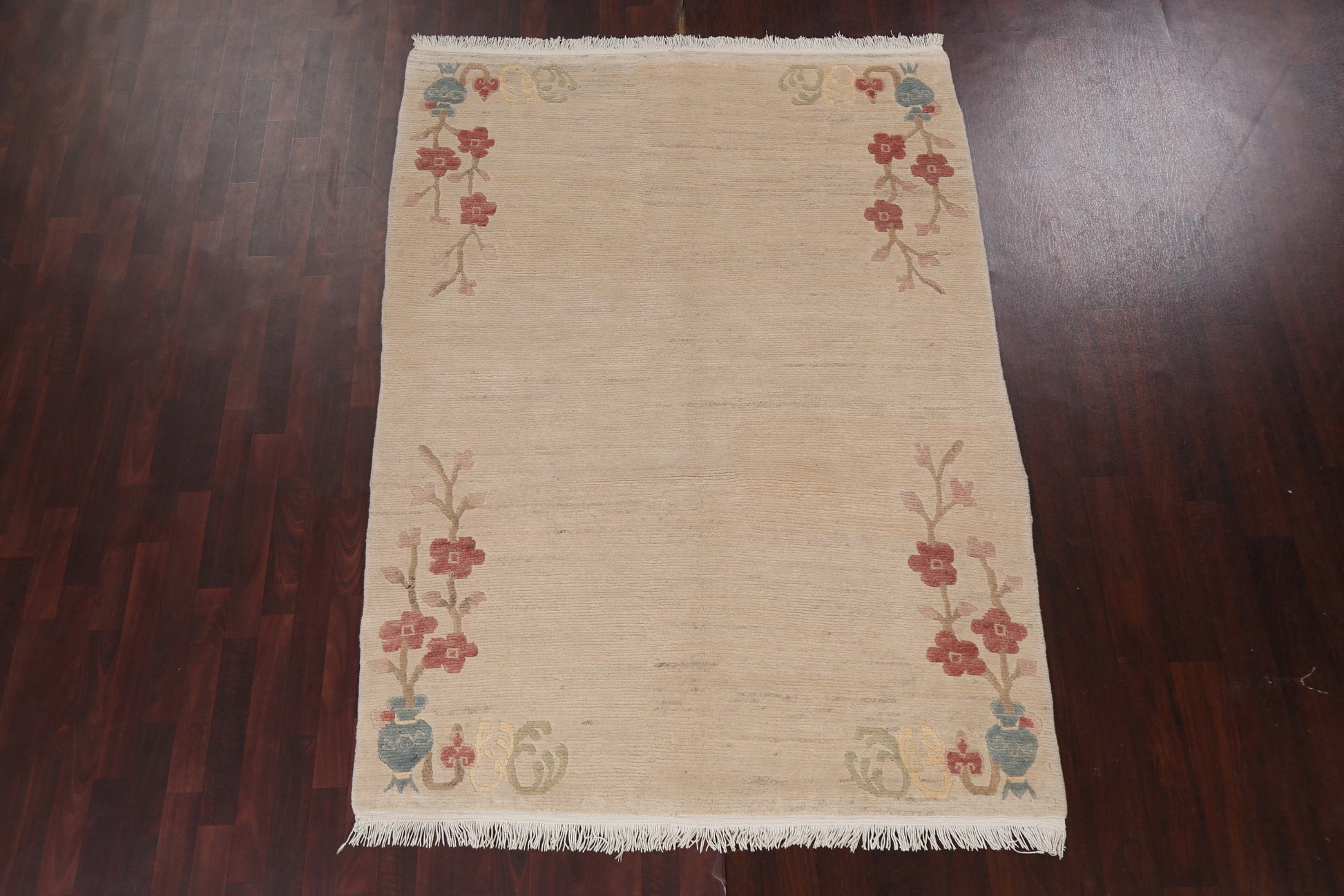 A Beautiful Genuine Nepal Nepalese rug is Hand Knotted by skillful weavers in Nepal with 100% Wool Material. This rug is in New, First Quality condition. dimensions are 7' 7'' X 5' 6'' in foot and 231 X 168 in centimeter. the primary color is Beige & Ivories.