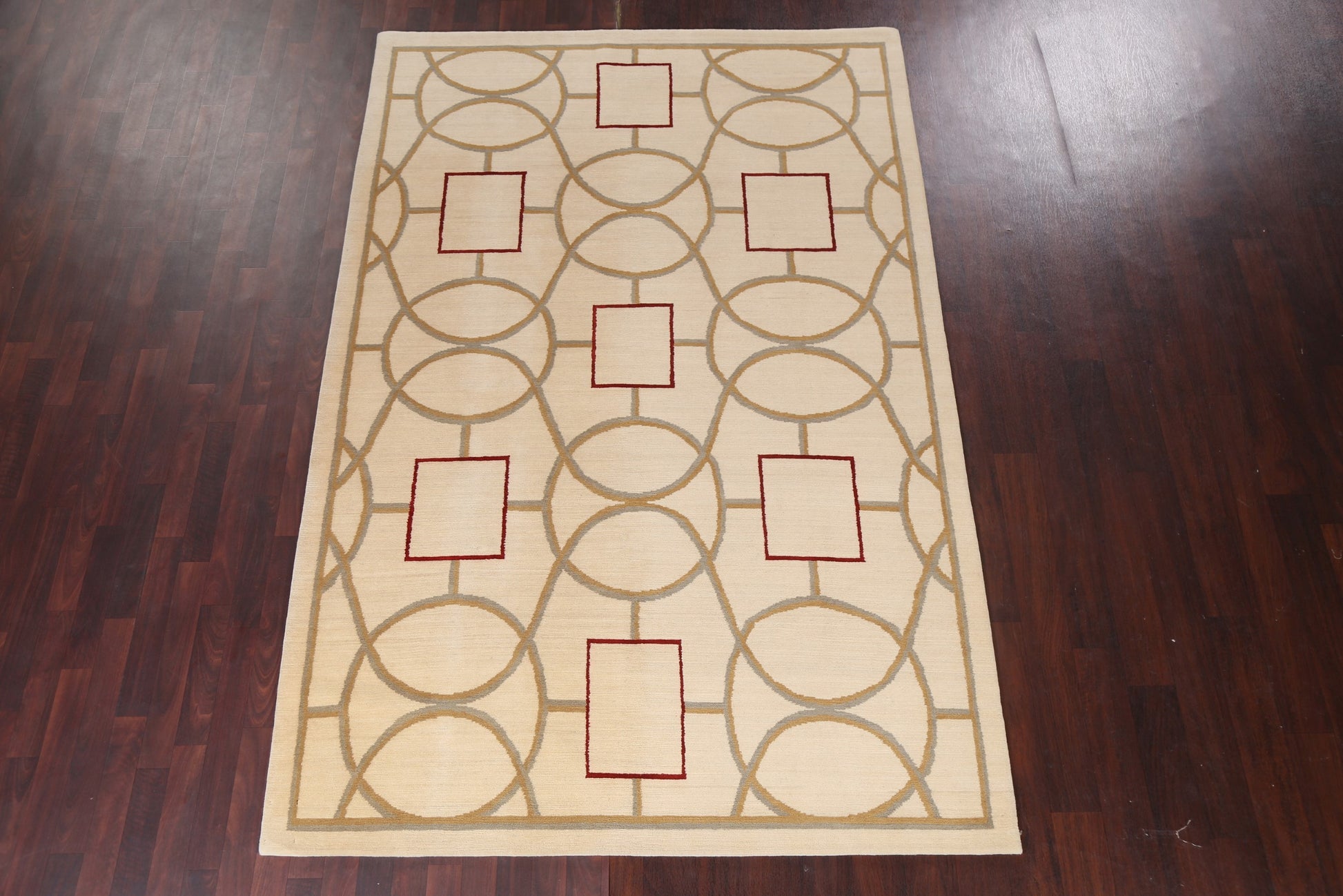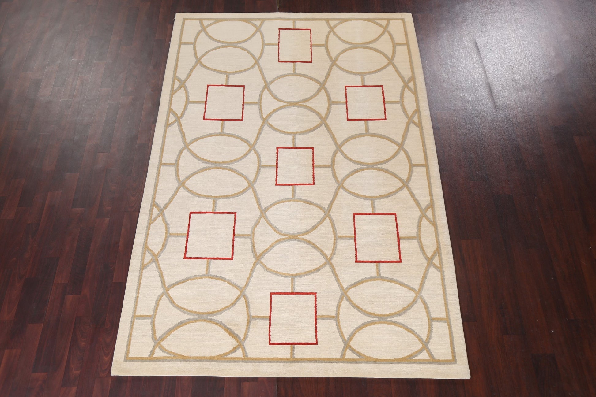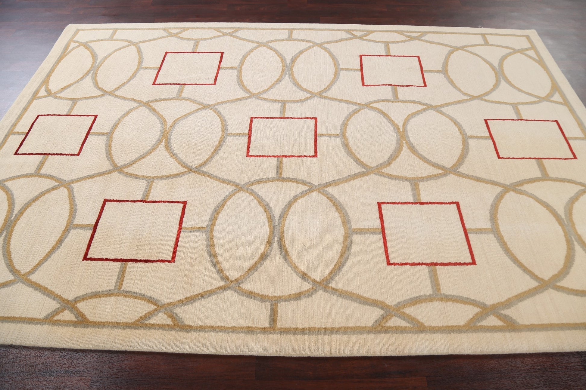 A Beautiful Genuine Nepal Nepalese rug is Hand Knotted by skillful weavers in Nepal with 100% Wool Material. This rug is in New, First Quality condition. dimensions are 9' 3'' X 6' 2'' in foot and 282 X 188 in centimeter. the primary color is Beige & Ivories.