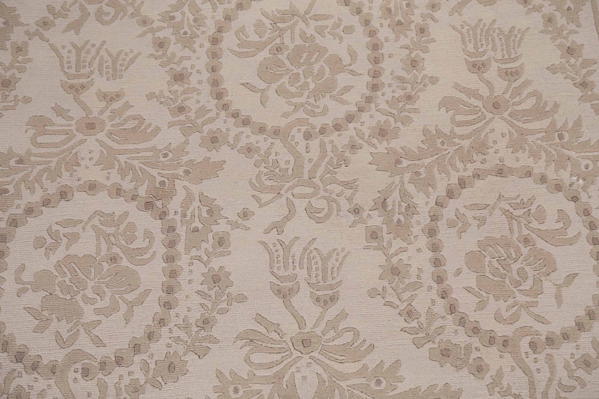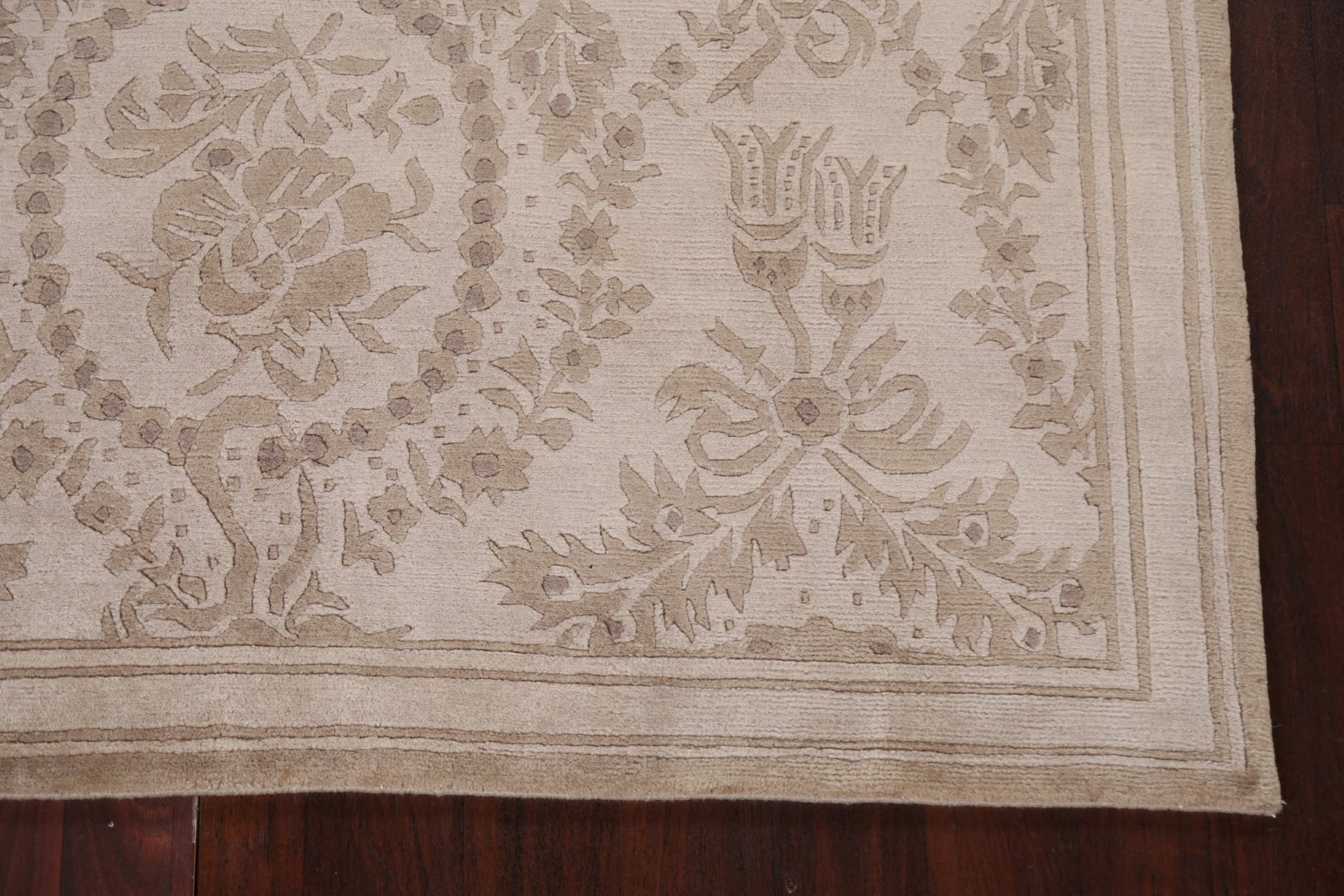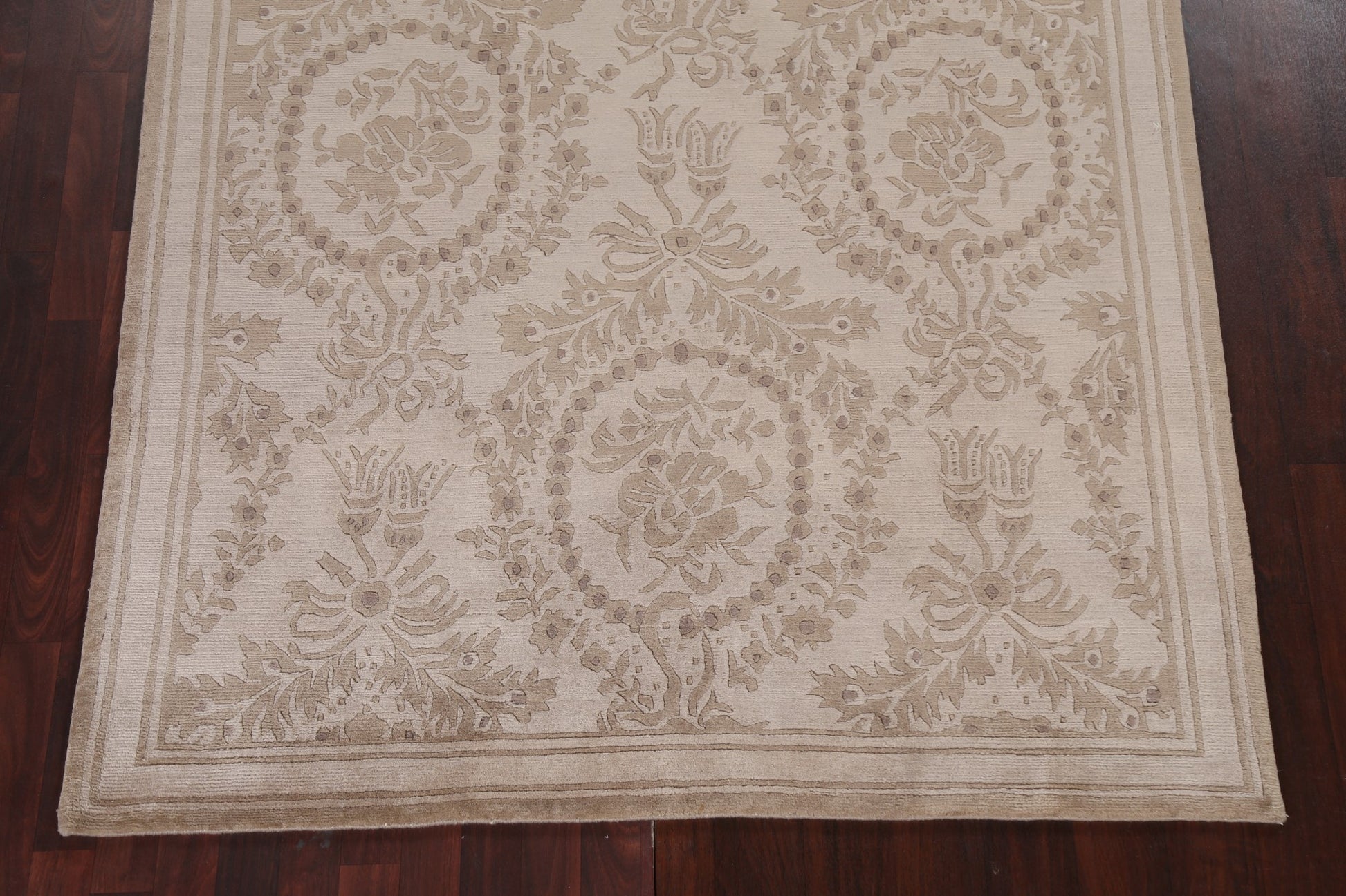A Beautiful Genuine India Nepalese rug is Hand Knotted by skillful weavers in India with 100% Wool Material. This rug is in New, First Quality condition. dimensions are 8' 6'' X 5' 8'' in foot and 259 X 173 in centimeter. the primary color is Beige & Ivories.