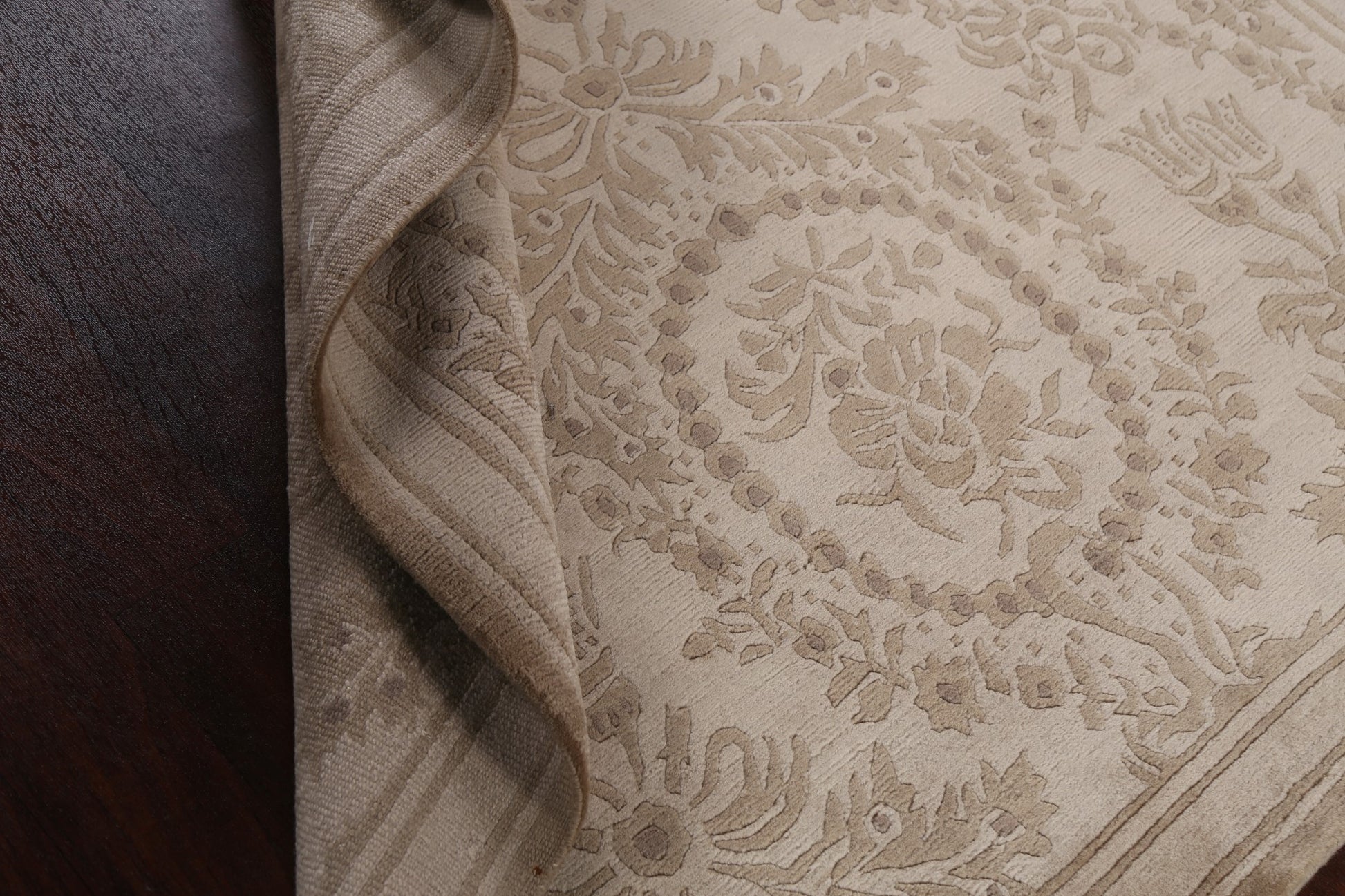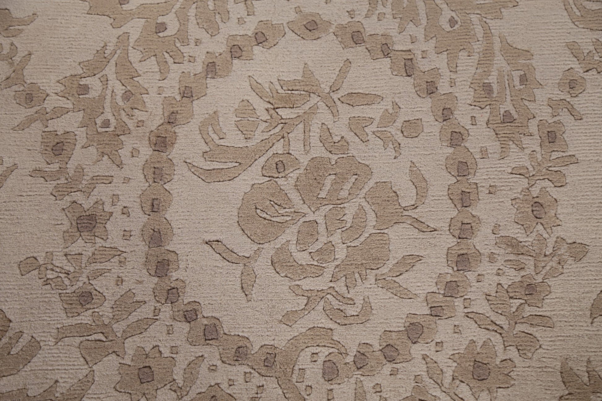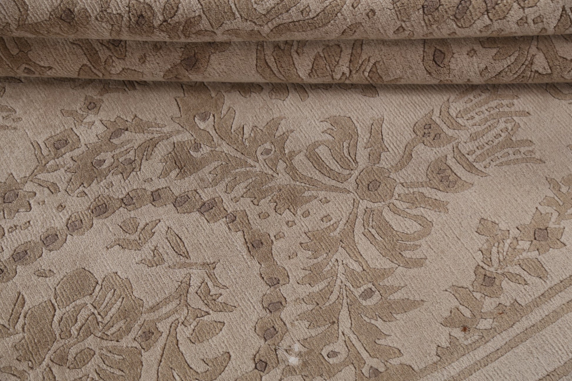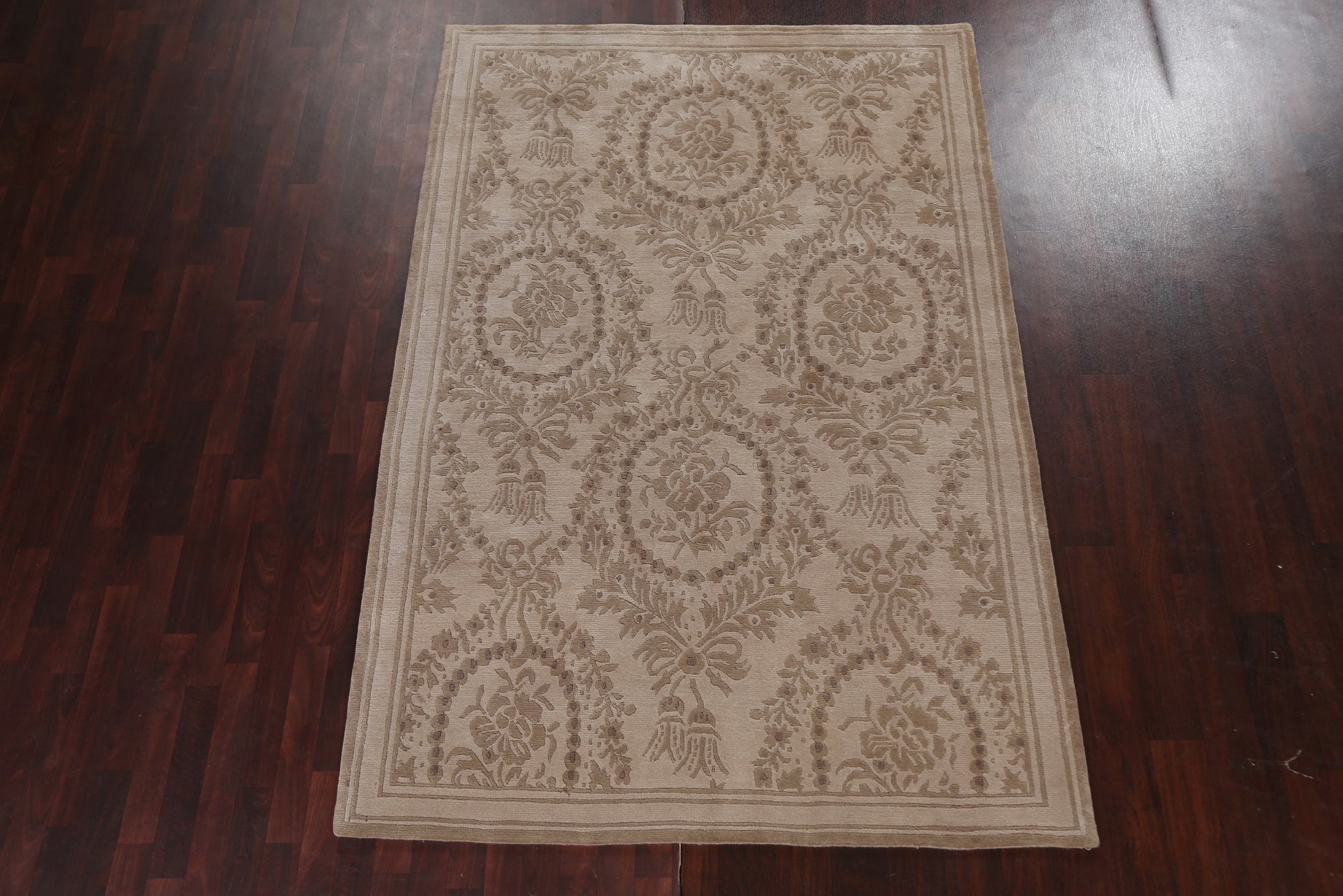 A Beautiful Genuine India Nepalese rug is Hand Knotted by skillful weavers in India with 100% Wool Material. This rug is in New, First Quality condition. dimensions are 8' 6'' X 5' 8'' in foot and 259 X 173 in centimeter. the primary color is Beige & Ivories.