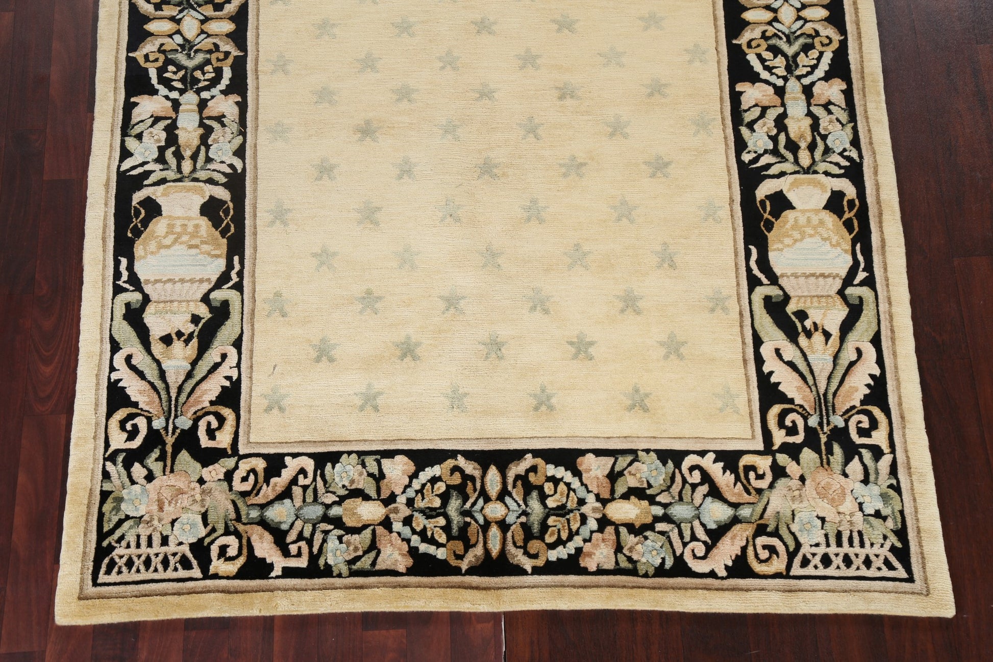 A Beautiful Genuine India Nepalese rug is Hand Knotted by skillful weavers in India with 100% Wool Material. This rug is in New, First Quality condition. dimensions are 8' 8'' X 5' 8'' in foot and 264 X 173 in centimeter. the primary color is Beige & Ivories.
