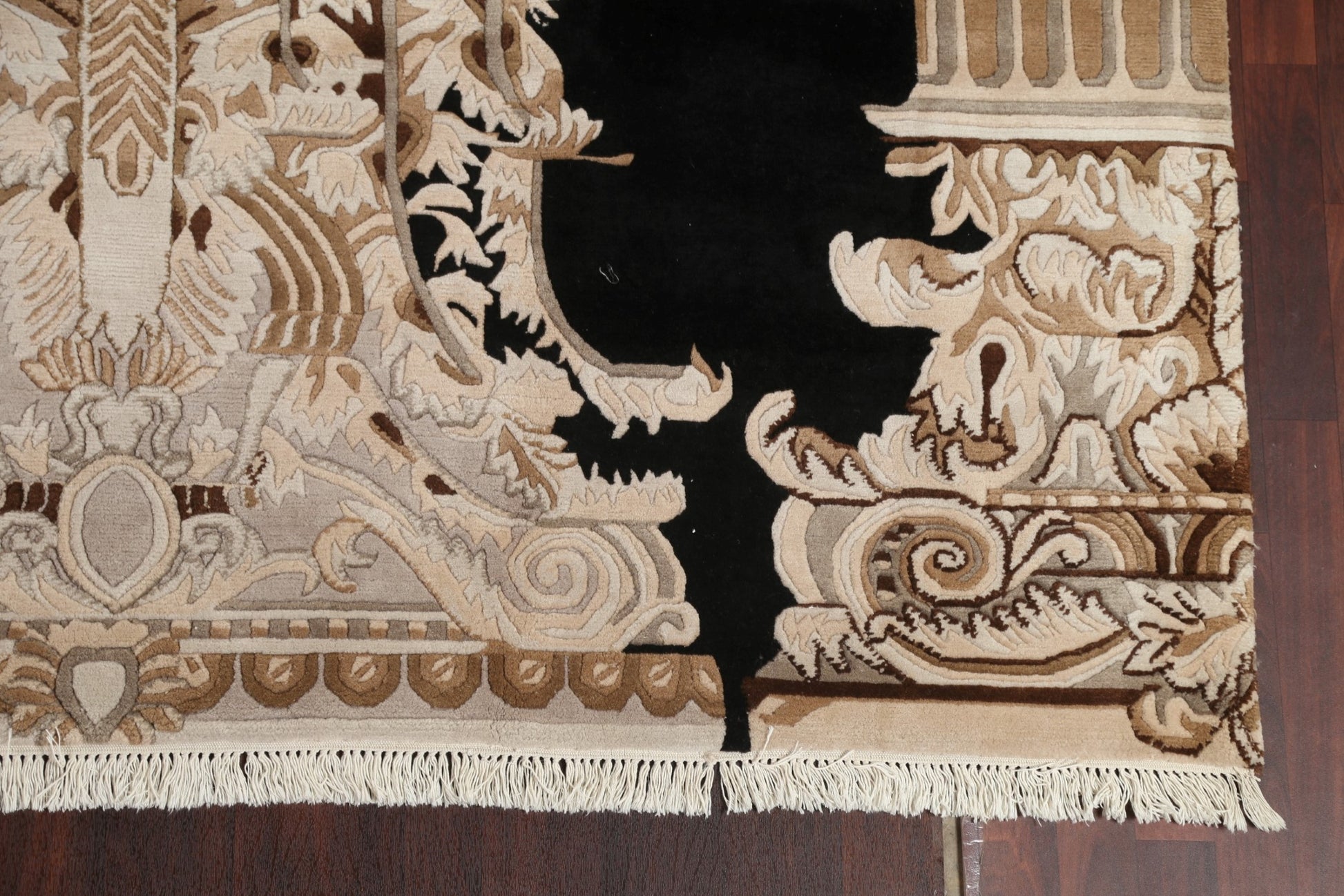 A Beautiful Genuine India Nepalese rug is Hand Knotted by skillful weavers in India with 100% Wool Material. This rug is in New, First Quality condition. dimensions are 10' 9'' X 8' 0'' in foot and 328 X 244 in centimeter. the primary color is Black.