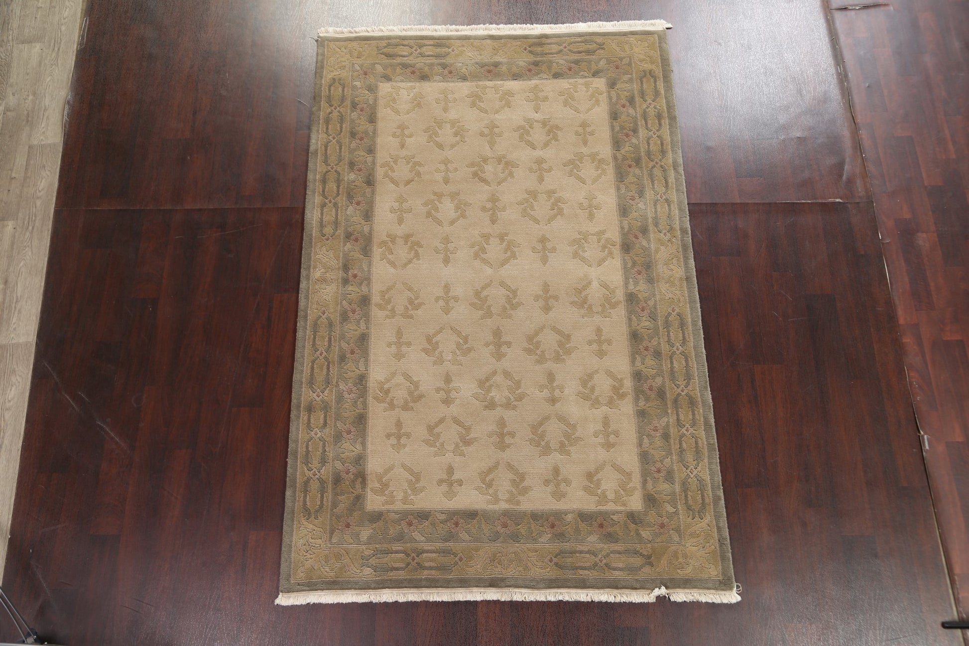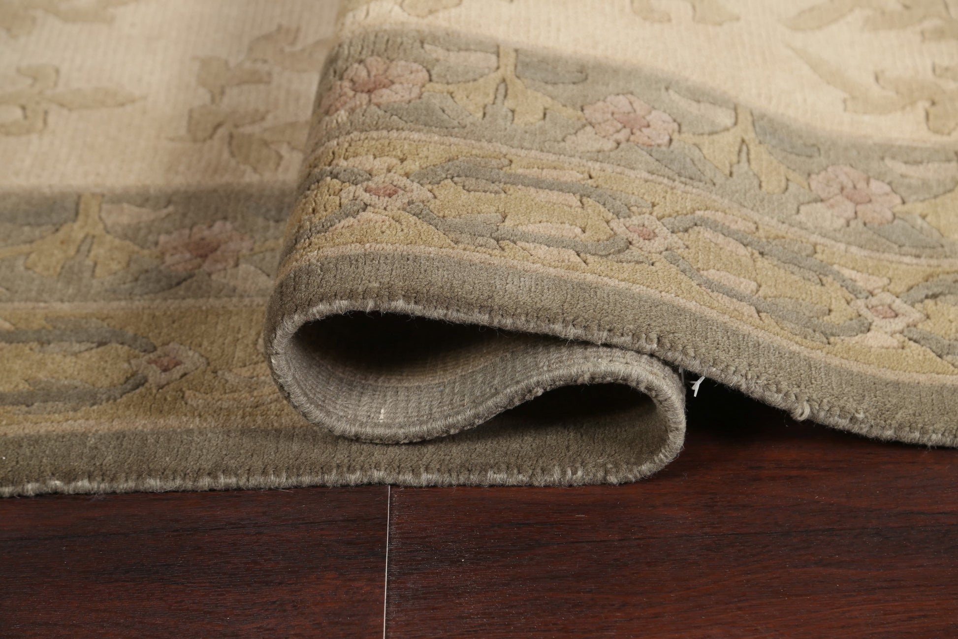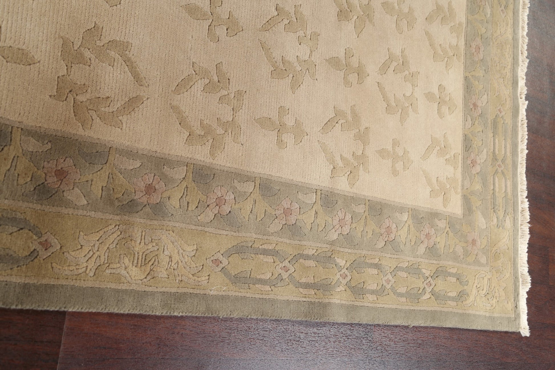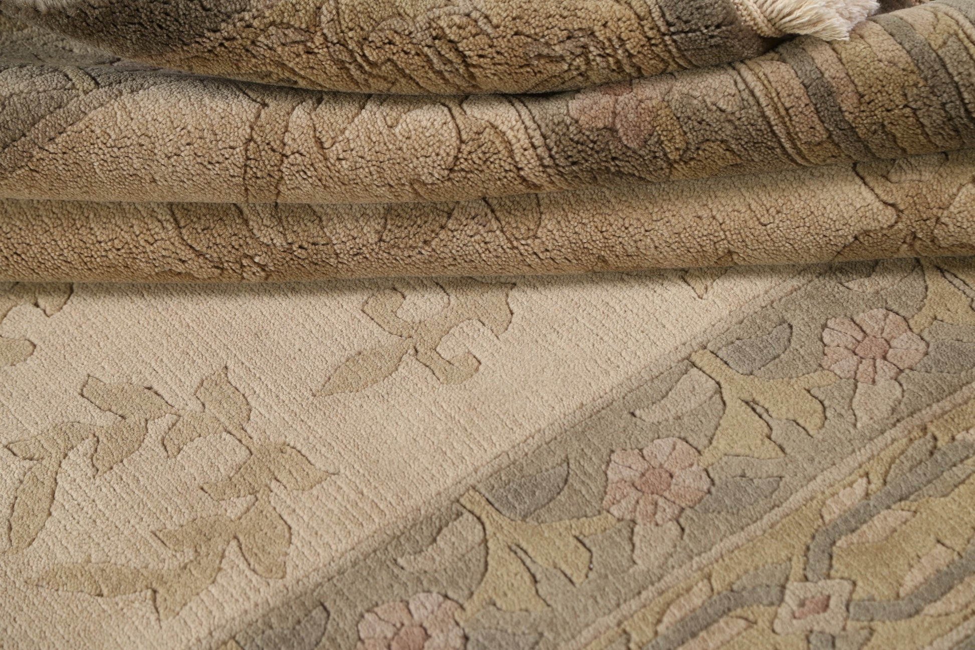 A Beautiful Genuine India Nepalese rug is Hand Knotted by skillful weavers in India with 100% Wool Material. This rug is in New, First Quality condition. dimensions are 8' 8'' X 5' 7'' in foot and 264 X 170 in centimeter. the primary color is Beige & Ivories.